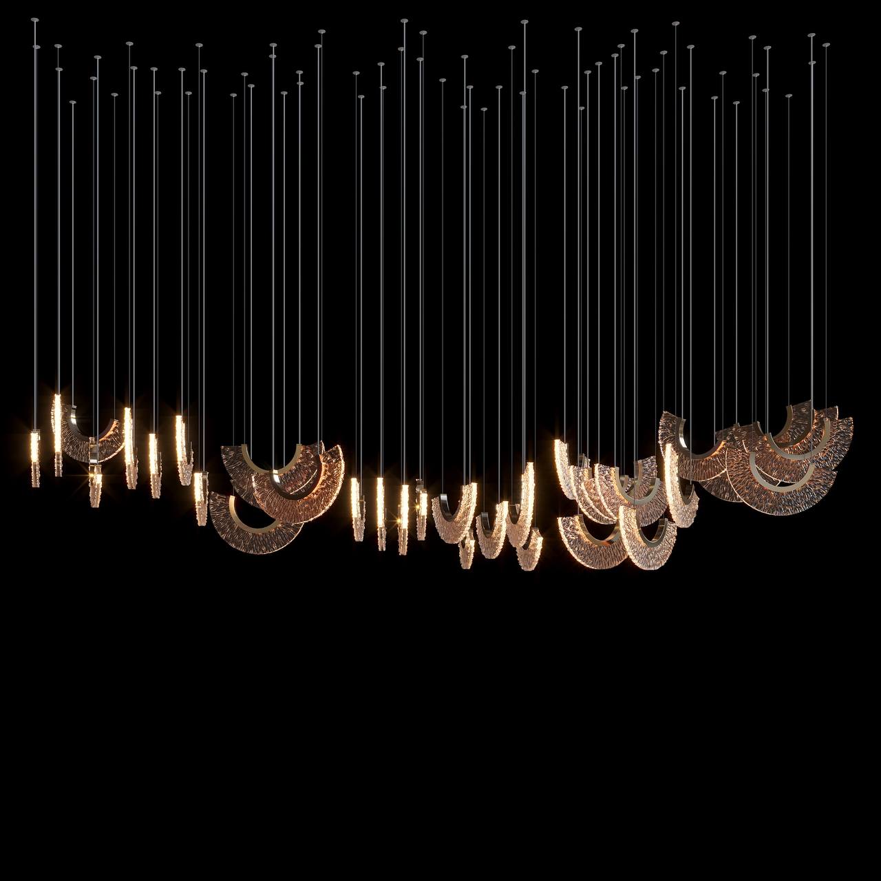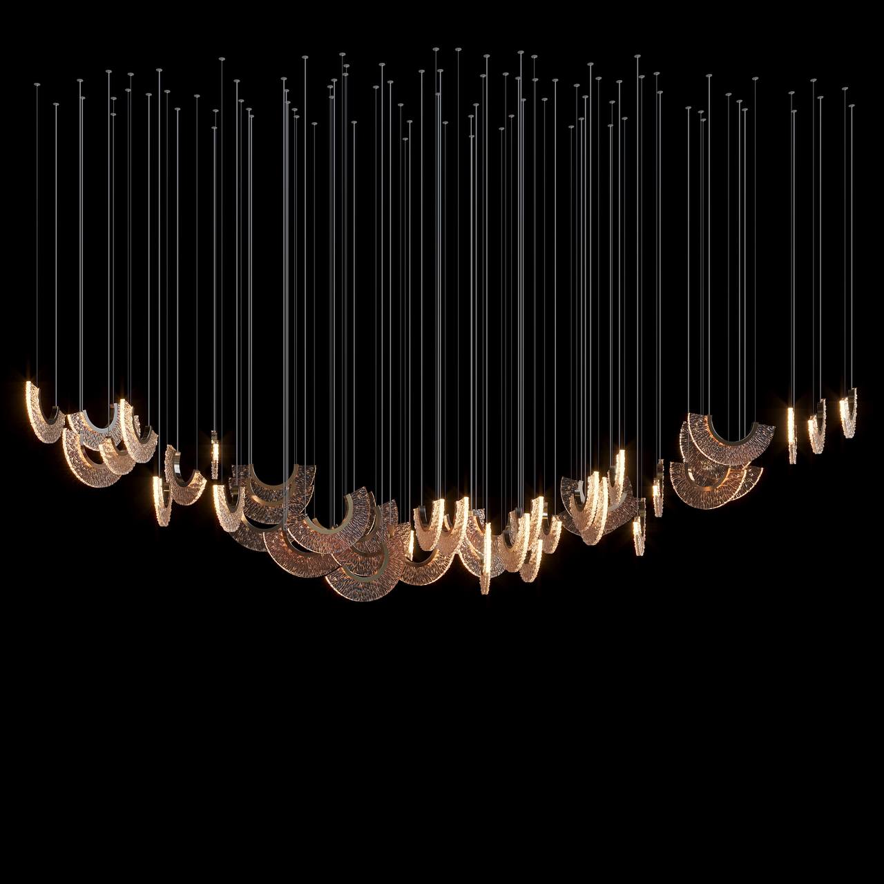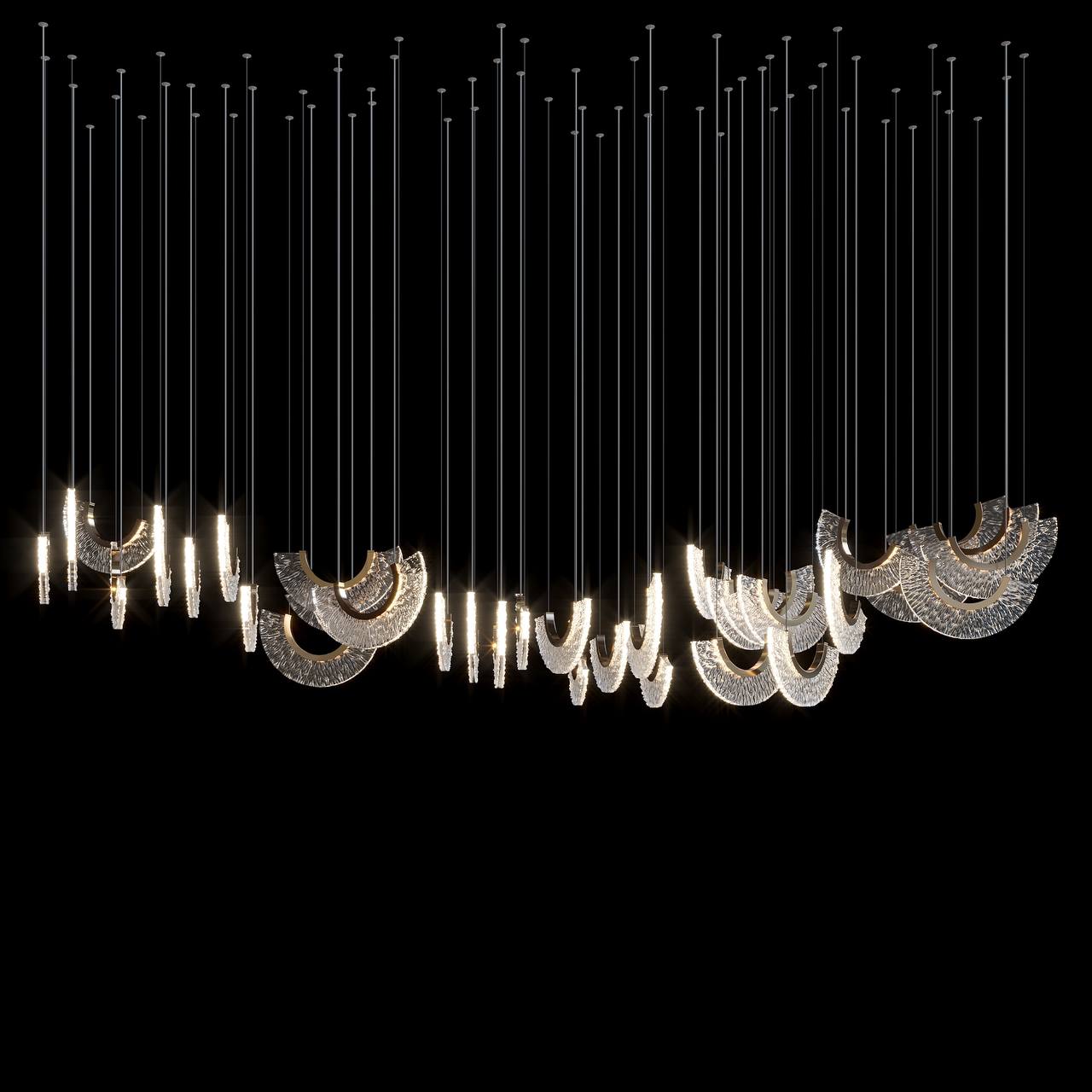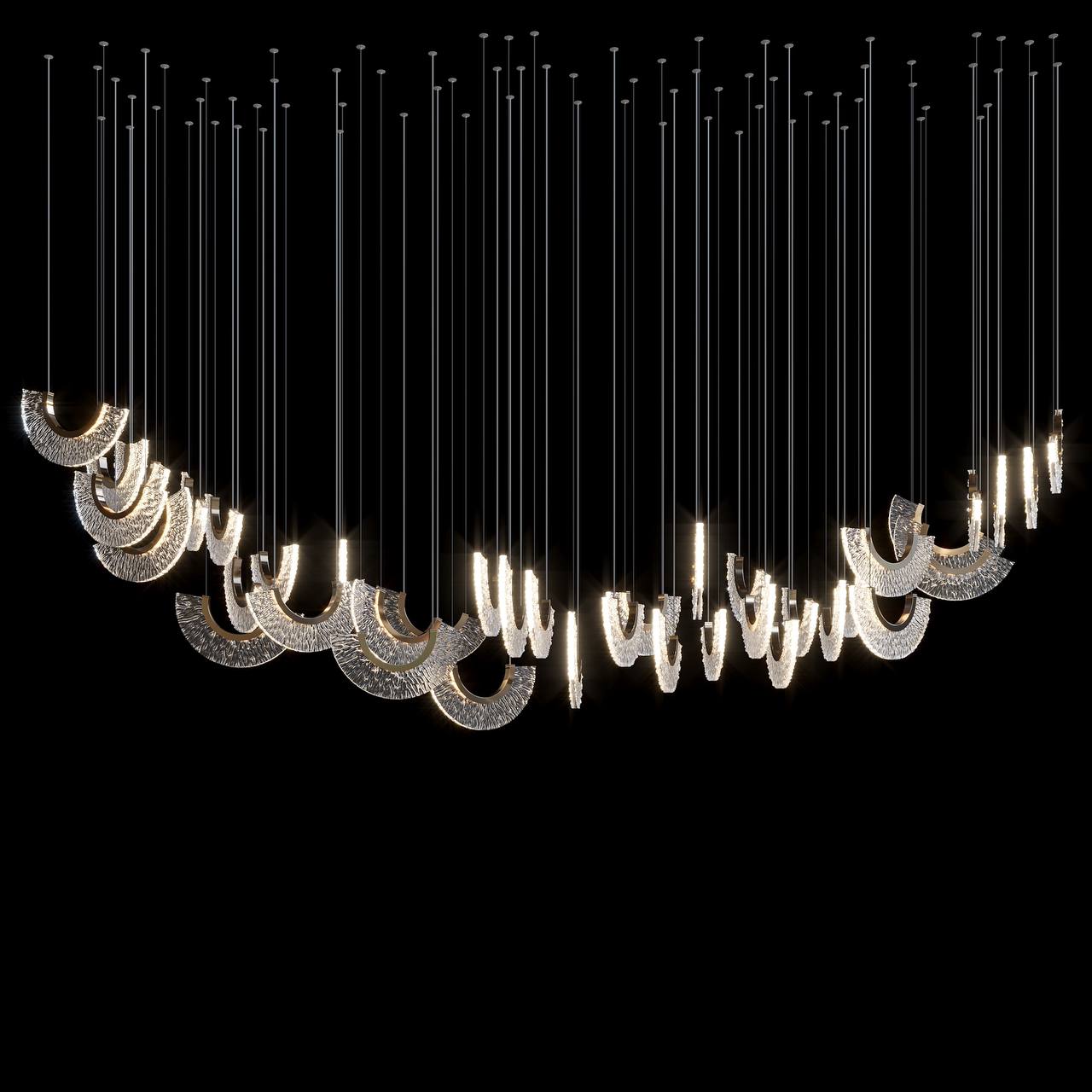 The LC0458 lighting composition by Vargov®Design perfectly balances contemporary design and refined glass textures. Its elements, shaped like semi-circles made from textured glass, create a unique interplay of light and shadow.