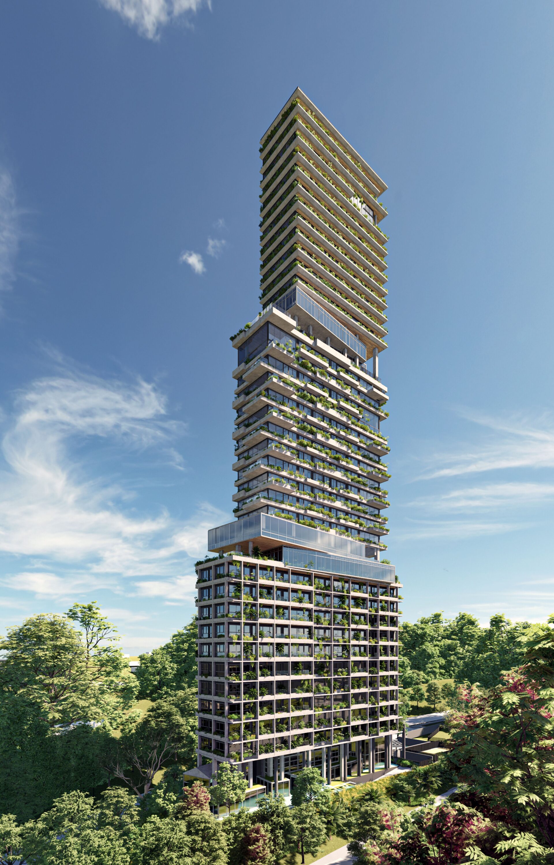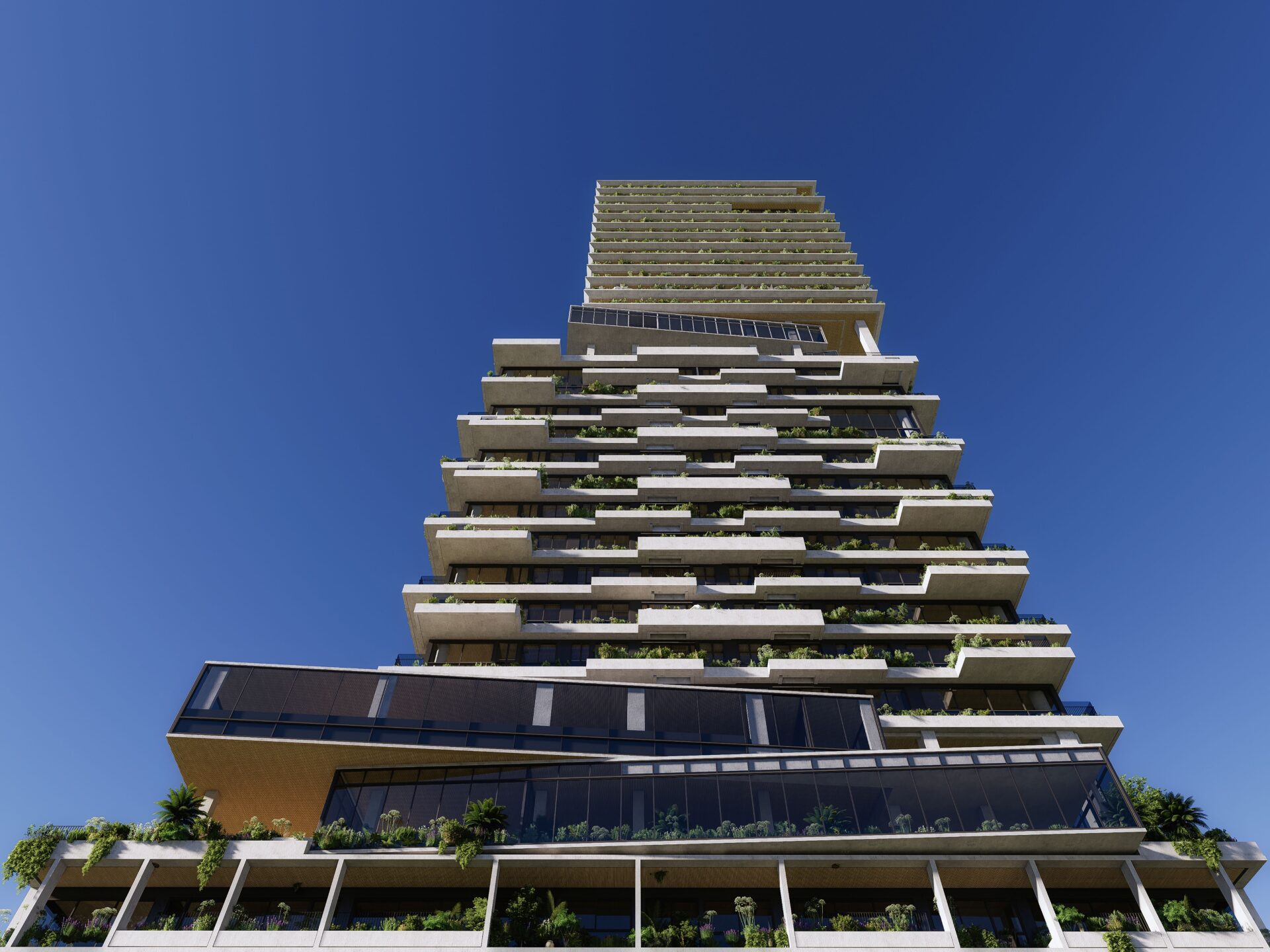 The first block, close to the ground, follows a systematic orthogonal grid, referencing the beginning of life, when the need to follow social rules and coexistence arises while identity is still developing. Extending to the 14th floor, it houses studio units, ideal for those beginning their journey of inhabiting and building belonging. The second block brings the creative chaos of transformations: duplex typologies with four suites and two or three-bedroom apartments occupy staggered slabs, with unpredictable forms materializing the complexity and intensity of adult life. Alternating planters on the facades create a near-random composition, intertwining architecture and vegetation in a way that provokes a more sensitive reading of the unpredictability of human relationships. This volume extends from the 15th to the 26th floor.