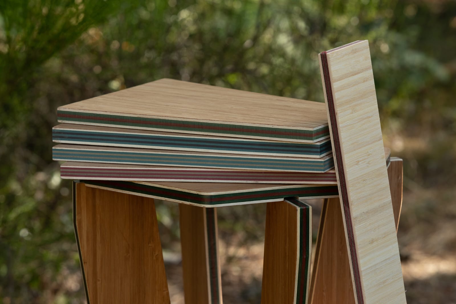 Papembood® (Paper+bamboo wood) is an ecological and sustainable multilayer panel: it derives from the overlapping of colored recycled cardboard (the heart) and sliced bamboo wood (the skin).