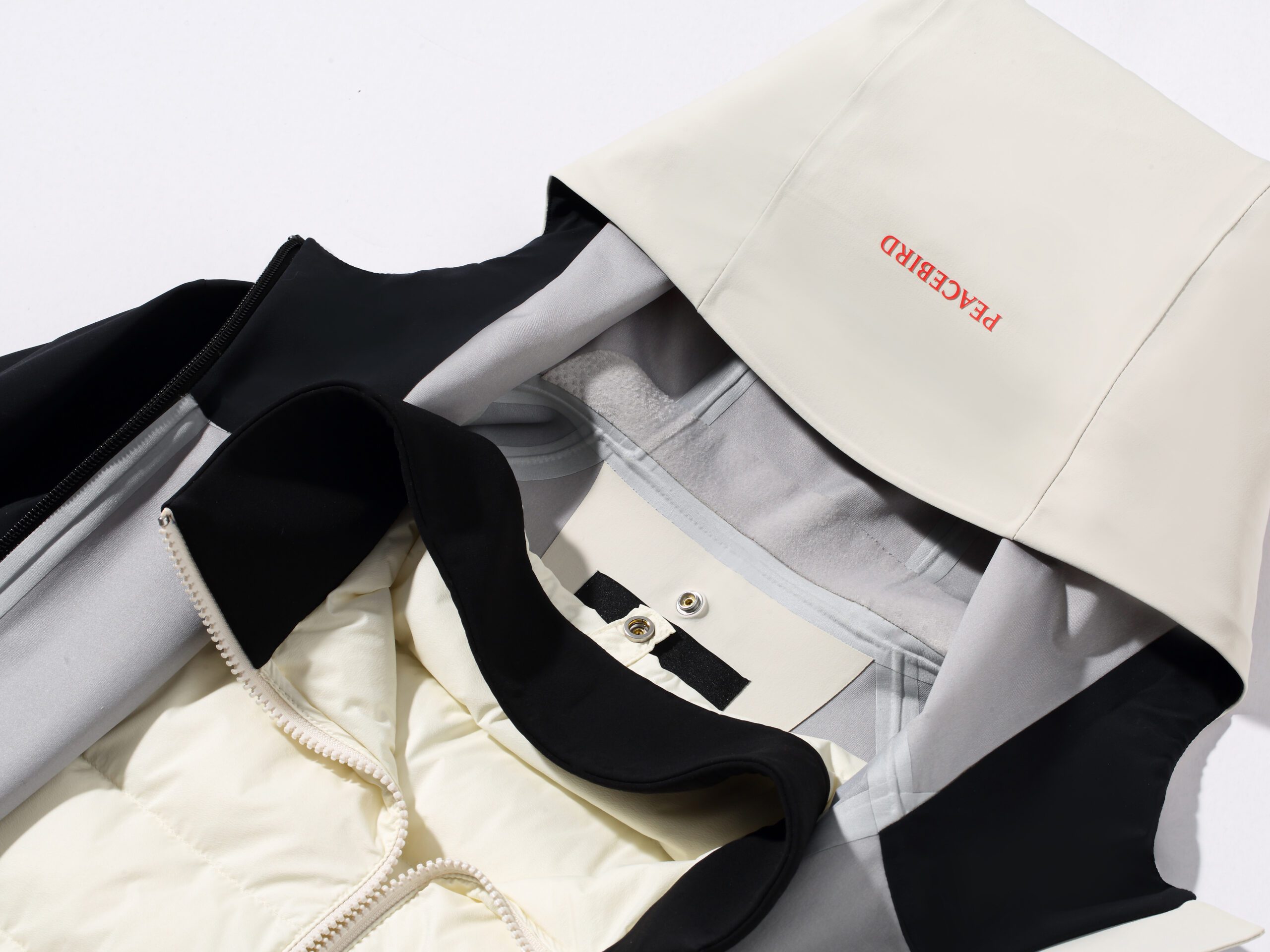 In terms of material selection, the outer shell made of Dermizax composite fabric (a fabric with a high-tech non-porous membrane) is soft, elastic, and uneasy to deform, while also boasting excellent waterproofness and breathability (waterproof rating of 20000mm/H2O and breathability rating of 10000G/M2/24hrs), whereby users can keep dry even in intensive sports, with no condensation inside the product. Meanwhile, the fabric is resistant to wear, snagging and pilling, which effectively extends the service life of the down jacket. The inner lining mainly utilizes lightweight wear-resistant nylon 66; the sides and sleeves made of soft, breathable, quick-drying LITHERMO enhance the comfort for the body parts usually involved in movements, so as to offer wearers a mentally relaxed experience, significantly improving the product’s emotional value.