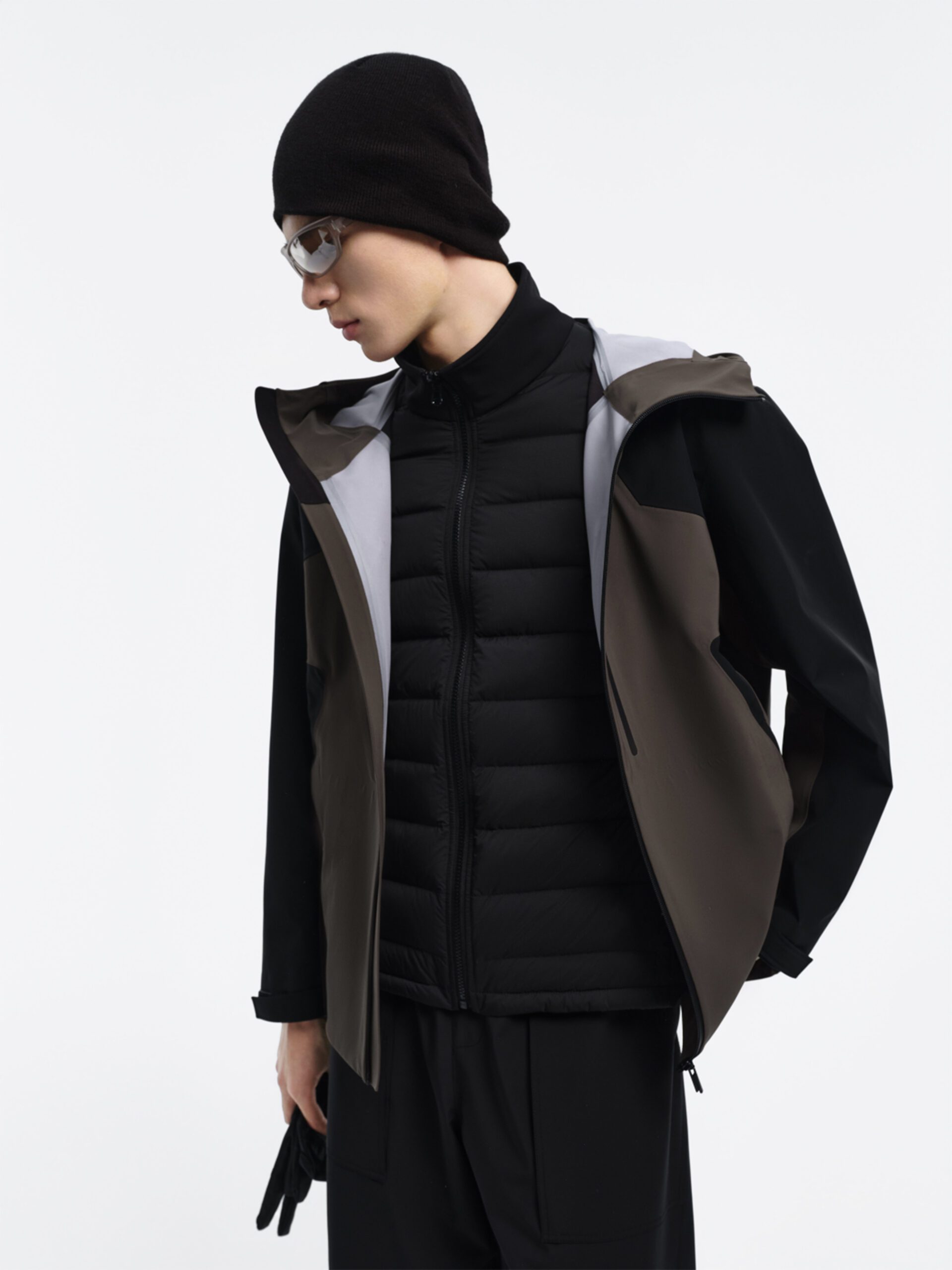 Its segmentation takes into account users’ dynamic movements, which, coupled with the color blocking design, highlights simple yet powerful lines and ACW’s signature style, aligning well with the product’s positioning as a down jacket for urban travel and moderate outdoor activities. Designed based on the research on the body shapes of millions of Asian people, the ergonomic down jacket can perfectly fit the human body’s curves, striking a balance between stylish design and wearing comfort. The brim/lower hem, pockets, and sleeve tabs adopt the hot welding process, with inner seams sealed by 12mm waterproof adhesive tapes, while waterproof frosted rubber strips are used to cover the zippers for the top fly and pockets; the 4D hood system supports multi-directional adjustment, allowing users to conveniently change the tightness. These features enable the down jacket to effortlessly cope with wind and rain, suitable for diverse scenarios including urban travel and outdoor activities.