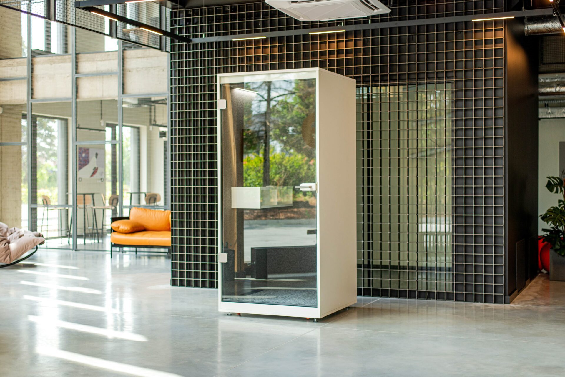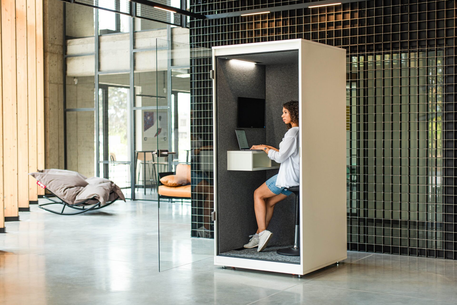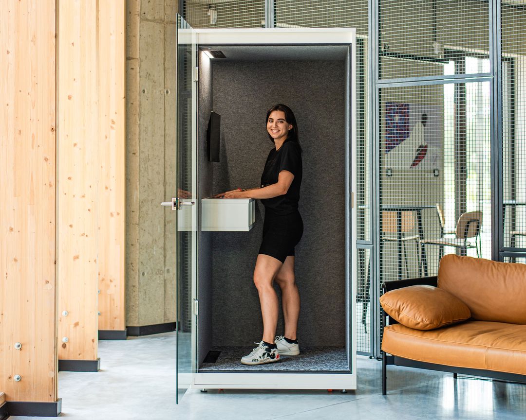 To solve privacy and noise issues in offices we developed our soundproof phone booth Poddie Phone. Poddie Phone is a 1m2 private office in which you can take phone calls, do video conferences or focus on important work - without being distracted.