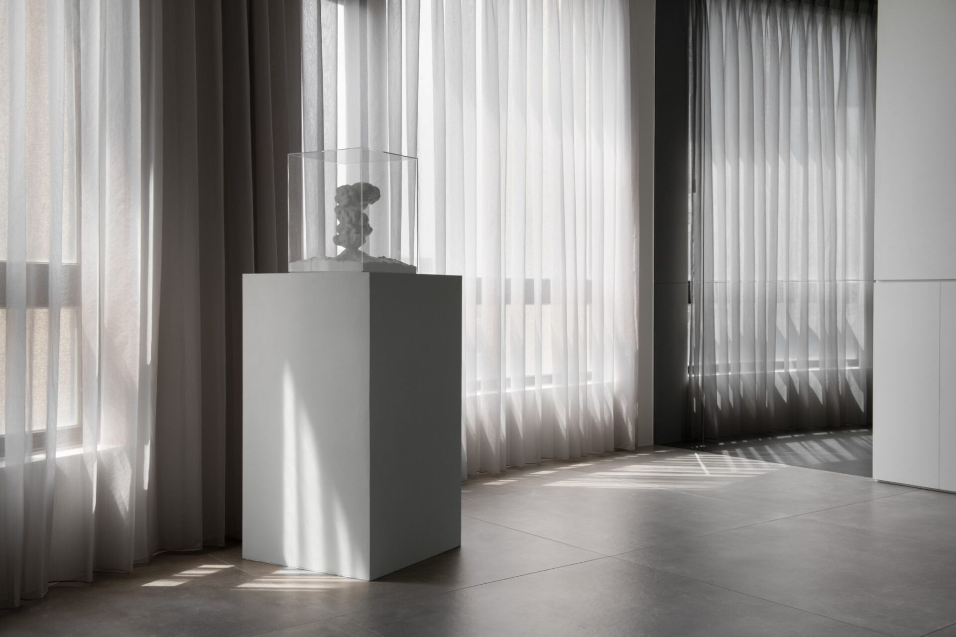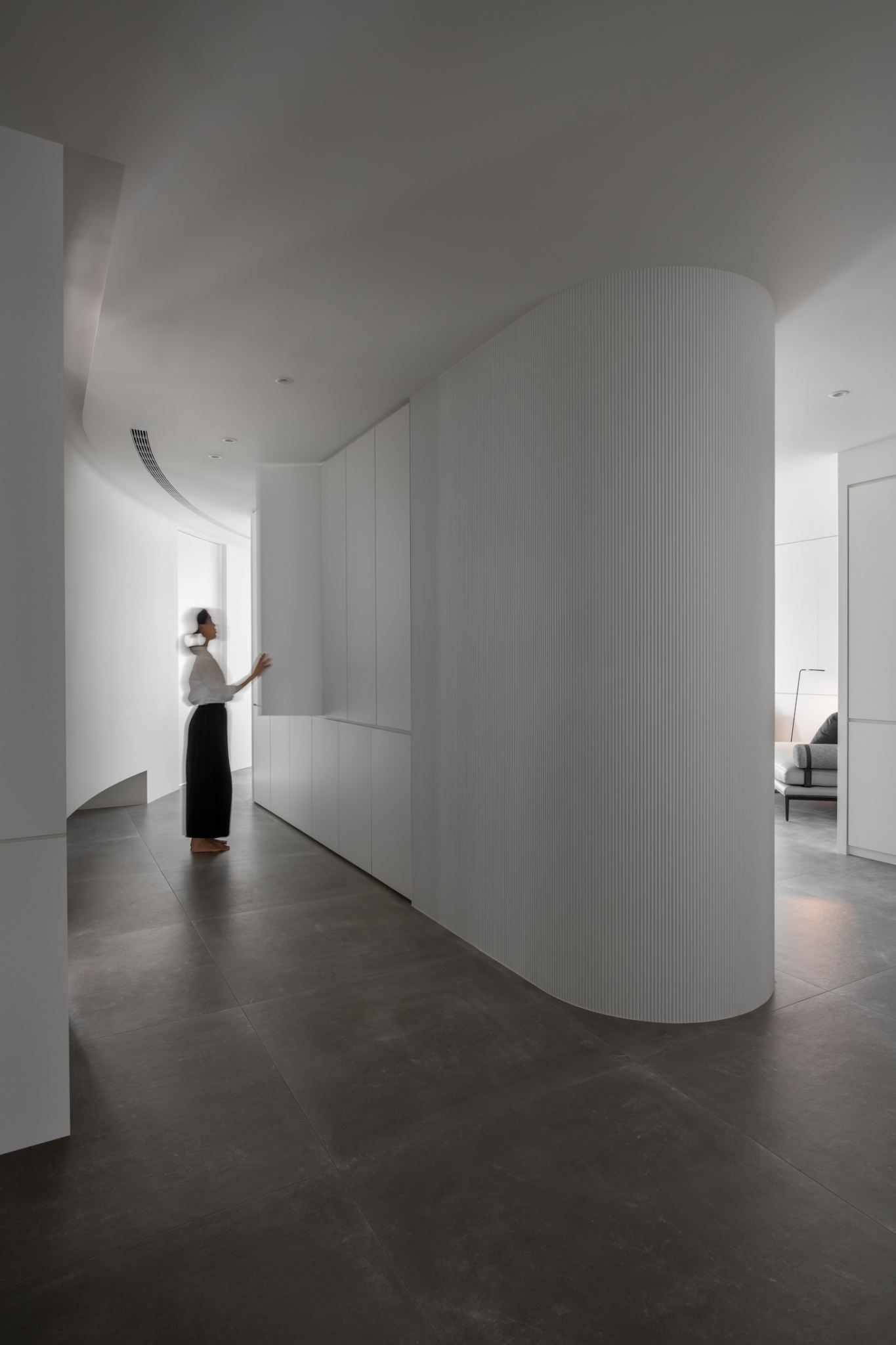 The design blends the client's medieval artistic background into an exploration of emptiness. Molding the interior with the mentality of returning to nothingness, texture and position summon out an invisible design. The dominant use of black and white imbues the atmosphere with vast expanses, inviting the client's artistic mind to roam freely within the sculpture-like interior. Natural light and warm-toned lighting further enhance the interplay of light and shadow.