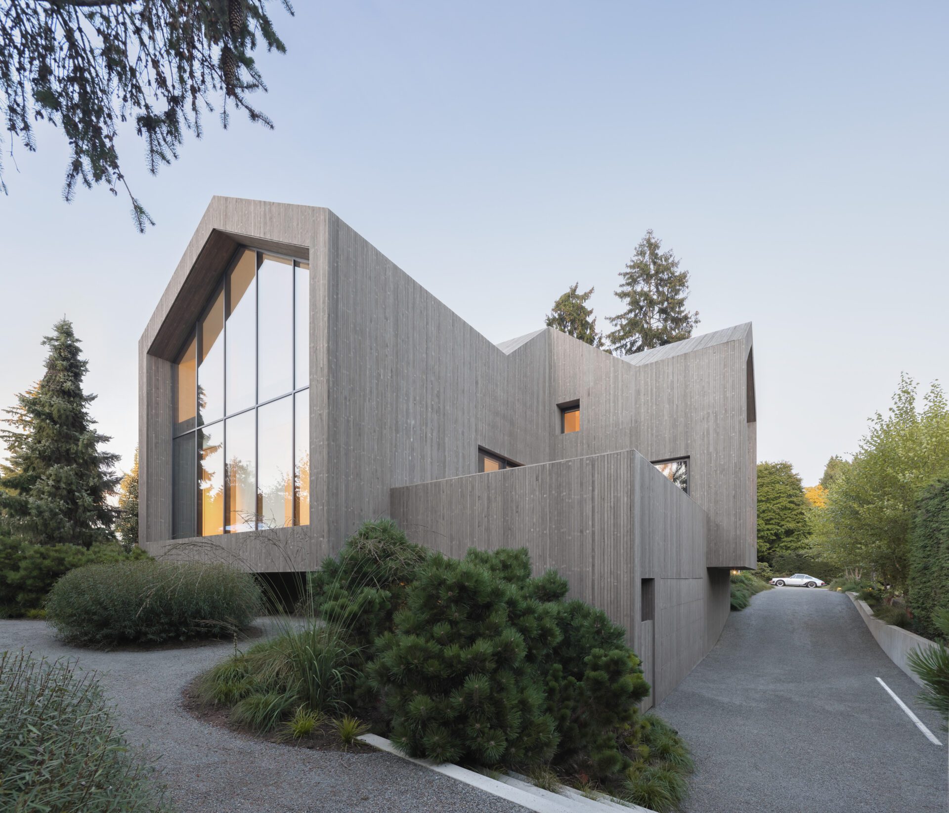These ideas also translated into an effort to clarify the material choices of the house that support a conceptual understanding of the site. The house is located on a floodplain formed by a sediment deposit in the meandering bends of the delta of the Fraser River- the longest un-dammed river in North America. This land is vulnerable to periodic flooding, particularly during period when heavy rainfall coincides with high tides. Accoya, a naturally treated pine wood, developed in the Netherlands for use in ground-water contact situations (like the lining of canal walls) is used throughout the project. While its unique variegated "sticker" marks, an artifact of industrial processing, they also serve as a visual reminder of the wood’s acetylation process which makes it durable, stable and long lasting in water logged conditions. The wood has been left to naturally weather to soft grey tones that are reminiscent of the retained hemlock trees on the site. The lowest level of the house is constructed to endure these events. Finishes such as drywall and batt insulation are omitted to prevent water damage, and mechanical equipment is housed in a waterproof bunker.