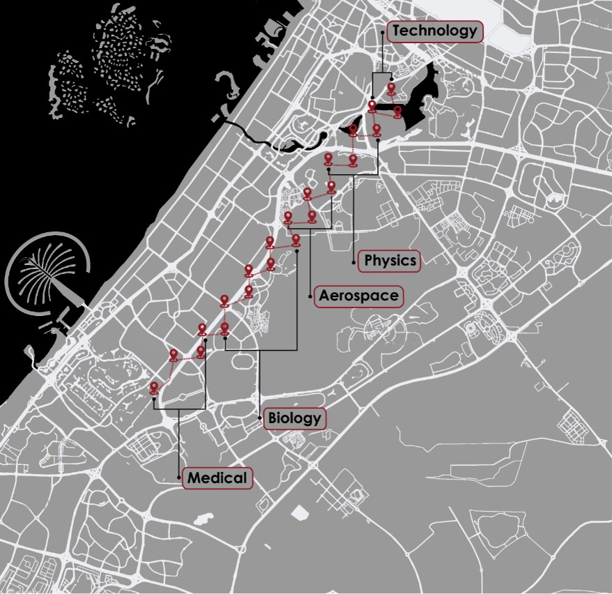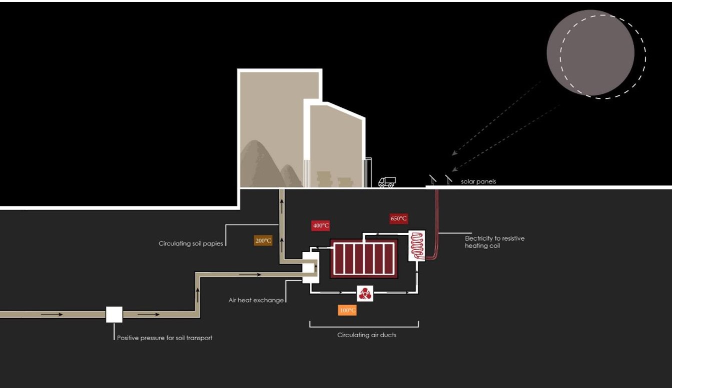 In a sustainable approach, installing sand batteries in the tower's facilities is considered, which can store energy for several months and be used even in other regional buildings. More than one skyscraper is needed to control sandstorms. So, we have predicted the presence of 25 towers on our site, which will overlap and improve the function of each other. Our ultimate goal is to create a multi-functional area centered on scientific research, and each tower will be dedicated to a specific position. The zoning will include residential use and research institutes for physics, aerospace, technology, biology, and medicine.