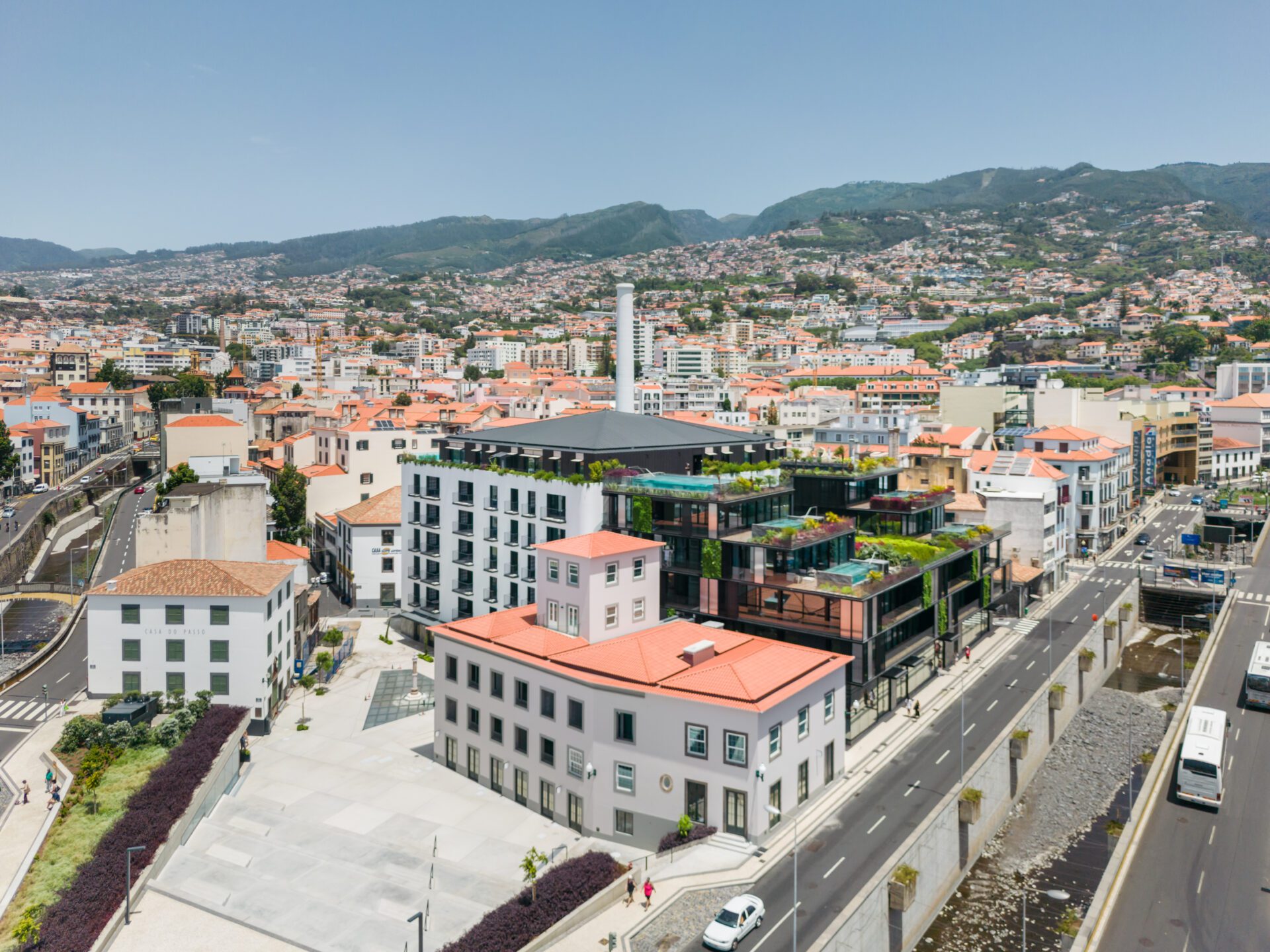 The project preserves the collective memory of the location as its central theme. Located in the heart of the city, near the site where the Pelourinho do Funchal was erected, a landmark of the city center in the early 15th century, and near the emblematic Mercado dos Lavradores, the project seeks to balance and harmonize different architectural styles and dimensions, unifying the ensemble.