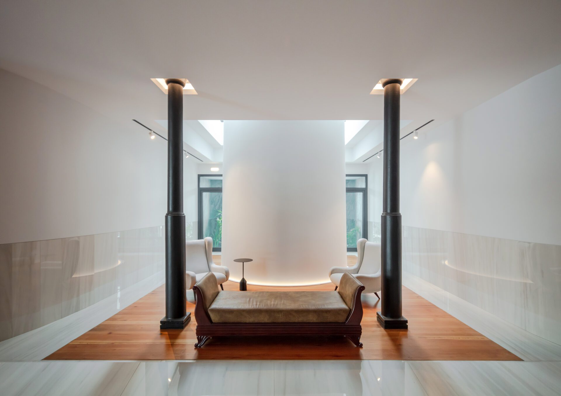 Other volumes, such as Blocks C and D, similarly reconfigured, maintain the industrial language with materials such as concrete, iron, and glass, combined with marble and noble wood. Block A, consists of recovered houses, with a mix of traditional and contemporary elements.