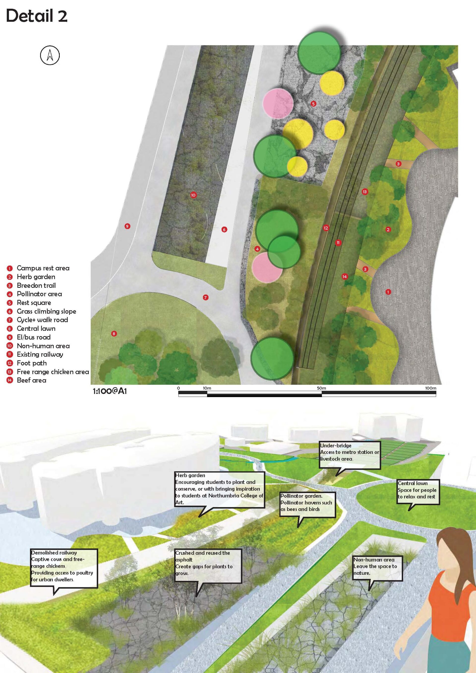 Regarding vegetation planting, we emphasize both usability and pollination propagation. The