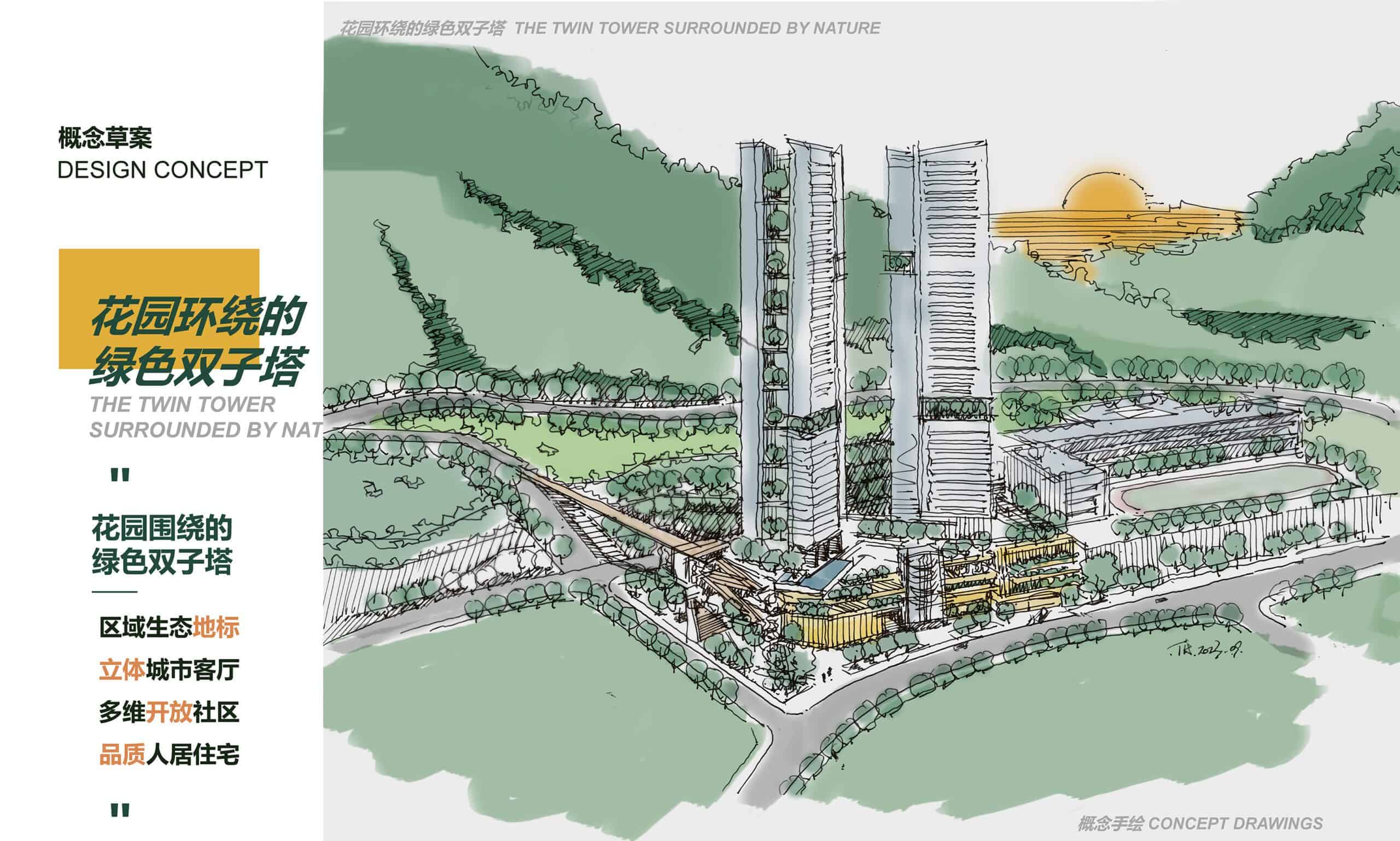 The project aims to trace the natural resources of the Liantang area, introduce a green and healthy lifestyle, and build regional ecological benchmarks and brand benchmarks. Based on the overall ecological pattern of the project, the design concept of "living in vast nature" is proposed. With the overall image of green twin towers, the project forms an ecological landmark in the region, striving to create a three-dimensional forest community that opens an example, connects mountains and seas, and integrates with nature.