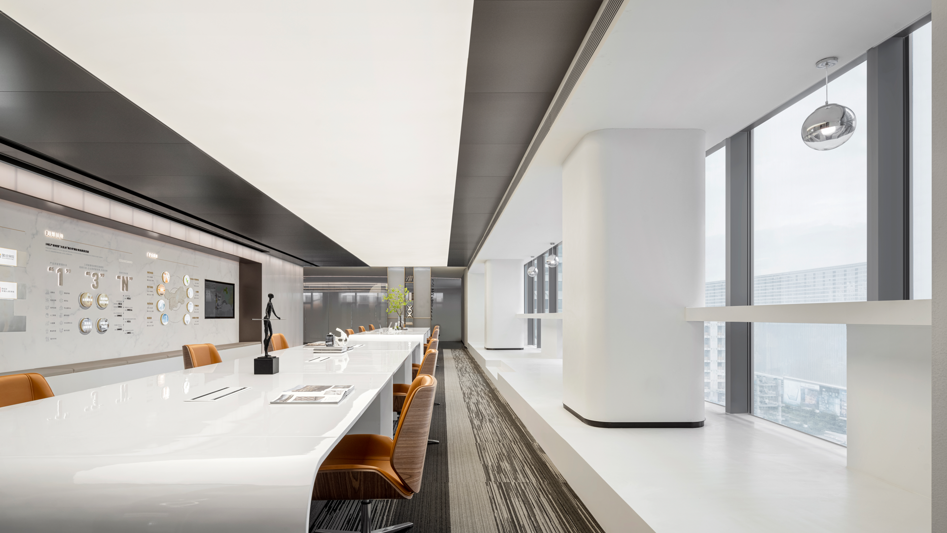 The project is located in the City CBD of Shenzhen, integrating business negotiation, enterprise office, sales exhibition and other functions. The design breaks traditional office boundary and creates a future oriented "aesthetic museum" Office center space.