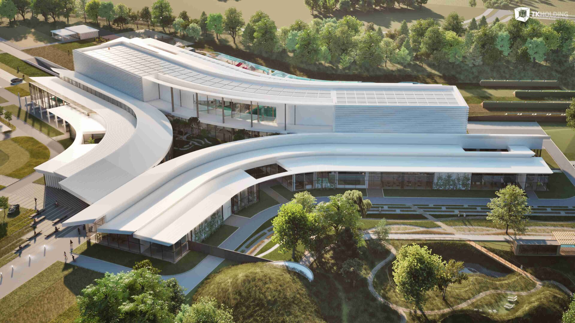 Amidst the gently rolling fields of southeastern Poland - where vineyards trace the horizon in rhythmic rows - Sol@res emerges as a luminous constellation of wellness, learning, and play. More than a building, it is a landscape made architecture: a place where nature is not just seen, but felt; where sunlight is harvested, and where joy flows year-round like warm mineral water through its walls.