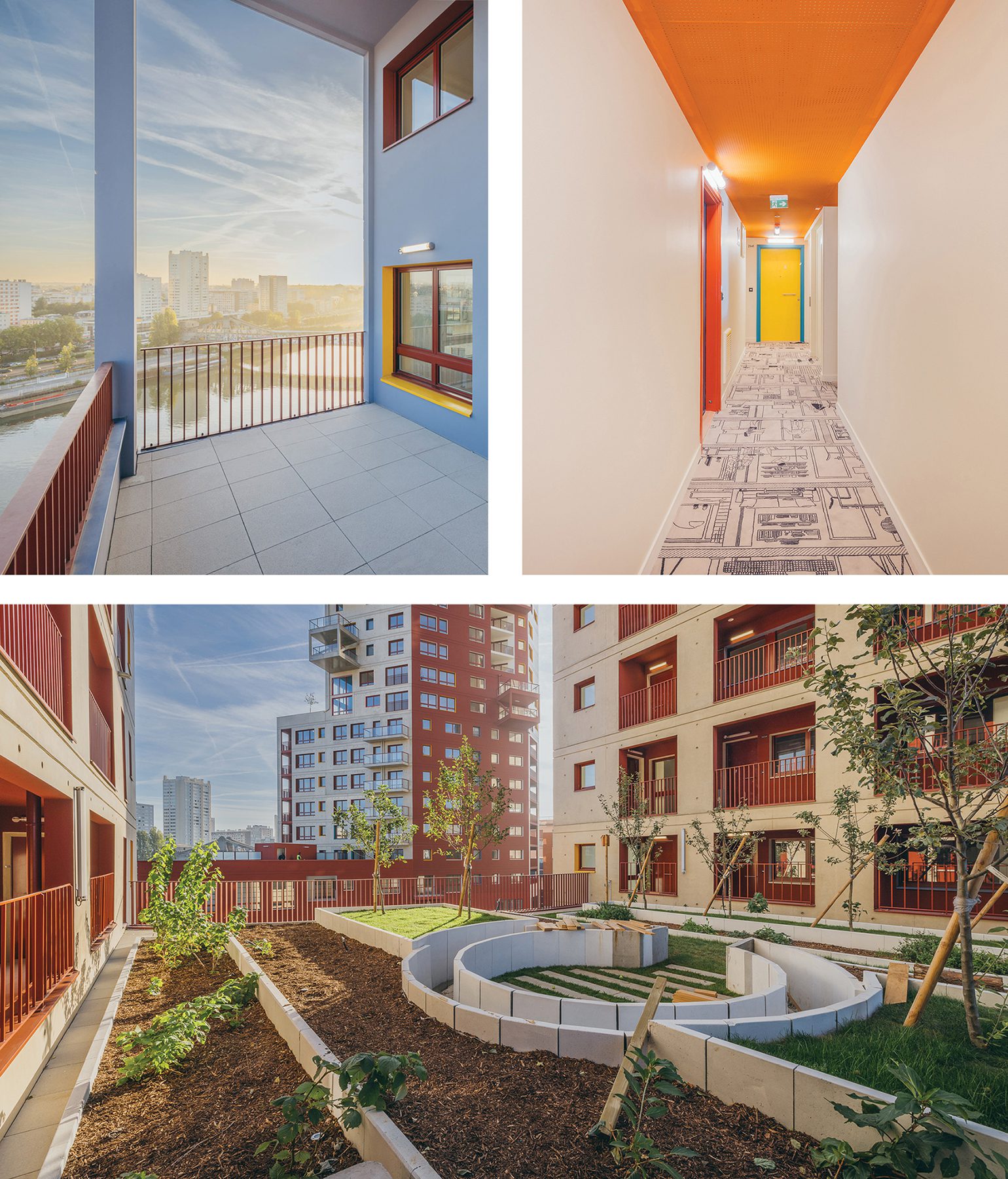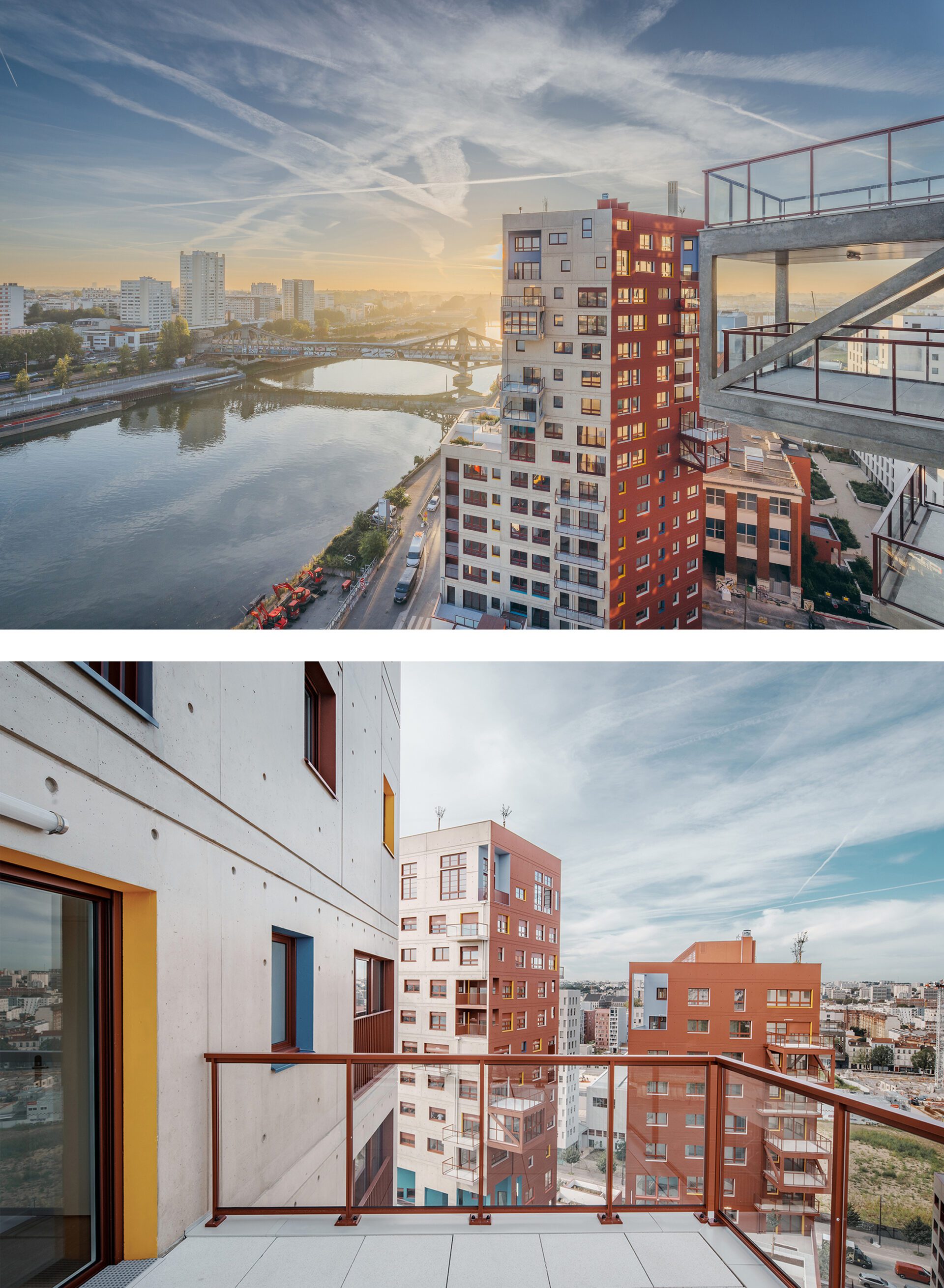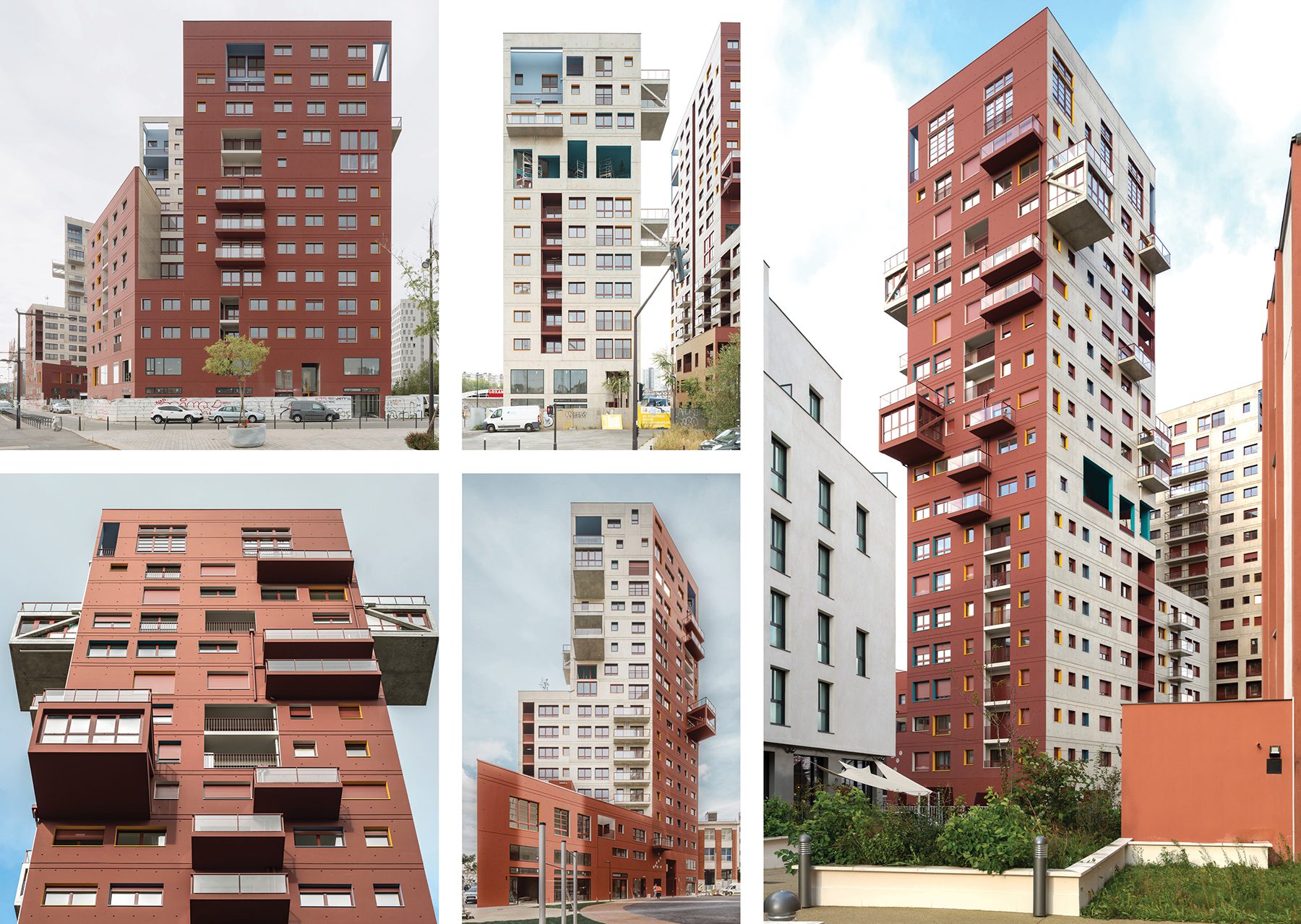 The volumes follow a meticulous design to maximize light, multiply orientations and views and allow for numerous apartment configurations. The division of each volume into three parts, generates three readings of the heights: the Street, the City and the Sky. The facades follow a “narrative” logic, reflecting what it is in the inside and reacting to what it is in their context. The window jambs follow a colour code according to the function inside; the colours of the loggias mark different parts of the Tower; the bare and red-painted concrete take inspiration of its metropolitan surroundings.
