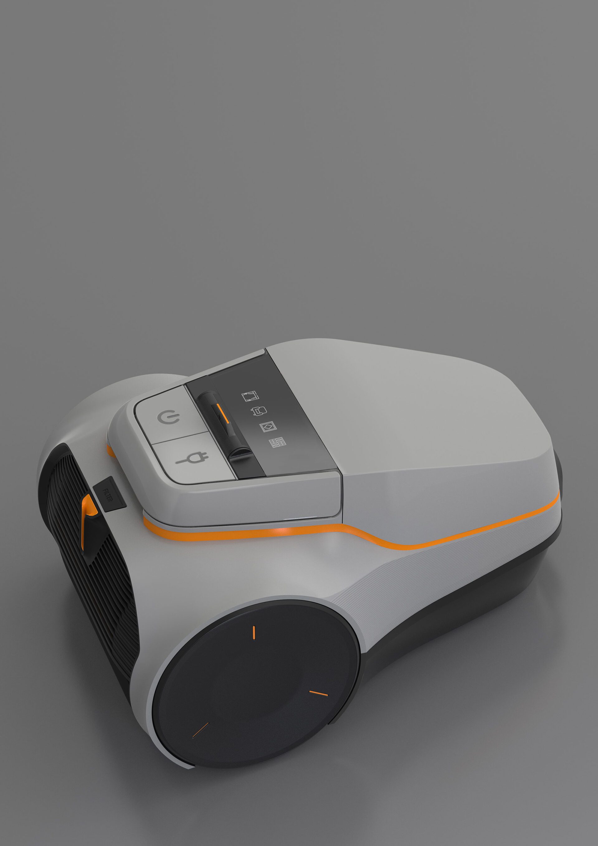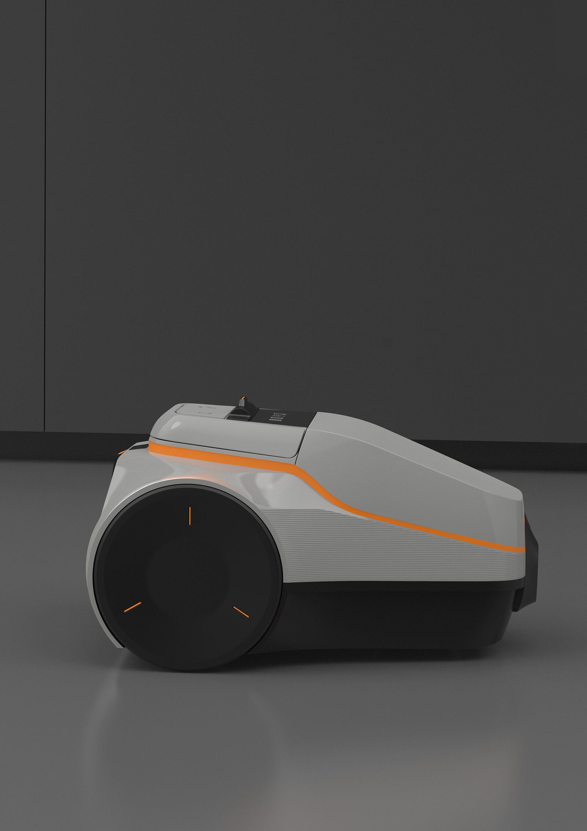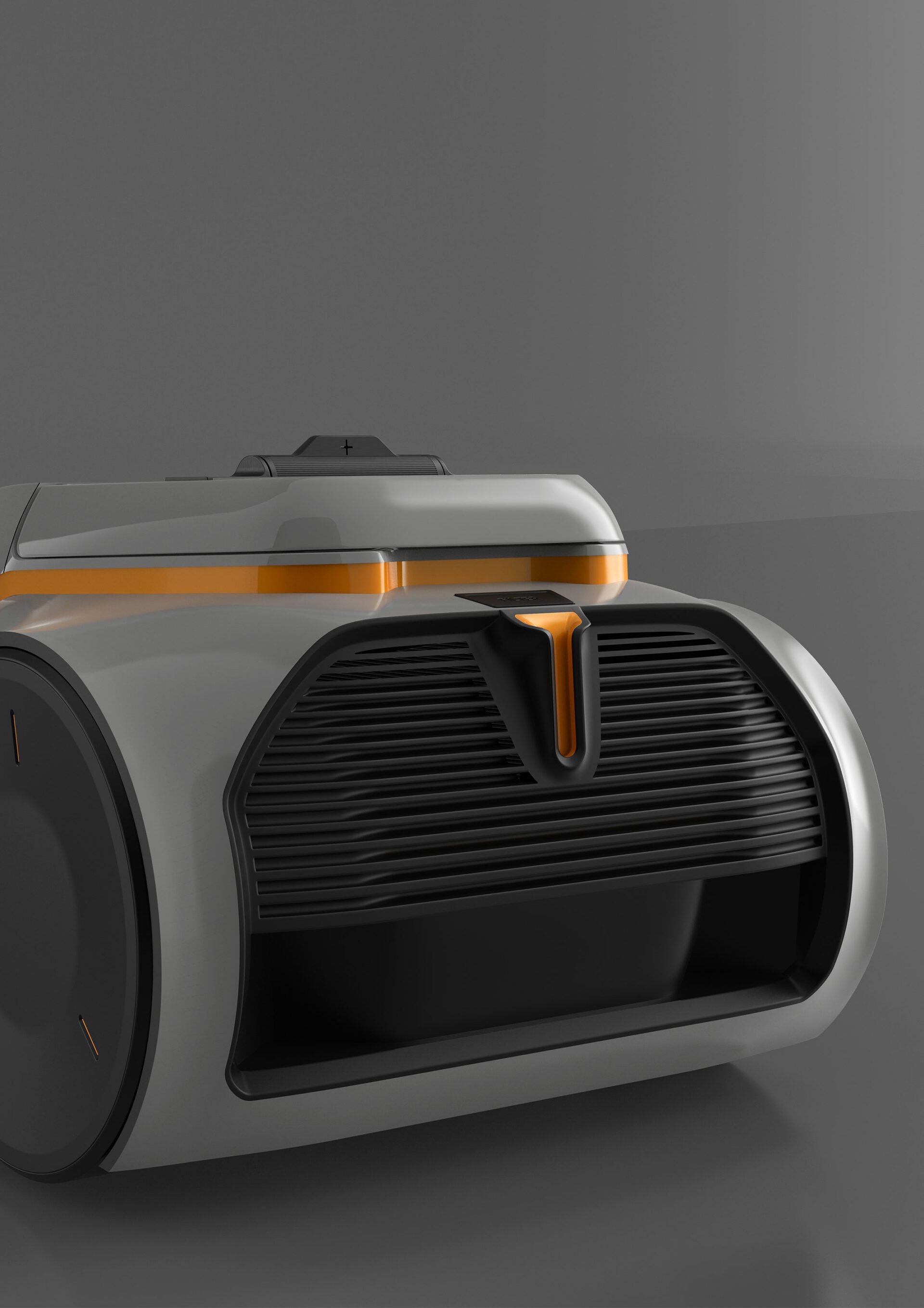 The vacuum cleaner is designed in tune with what users need and experience during different stages of interacting with the product. As a result of its compact design, it makes the vacuum cleaner convenient to use and space-saving. The big wheels with a rubber line around control the movements perfectly. In addition to a good combination with minimalism, body lines follow an aggressive style by sharp and edgy design. Moreover, each line leads the users’ eyes to a specific characteristic of the vacuum cleaner. The line in the middle of the body helps two functional keys to be seen instantly. This easy-to-operate vacuum cleaner features a convenient handle integrated with the entire structure. Thanks to its user-friendly switches, there is no need to bend the body as it’s effortlessly accessible. The suction power control button has created a new user experience through a playful yet mechanical feeling.