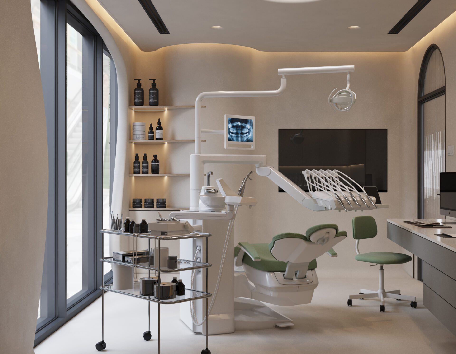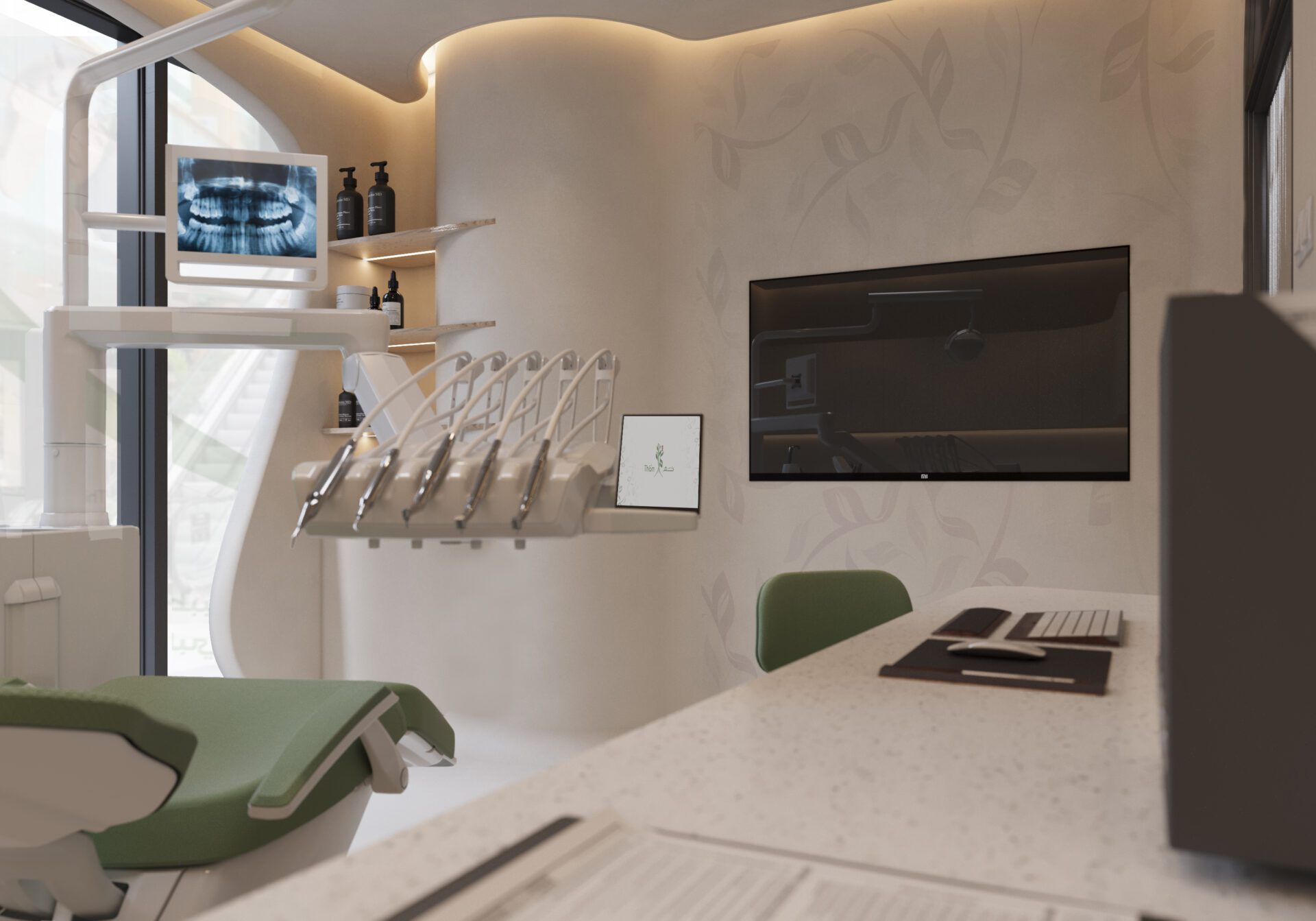 our team is proud to announce our involvement in the design and supervision of a state-of-the-art dental center on Yas Island. The concept embraces a minimalistic aesthetic, enhanced by smooth, curvy edges that add a touch of softness and sophistication to the overall design. Combining clean lines with organic forms, the space promotes a sense of comfort and relaxation while maintaining functional efficiency. Currently under construction, this project is set to redefine dental care environments, offering both patients and staff a modern, welcoming, and elegantly crafted space in one of Abu Dhabi's most prestigious locations.