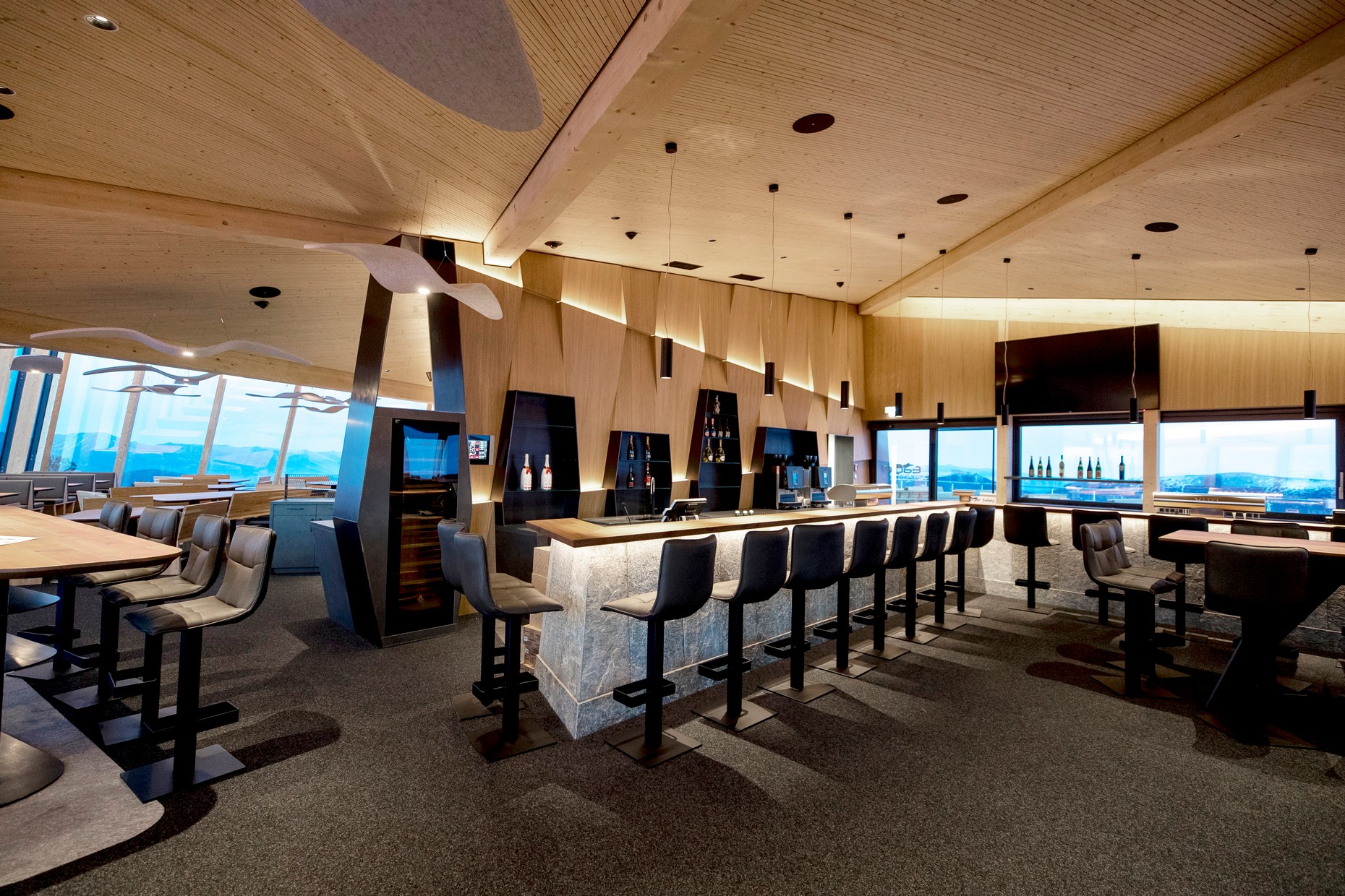 Another highlight of the building is the “Eagle Fly- in” at the lower part of the building, where skiers which do not want to be seated at the restaurant area, can enjoy quick snacks and