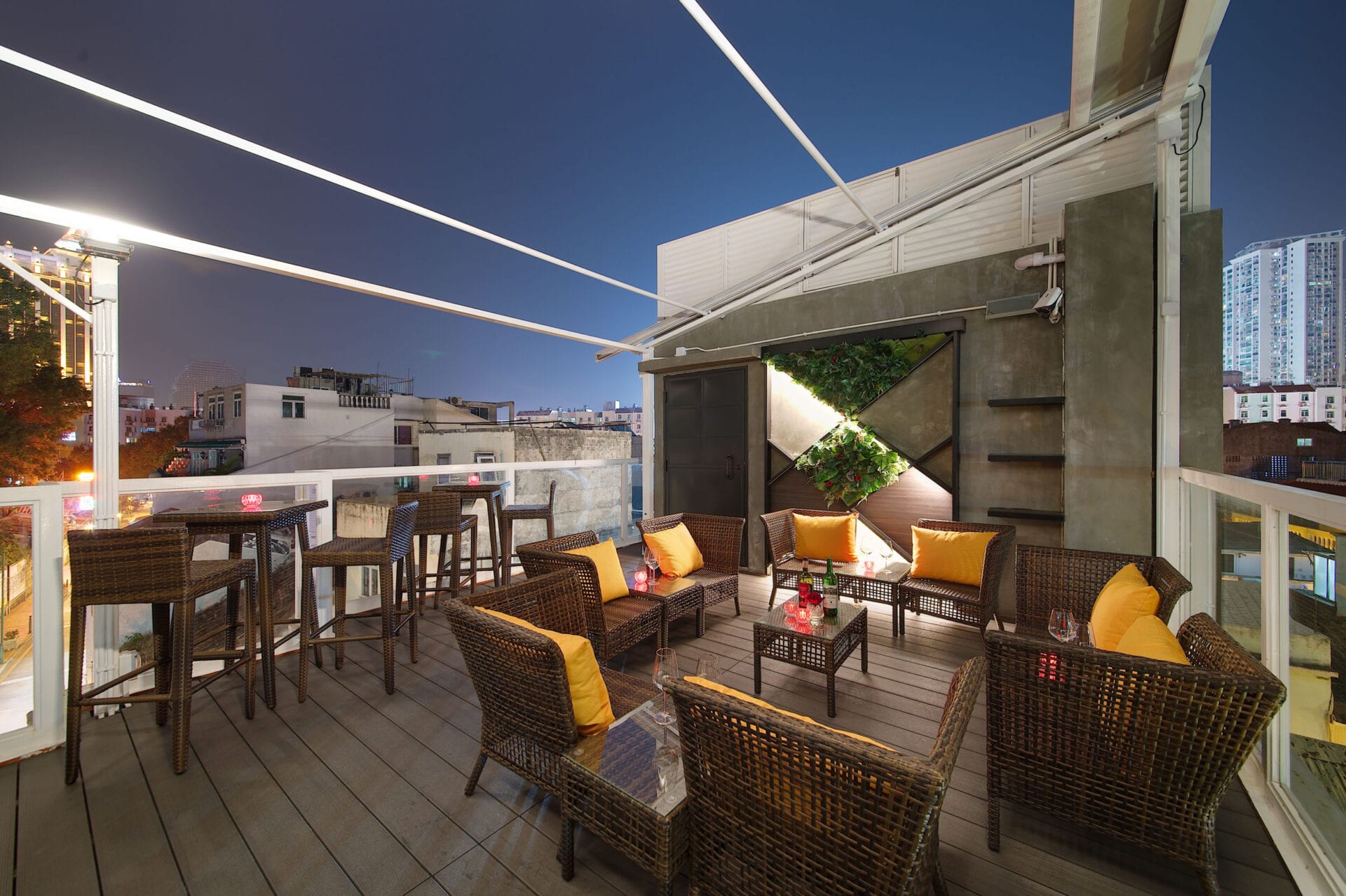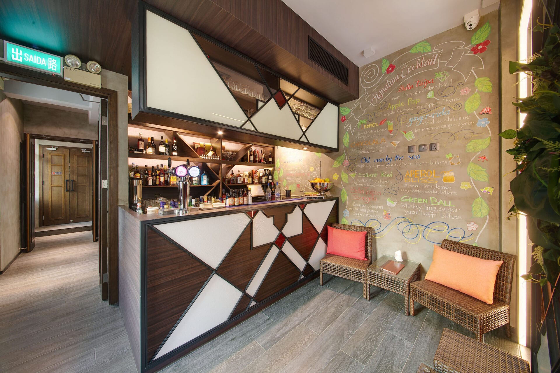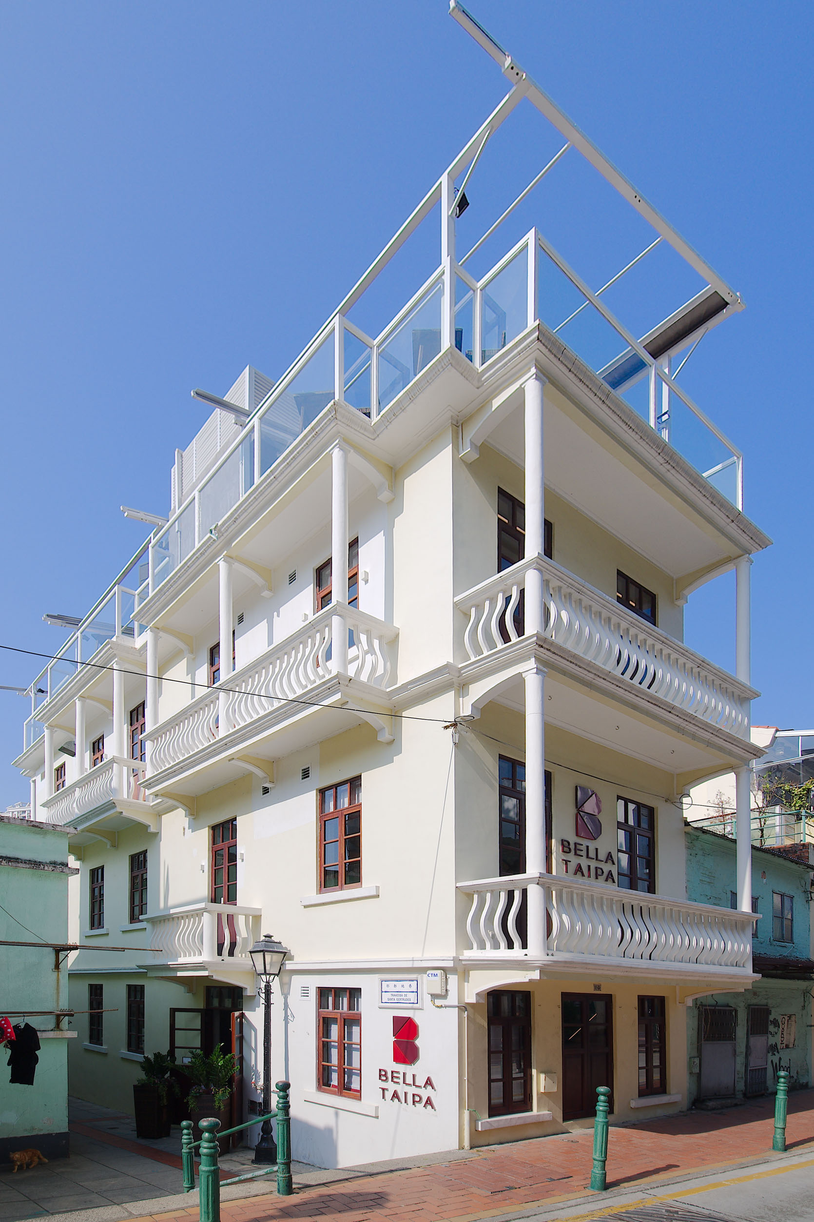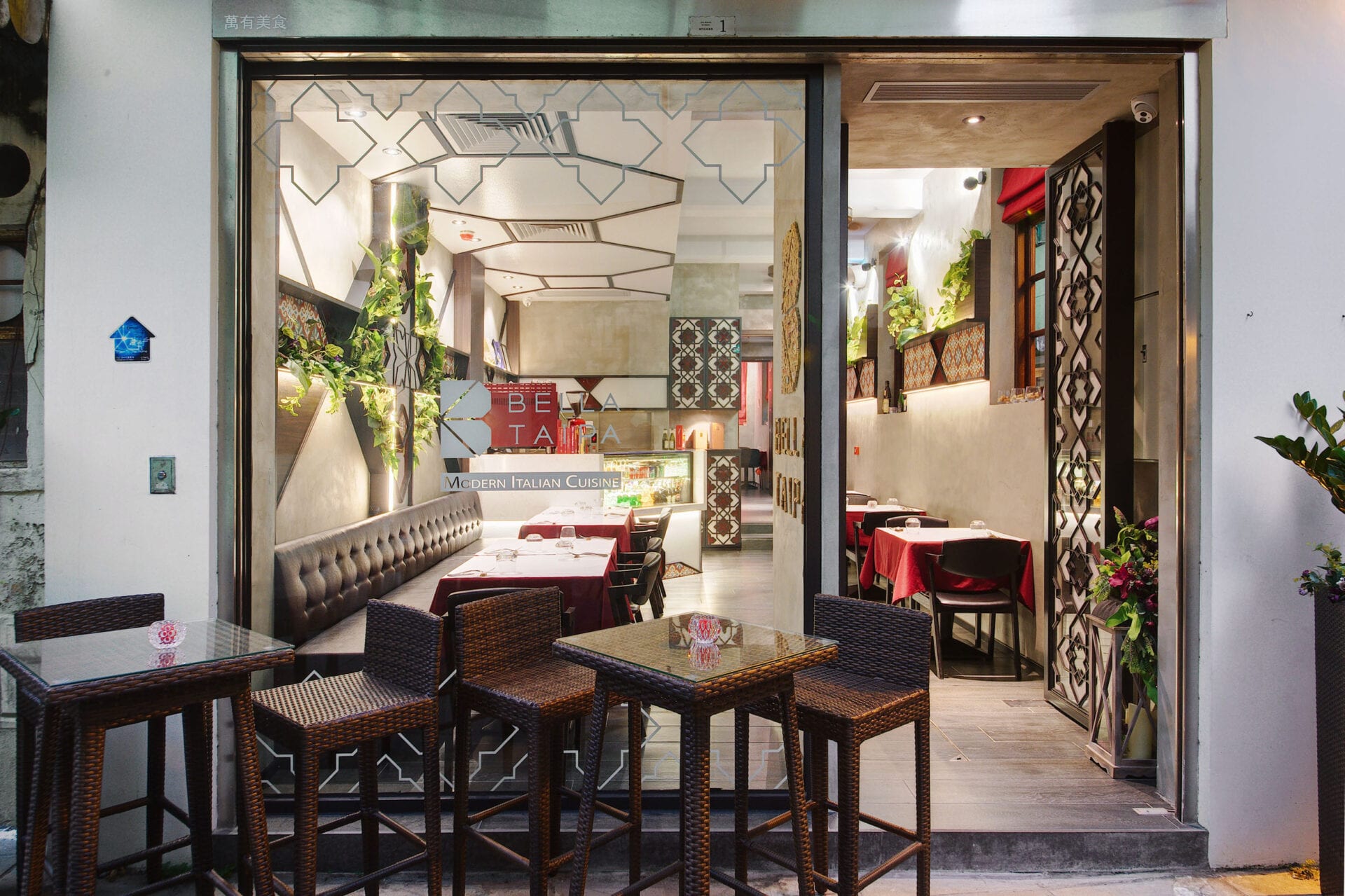 BELLA TAIPA, an Italian restaurant with a notable modernized colonial style in Macao, which was once a Portuguese colony, surely portraits that part of the history in a unique sterling way. The white walls, small wooden windows, white railing, humble balconies and neat facade, all these contribute to the restaurant’s fancy appearance just as a compact and elegant white jewelry box that catches people’s attention right away. The well-used and elaborately designed rooftop gives the restaurant a more versatile space where people feel free to enjoy their moments outdoor while appreciating the tranquil atmosphere of and historic Old Taipa Village. The designer has preserved the classic image of the building with touches of modernism and minimalism without conflicting with the natural classical visual that comes with the original building. The elegant color of white and the playfulness of transparent glass materials are vividly applied to balance the overall building and desirable effect which emphasizes the building throughout day and night. While entering to the restaurant, a sense of awakening embraces you with a truly diverse and exotic ambience at every corner similar to the fine and exquisite jewelry you would see in a very sophisticated and craftsmanship jewelry box bathed in a South Asia style. The framed patterns from the windows reminds the observer of a kaleidoscope, carved with thousand shades of diamond lattice patterns. The rich colored and outstanding bricks are embellished with a foggy gold wireframe and green leaves as foil, displaying a romantic yet relaxing leisure-like style from other parts of a the world. The indoor is also filled with various warm colors and the surface of the walls is bared with a beige color which shows a lot of character without being smooth as if particles of the walls were lively welcoming the customers to another dimension while their feet touch the ground with a subtle warm wood color. The decoration of the walls and rooftop is purposely carved with an octagonal plaid and checkered pattern. The color of most of the furniture such as tables and chairs carries a dark walnut chroma. This restaurant clearly exhibits the essence of diversity and a historical side of the city bearing traits from the Portuguese culture, as well as the exotic eastern flavor from the Chinese background polished with a South Asia touch.