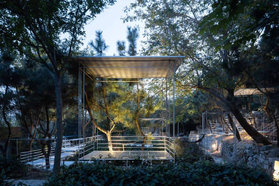 The project is located in a scenic place in Shandong with river valley forests, springs and streams, Under the concept of respecting nature and minimal involvement in the site, Thoughts Garden is built with a set of pavilions which layout following the practice of Chinese landscape painting. Prioritizing the nature and forest into the first place, the plan layout is much more scattered only focusing on buildings and installations. their form of light steel structure without disturbing nature conveys the poetic thoughts of Tang Dynasty and returns to a natural and distant aesthetic style.