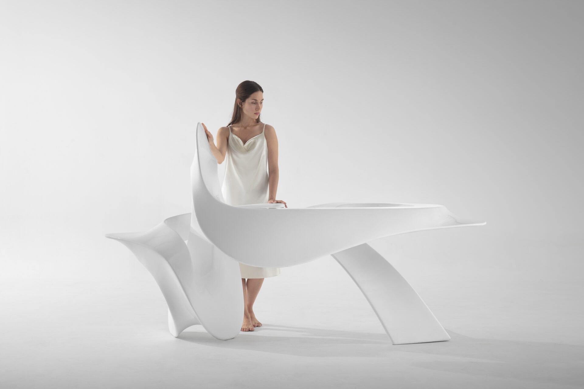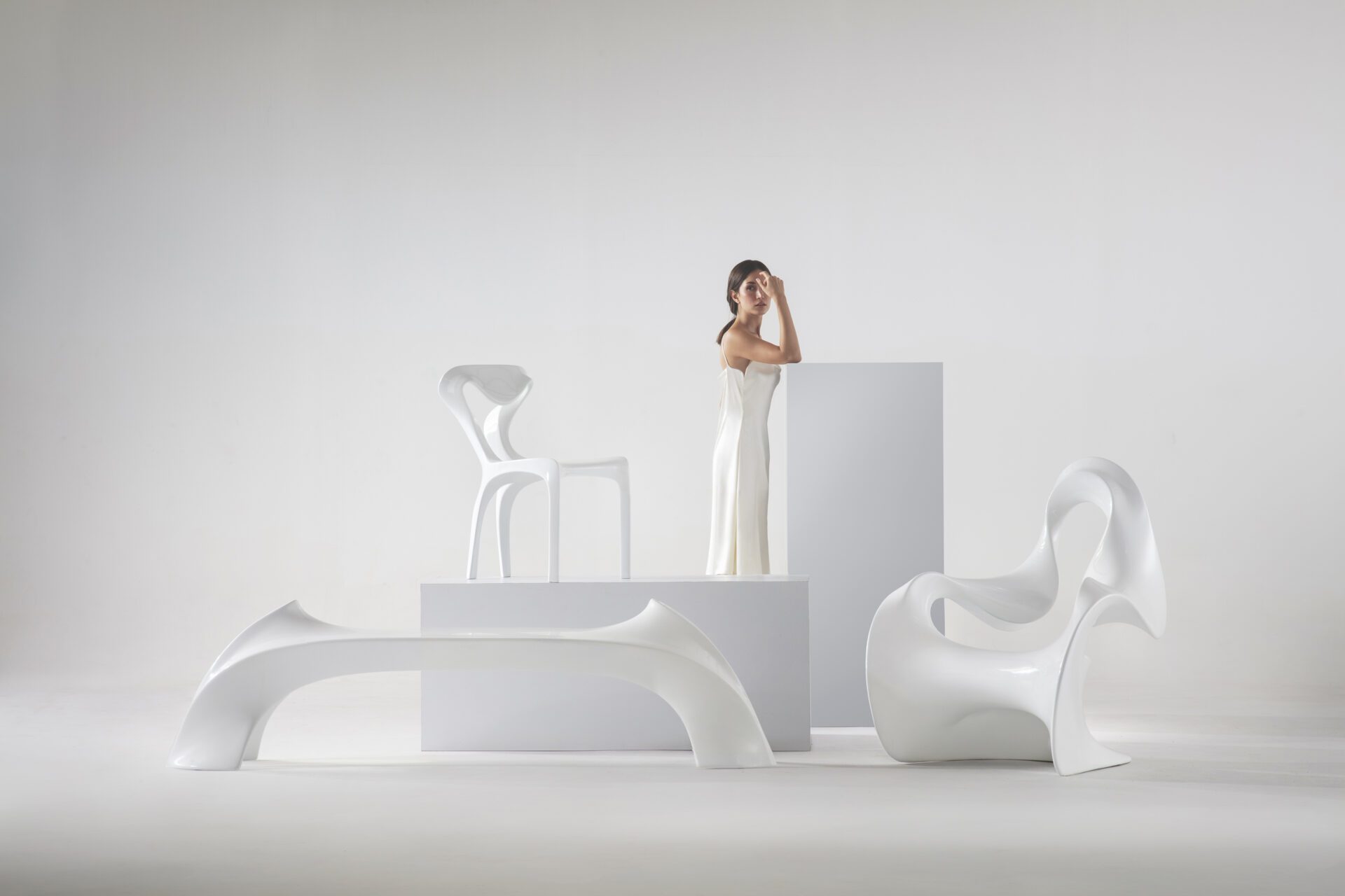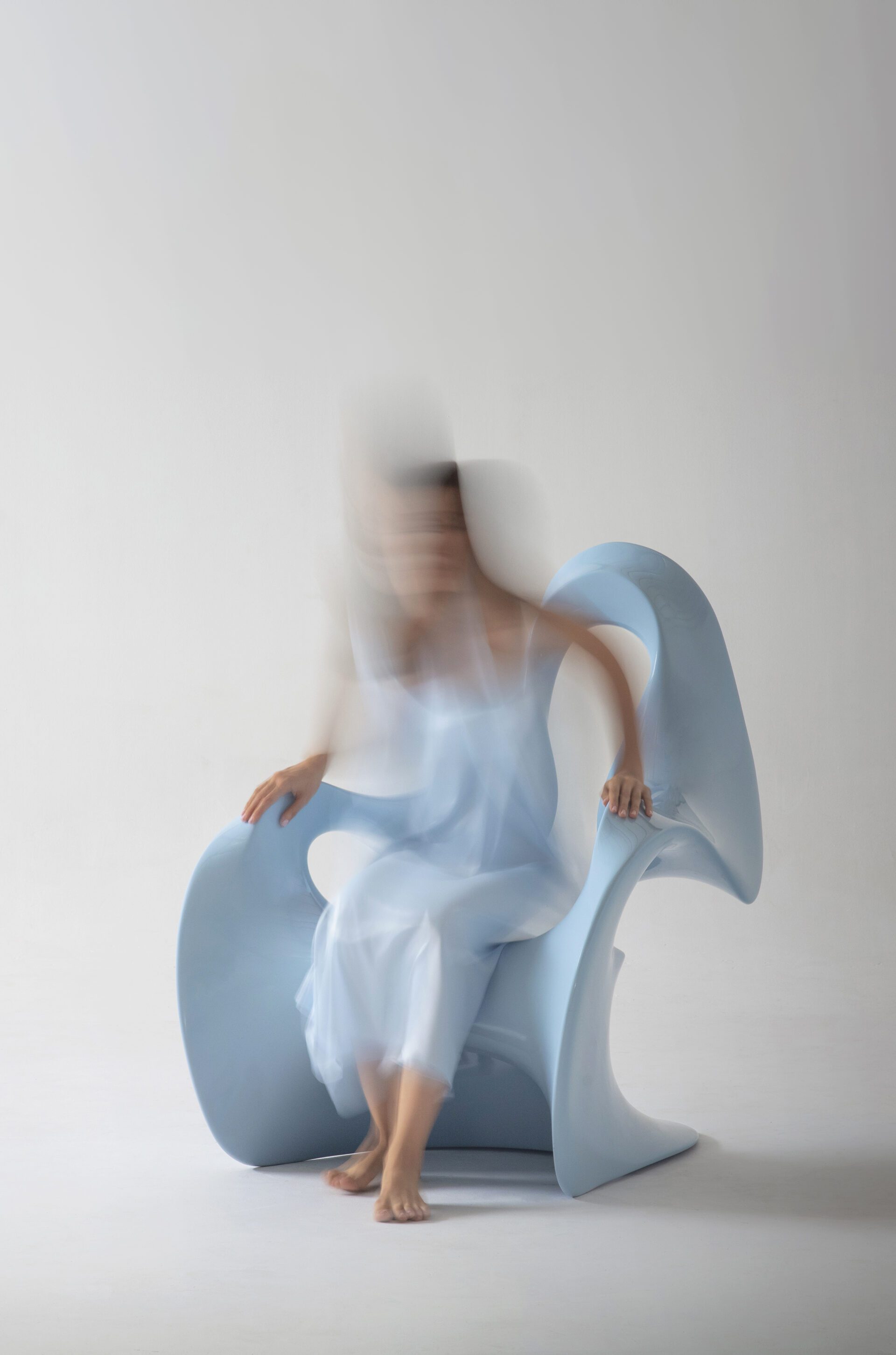 The aim of this series is to test the visual possibilities of Sa productions without an interior context simply on a white background. Due to the fluid and figurative design of the product, it was decided to use a professional model. Whether it is still or moving, the model gives the objects a comprehensible scale and adds a sense of life to the images.