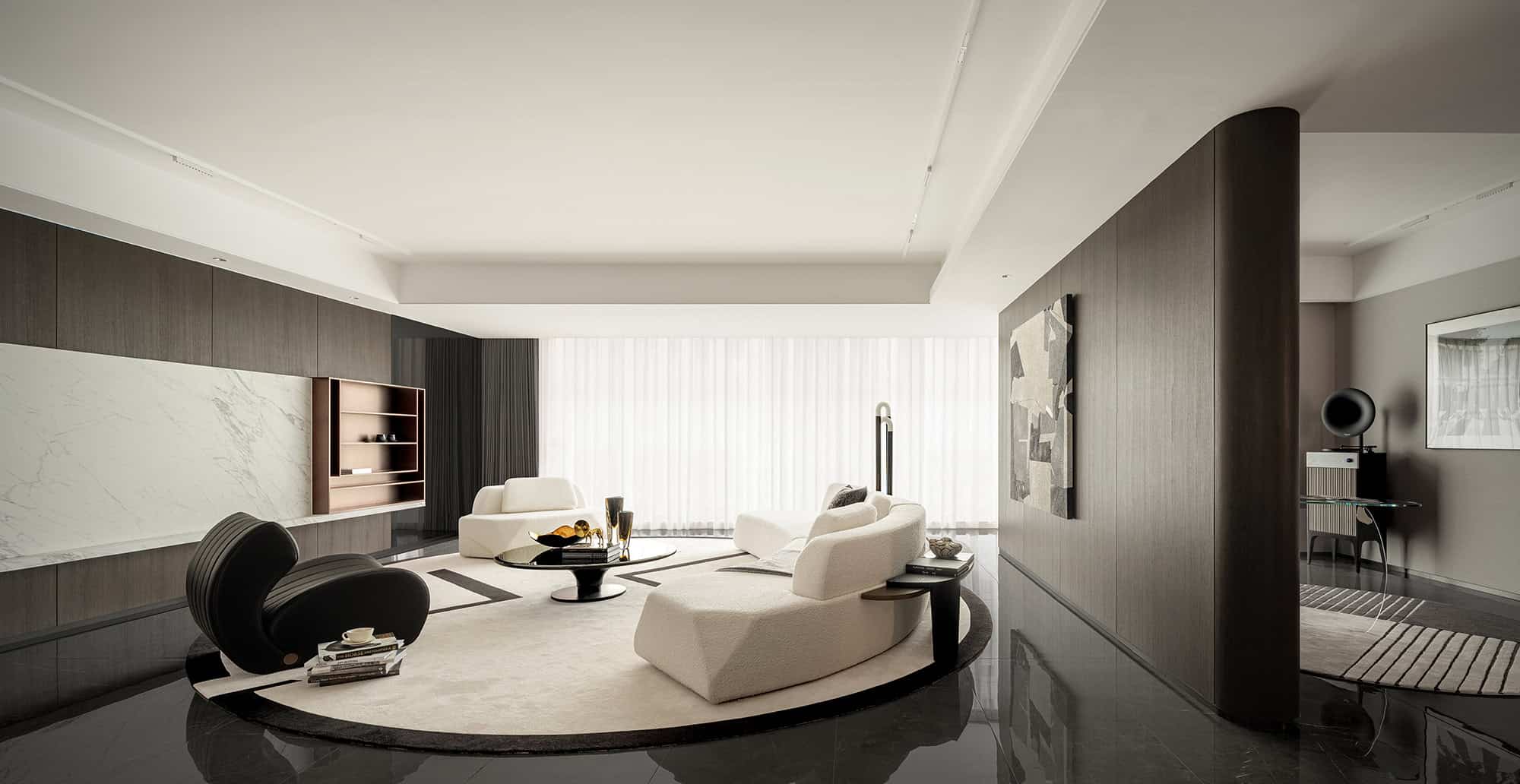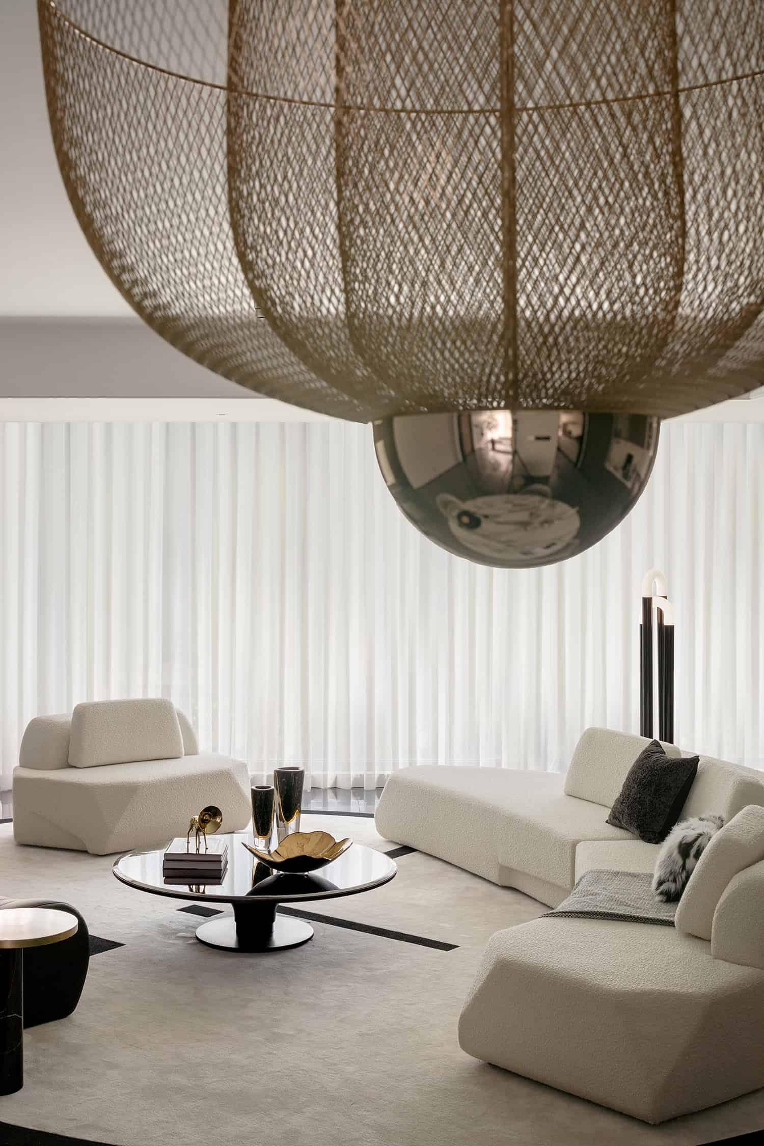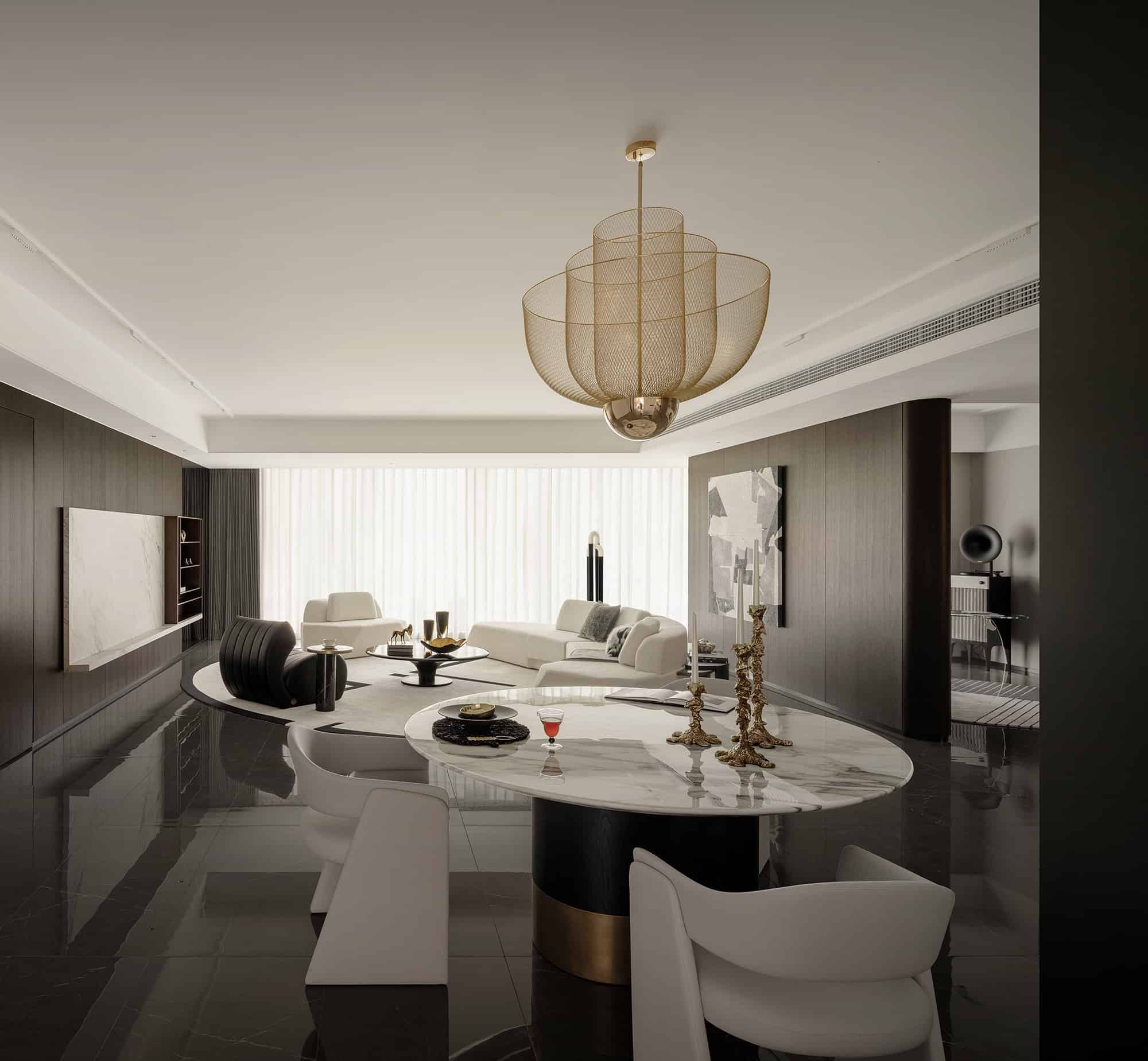 FREEFORM DESIGN takes "multi-dimensional scene experience, highly personalized beauty, comfortable quality, and healthy life" as the core topic, from overall planning to ultimate detail experience, committed to building a living form that combines fashion and quality. The spacious and bright living room layout fills the living room with a sense of free breathing. The curved sofa with light and winding design lines, the seats with modern artistic design sense, and the handmade carpet with delicate and soft touch together form the enclosed area. The flexibility of furniture product usage, freedom of movement, and the definition of deconstructing the living room. The designer turned the balcony into an open space, connected to the living room, making the public space more spacious. The 180 ° panoramic french window brings a wonderful upper visual experience. The exciting collision of materials such as marble, metal, and fabric, combined with fashionable furniture designs, together depict a modern and minimalist dining space with exquisite details. The master bedroom is quiet and introverted. The relaxed and balanced colors, smooth lines, and modern geometric installations all express pure temperament. The residential space design of this project goes from sensory experience enjoyment, to multi-dimensional scene creation, and then to the attention to quality details, making every daily life a wonderful memory.