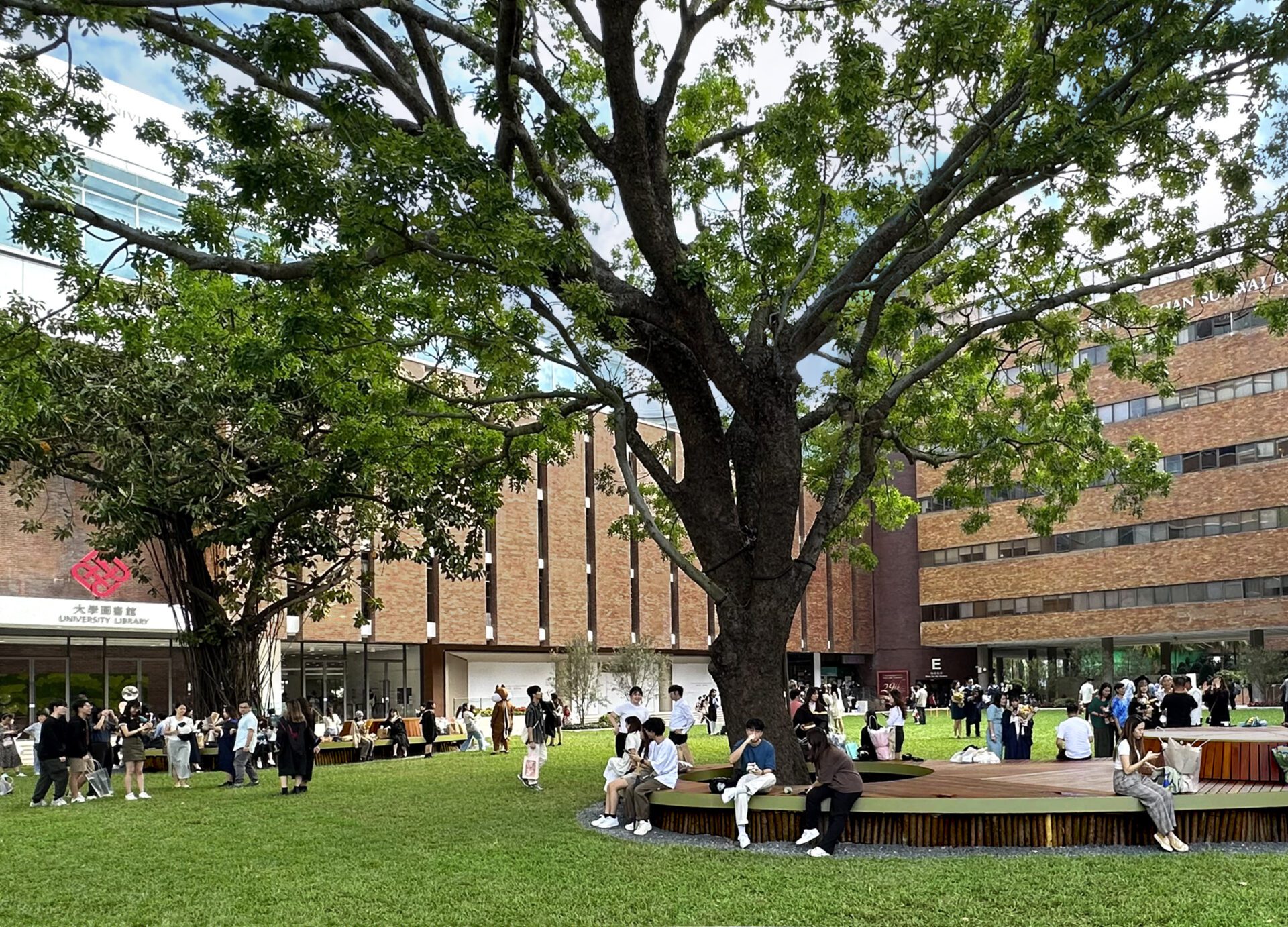 The usual preference for large empty space in campus setting, leans toward constructing academic or research related facilities, but through reimagining the existing plaza and surrounding space, the design creates a 2,200 s.m. pedestrian-friendly lawn and open area that enhances circulation around Block M and the Library Area. This redefined the value of open space in academic environment, as the space will not only provide a serene retreat for relaxation and reconnection with nature but also to accommodate large-scale events for the PolyU community and visitors, such as Flag raising ceremonies, Graduation ceremonies, Information Day, academic fairs to cultural celebrations. These events serve as a welcoming and dynamic showcase for campus life, and strengthens PolyU's reputation as a forward-thinking and inclusive institution.