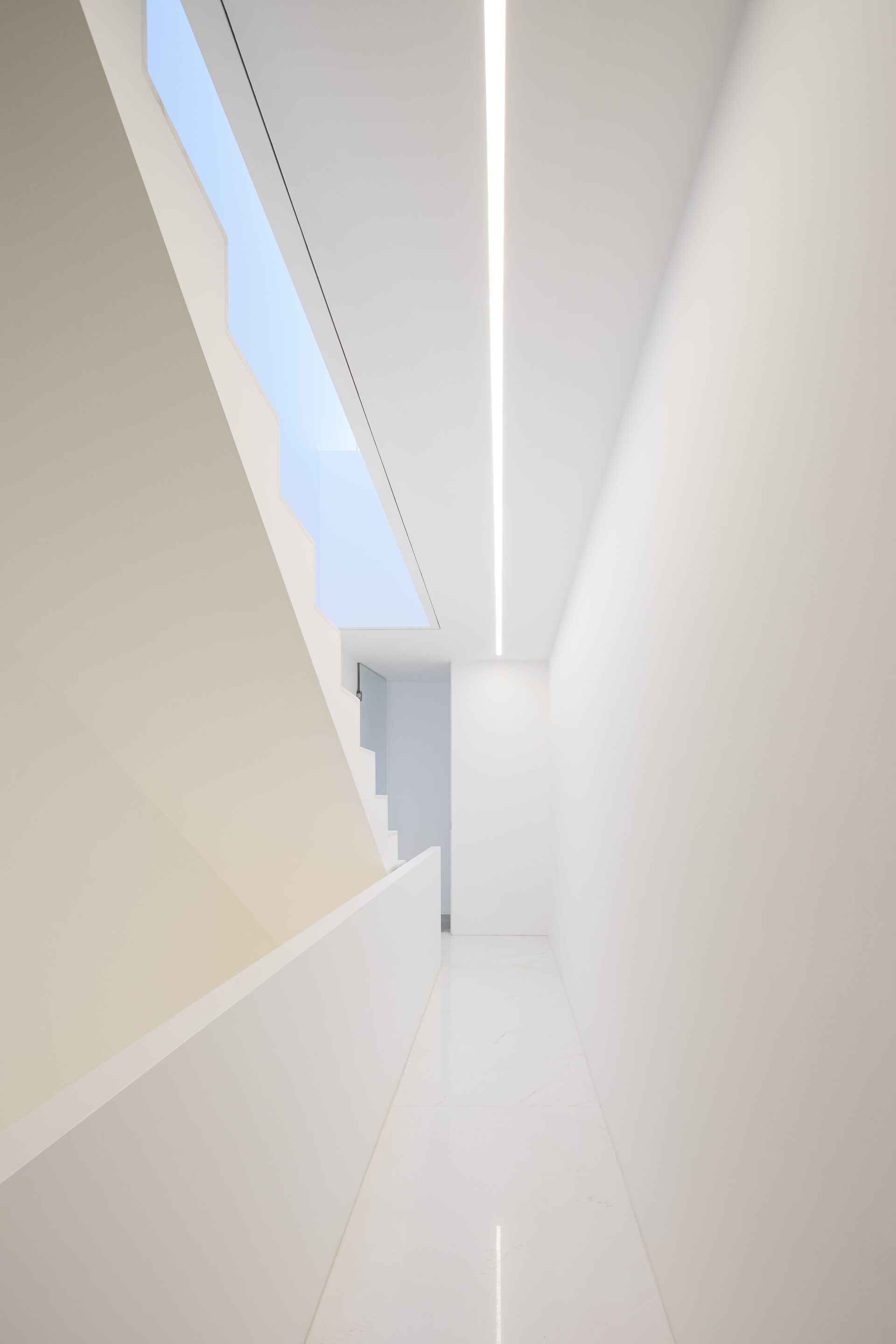 Torre Ai is in a very interesting neighborhood in Morelia named Chapultepec. The first few cases of modern architecture in the city were found there. In the 1960's the upper-class people settled in this neighborhood and began to adopt new ideas coming from Mexico City. There was an enormous pleasure and euphoria for the kind of architecture that Luis Barragan, Mario Pani and Juan O'Gorman, among others were developing. Walking around Chapultepec, one can feel and notice the modernist vein of the neighborhood. Although it is already declining due to the enormous rate of crime and violence, some cases of housing still preserving the modern architectural principles stand out. It became clear to us that the small tower had to uphold some of those modern architectural principles that make this neighborhood so special. The program is organized as follows: the first story works as an underground parking lot; the second story is the owner’s classic car garage; starting from the third story, the program is divided in two sections: a ware-house standing at the back of the property and one and two-bedroom apartments at the front. As the space for housing was limited, we placed all the horizontal and vertical circulations and services on the right, thus freeing up the center of the floor and making the most of the available space. The public areas are kept completely open, while the private ones are easily separated by a wall. The orientation of the facade towards the east generated sunshine issues in the morning. For that reason, and because of the lack of nice views towards the street, we proposed an aluminum shutter that allowed a dimmed light through in the morning and diffused the views from the inside to the outside and back. I must confess that I also fancied the idea of seeing silhouettes from the outside as if performing in a play. The building's largest and most outspoken windows face south. The purpose, besides having a convenient orientation, is to be able to see the long mountain of Santa Maria running from east to west, which is an im-portant focal point in the city. These windows open completely to allow the fresh air coming down from that very mountain, connecting the user to it in many different ways. The height of the adjoining wall is high enough to hide the roofs from the neighbors but low enough for the mountain to lay on. AI tower, white and modern in nature, aims to be a space that evokes silence, a pause among the noisy and sometimes violent symphony of forms within any city.