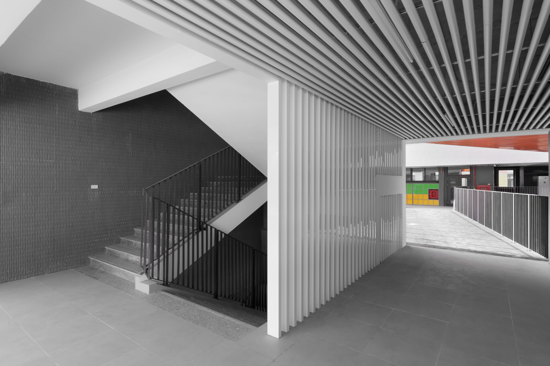 To create the project aesthetics, the architectural plan eliminated most details, prioritizing using large-aperture structural solutions to make the building more "flying" and free the view from the hallways. Architectural lines are also clearly routed. Meanwhile, architectural shapes are transferred smoothly from low to high through walking ramps on the roof connecting the blocks. The project also arranged to enhance many physical training spaces inside and outside the building for students such as a 4-season swimming pool, fitness room, and outdoor sports area. The restrooms design follows 5-star criteria, which are spacious, luxurious, and comfortable, using modern touch-sensitive sanitary equipment. The entire building facade is tiled with high-grade ceramic tiles.