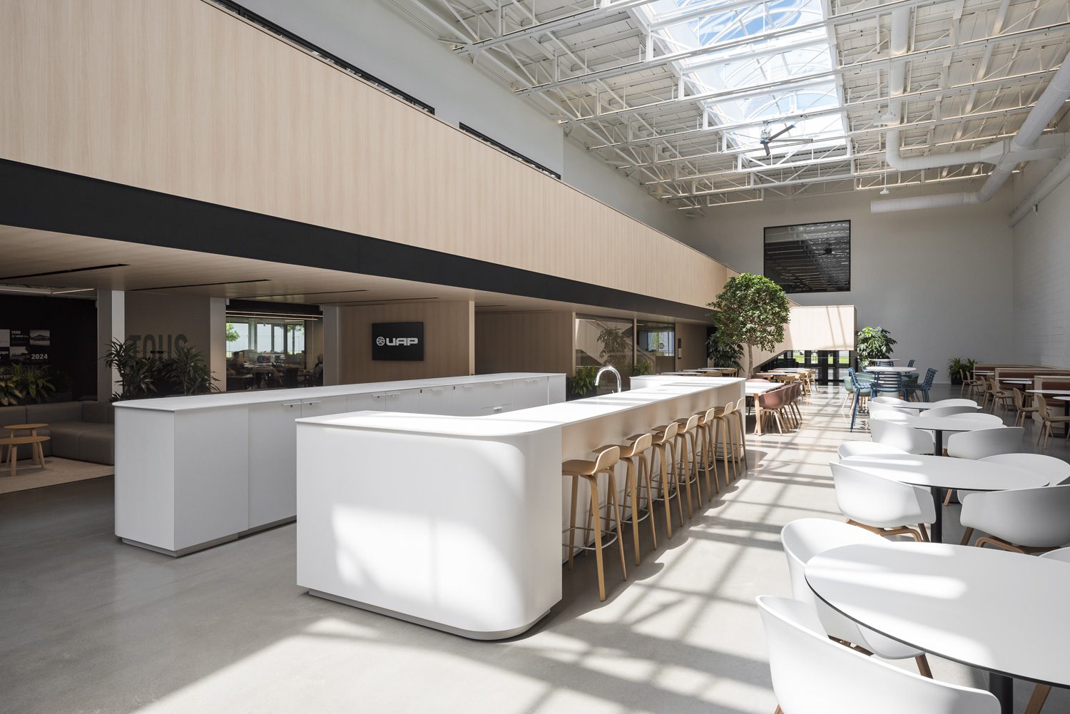 Faced with a new hybrid work model, United Auto Parts (UAP) took the opportunity to breathe new life into its Montreal headquarters to better adapt to the needs of its employees. Now a completely revitalized campus-style office, it encourages greater synergy between teams while still providing areas for concentration and solo work.