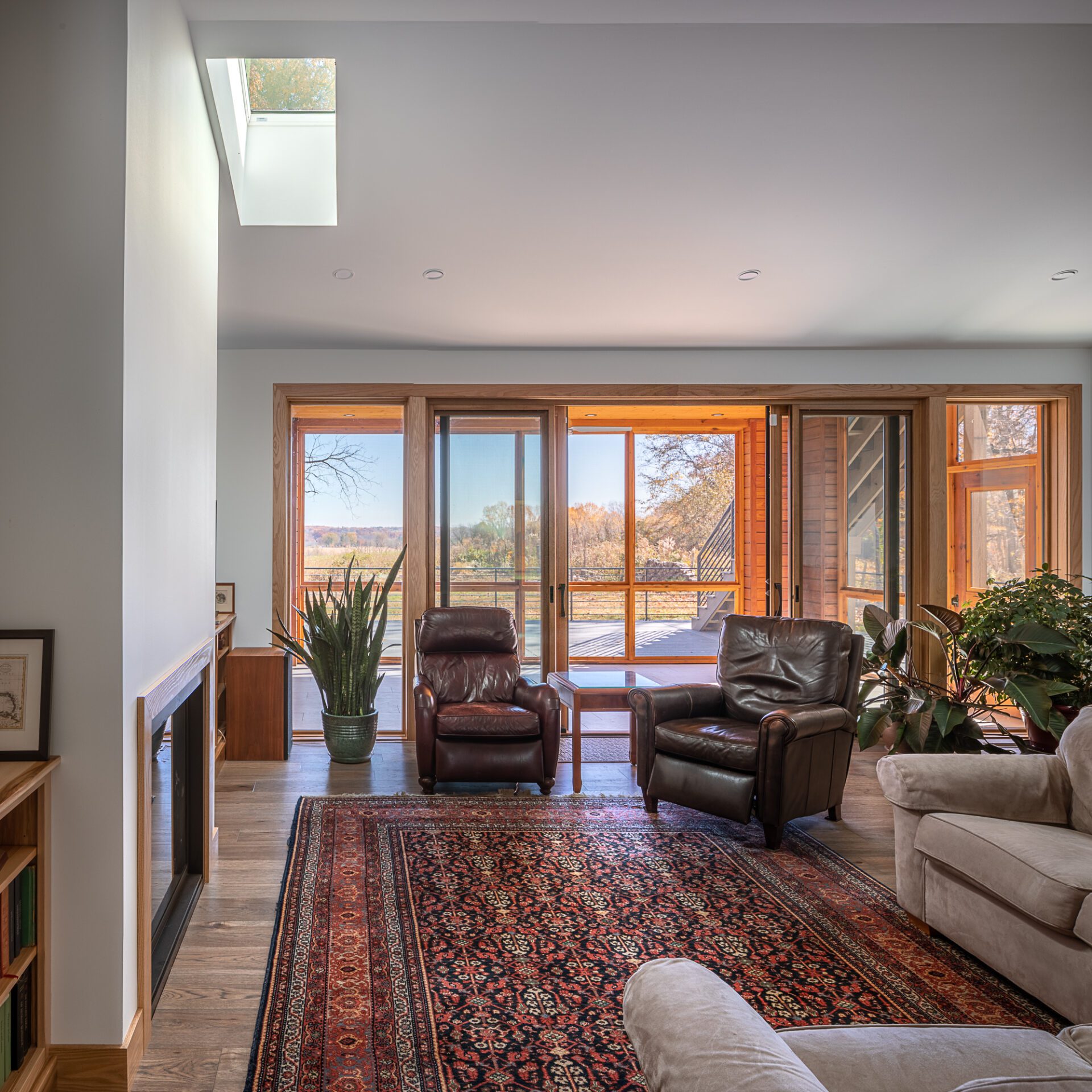 At the early start of spring in 2020, we were invited to visit this beautiful family land on the outskirts of Bloomington. We felt an immediate connection to the clients and the land. It was a wonderful experience working with these folks to place and design a home that maximized views of campus off in the distance while preserving the rural appeal of the site.