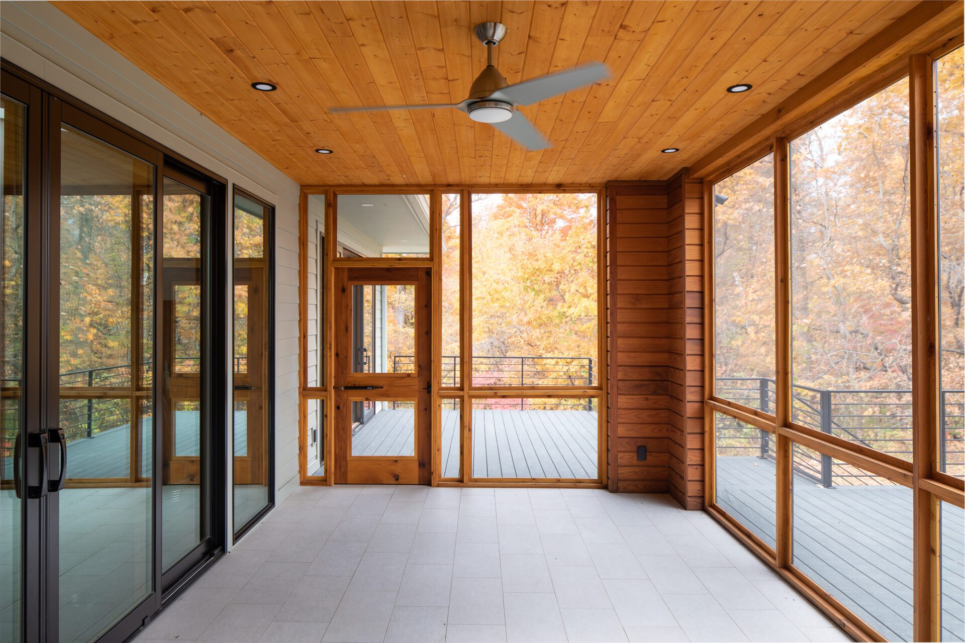 Another driver for the home was a screen porch, deck, and rooftop patio from which to watch the stars on clear nights and also to capture the views of the main library at the IU campus during the day.