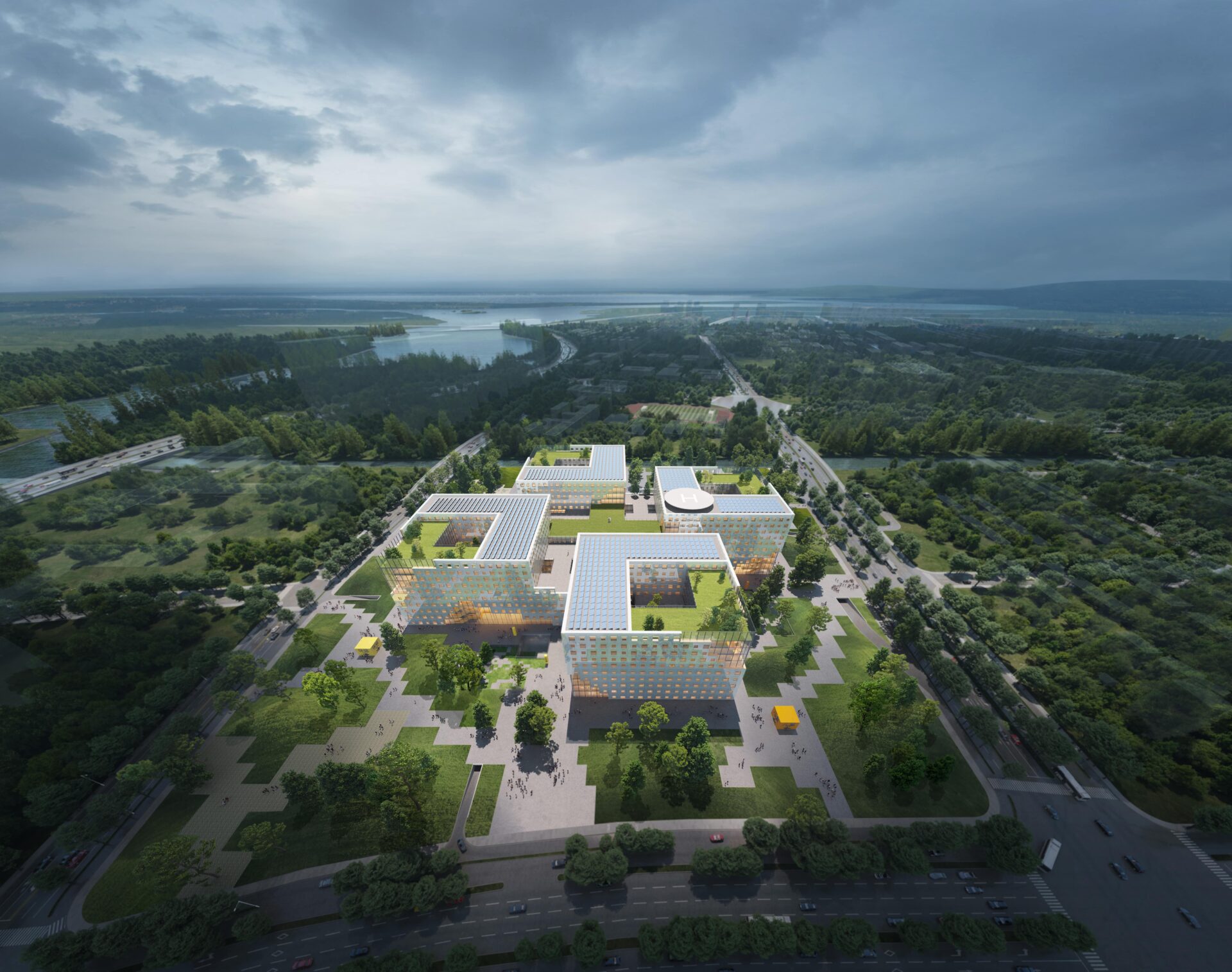 Wuxi International Healthcare Campus breaks the traditional practice of general hospitals and its common disorientation when navigating through the building. By forming a cross windmill scheme, this project incorporates four parks and nine centers which adapts its design to the needs of every type of user. Each medical campus is divided into at least two discipline centers according to the user and type of disease, and forms nine discipline centers with the Department of Infectious Diseases. In addition to the infection building, eight of the centers are composed of a combination of four standard modules and a shared medical technology and experimental platform of the center, which is located in the center of the entire plot. The infected building is located on the northwest side of the downwind direction of the site. The whole Wuxi Women’s and Children's Healthcare Medical Park is divided into four sub medical parks, namely children's medical park, emergency treatment / first aid medical park, maternity medical park, and healthcare medical park. The community park is open to all directions; the shared space integrated by outpatient, inpatient and clinical think tanks is scattered in high and low levels. The ubiquitous courtyard and scattered sky garden send sunlight, breeze and scenery to each consulting room and ward. This intensive layout of moving lines improves the operation efficiency as well as energy-saving. The creation of a smooth underground transportation hub was also one of the key features for having a successful institutional building, not to forget the design of the riverbank planning, road, and land, returning the riverbank park back to its citizens. In addition, its landscape design is also meticulously integrated by mirroring the façade composition into the ground. Both the elevation and its external ground floor are symmetrical, making all the different elements become one and bring a unique identity to the city.