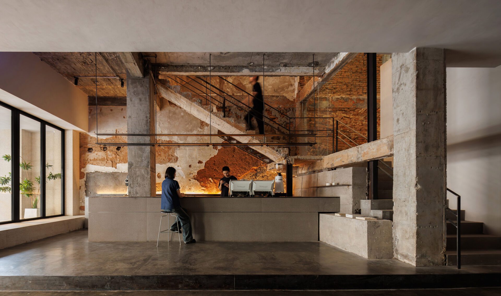 The design respects the historical features of the original building. While meeting the basic functions, the original building structure and walls are retained as much as possible, and new functions are introduced in a controlled manner. The exposed building structure allows people to more intuitively feel the historical life aspect of the arcade building. Local granite stone and red brick elements commonly used in local ancient houses are used in the space, awakening people's emphasis on traditional materials and craftsmanship.