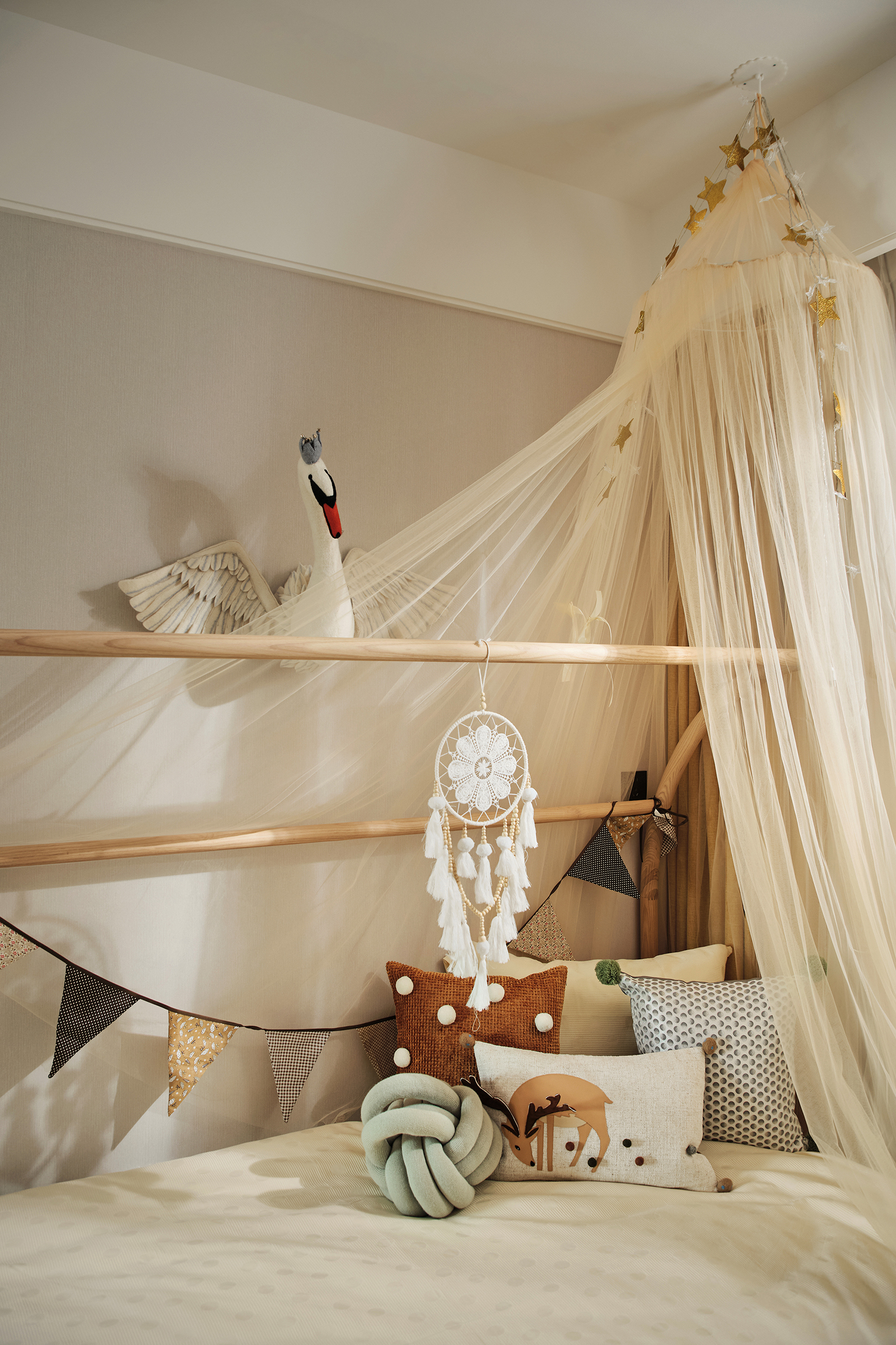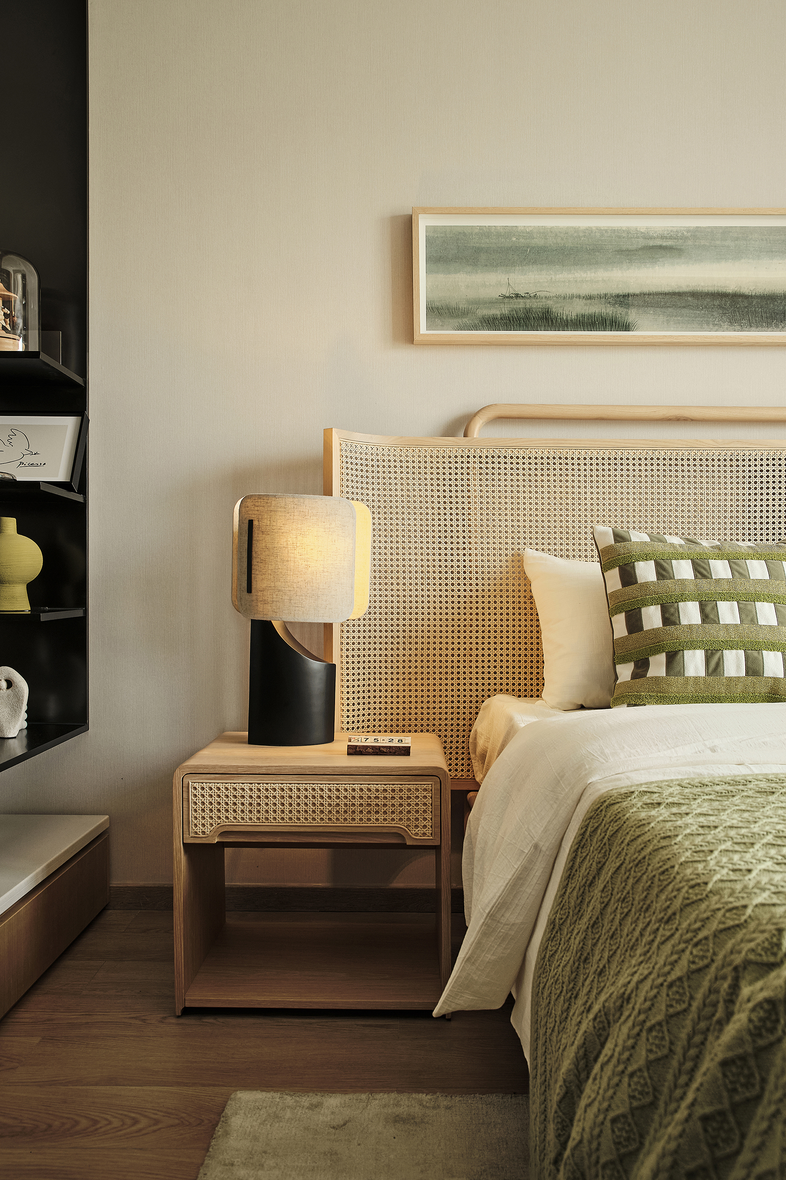 Palpable paper, a material with a distinctive color and texture, is used for the background wall, softening the overall ambience of the room. A good living environment for the residents is provided by the huge number of flexible materials, which also have a powerful sound-absorbing function and a strong partition impact on high frequency, medium frequency, and low frequency noise. The palpable paper is easy to maintain, moisture-resistant, mildew proof, and collision proof. When a big area of palpable paper is used, it can also control the indoor temperature well, maintaining a comfortable temperature regardless of how hot it is outside. This prevents the need for prolonged air conditioning use, which saves energy.