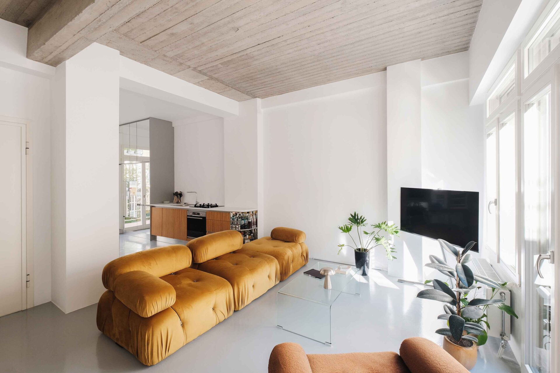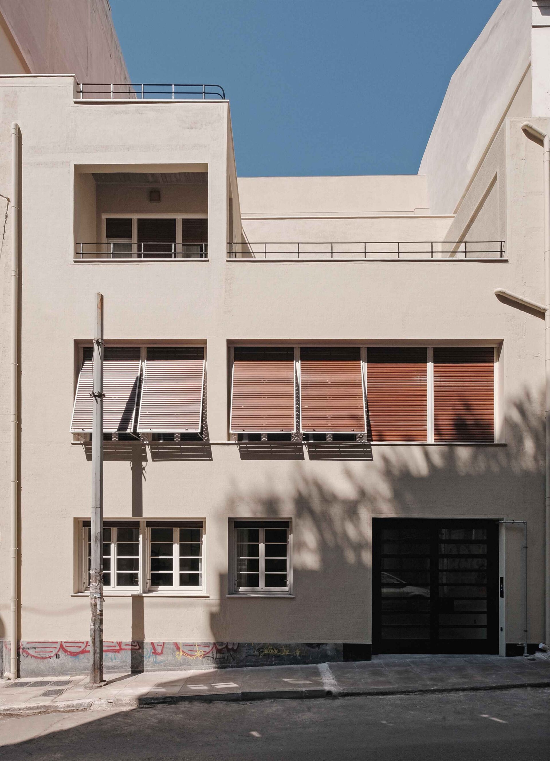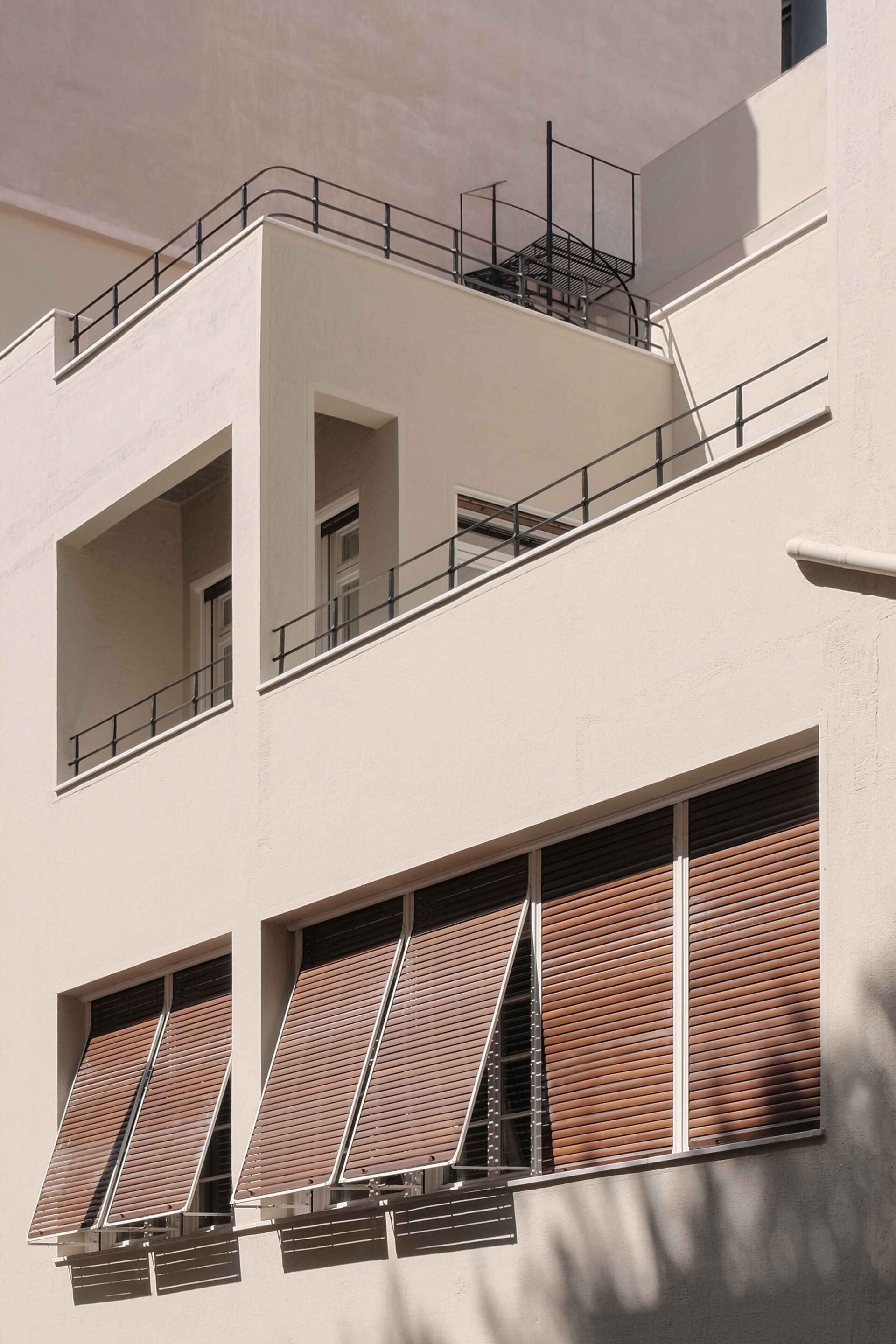 The old concrete structure has been maintained and reinforced where it was necessary, while a new slab was constructed for the top floor. Built in the 1930s, it was not connected to modern sewage, water supply and electricity networks which had to be restored. During the renovation, all the decisions concerning the upgrades was made with the aim of protecting and respecting the heritage of the building. The renovation restored the building to its original condition as much as possible, while simultaneously brought to the surface a new updated form, complying to contemporary living needs and city's regulations. Special attention was given to the energy upgrade of the building. This is evident by the wooden framed windows that were installed, which resemble the original ones but comply with current energy efficiency regulations. This restoration posed challenges in both cultural and social terms, in identifying the fine balance between a functional and an archaeological approach with respect to both the initial intentions of the architect and the current socio-political conditions in the centre of the metropolis of Athens. Thus, it was imperative to create a meaningful design out of subtleties and avoiding potential flamboyant tendencies seen in recent restorations.