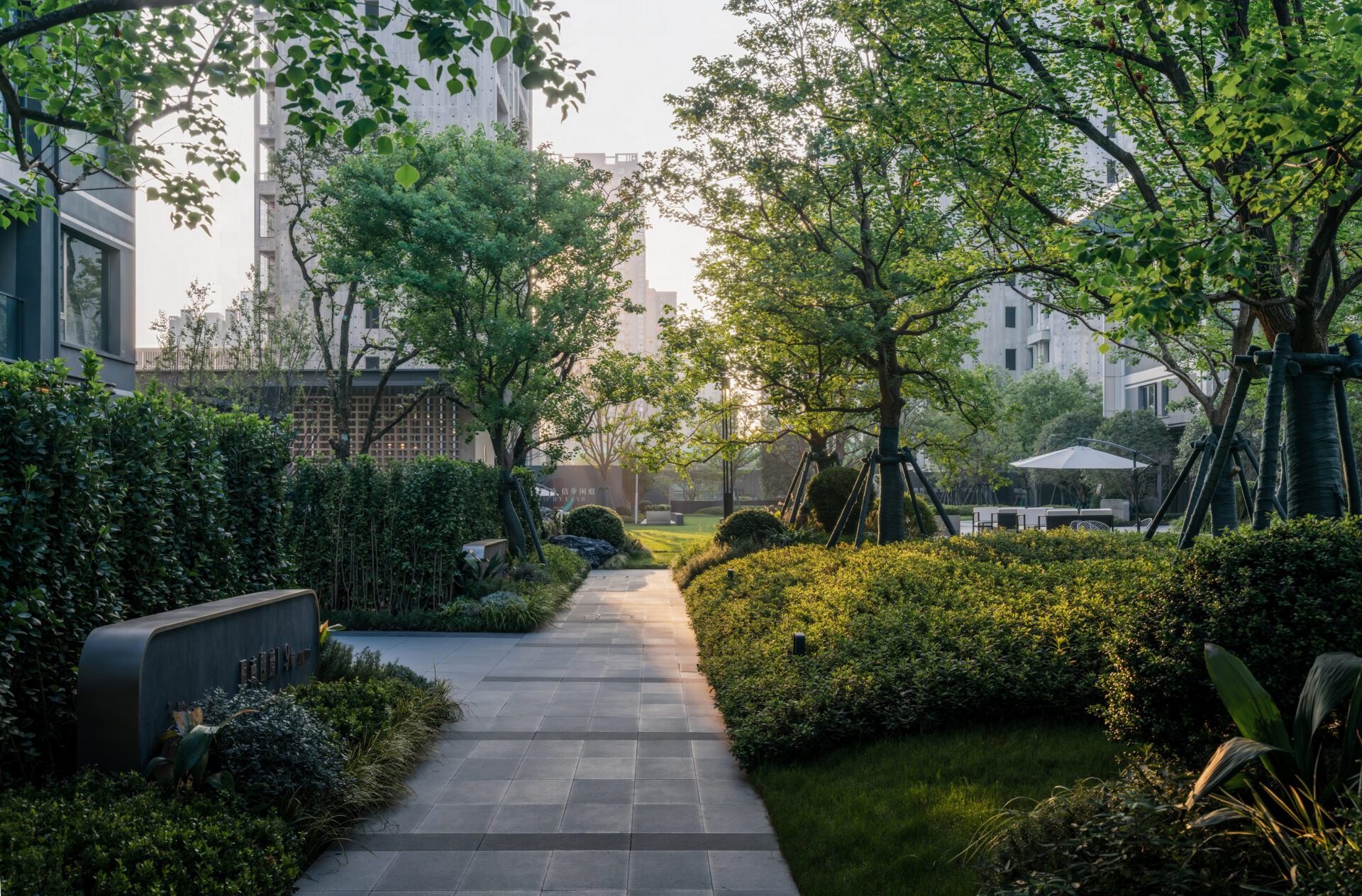 The Tree-shaded Gathering Space features a blend of light, shadow, water, and greenery, which are simple and beautiful scenes that result in abundance and an ideal residence. The hollow design of the pergola enriches the interplay of light and shadow, bringing a hazy beauty of virtual and real changes, filling the entire space with a sense of poetry. The boundless water feature creates a floating feeling that holds the artistic sculptures, highlighting the artistic life atmosphere of the community.