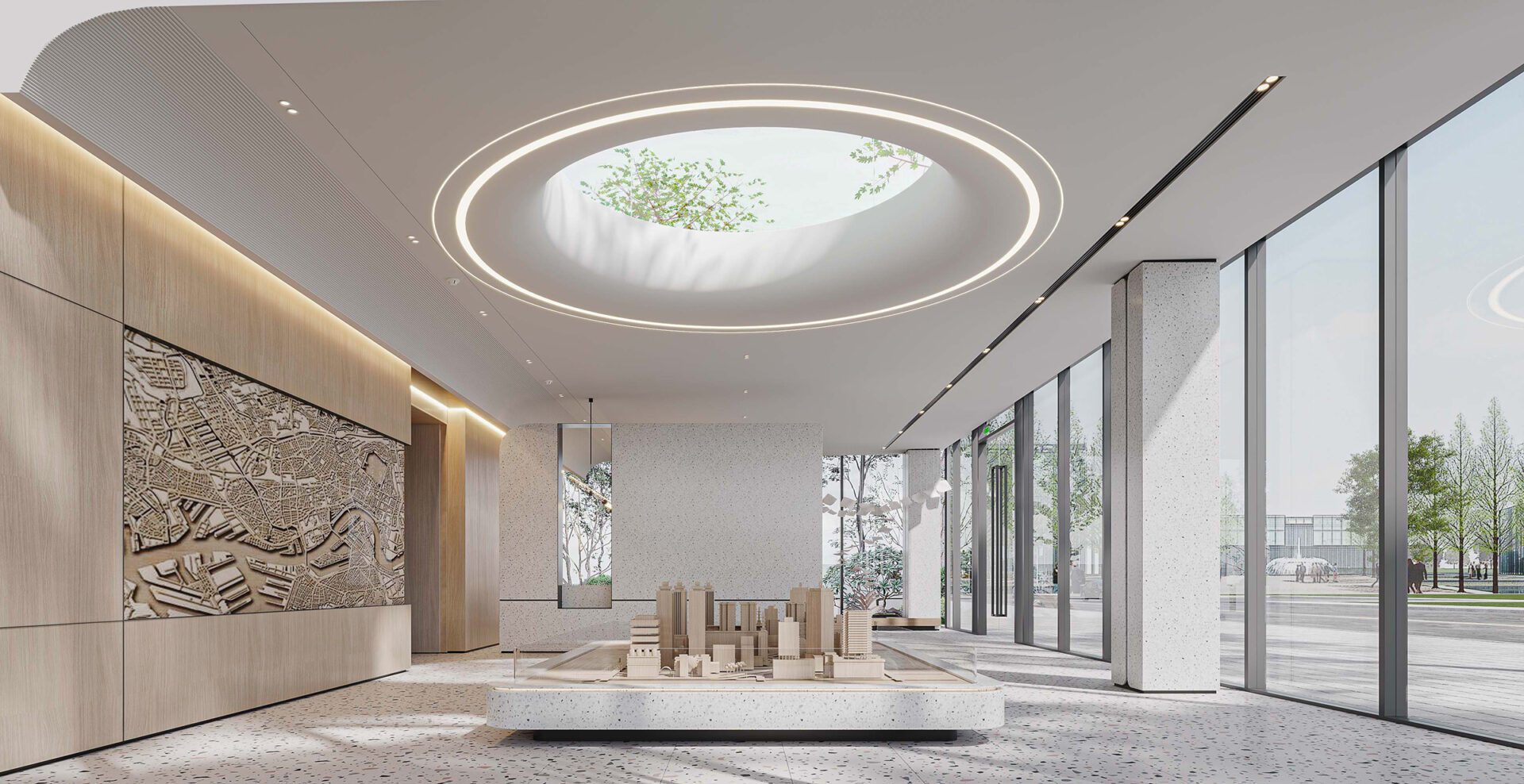 The project is a new detached two-story building that can be found in Hangzhou City’s Lin’an District. It can serve as a reception area, visit area, negotiation area, and experience center in the early stages. With functional sections like a property reception center, an elderly activity center, a children's activity center, and a coffee and book bar, it will play a part as a supporting public construction project in the neighborhood after the overall delivery.