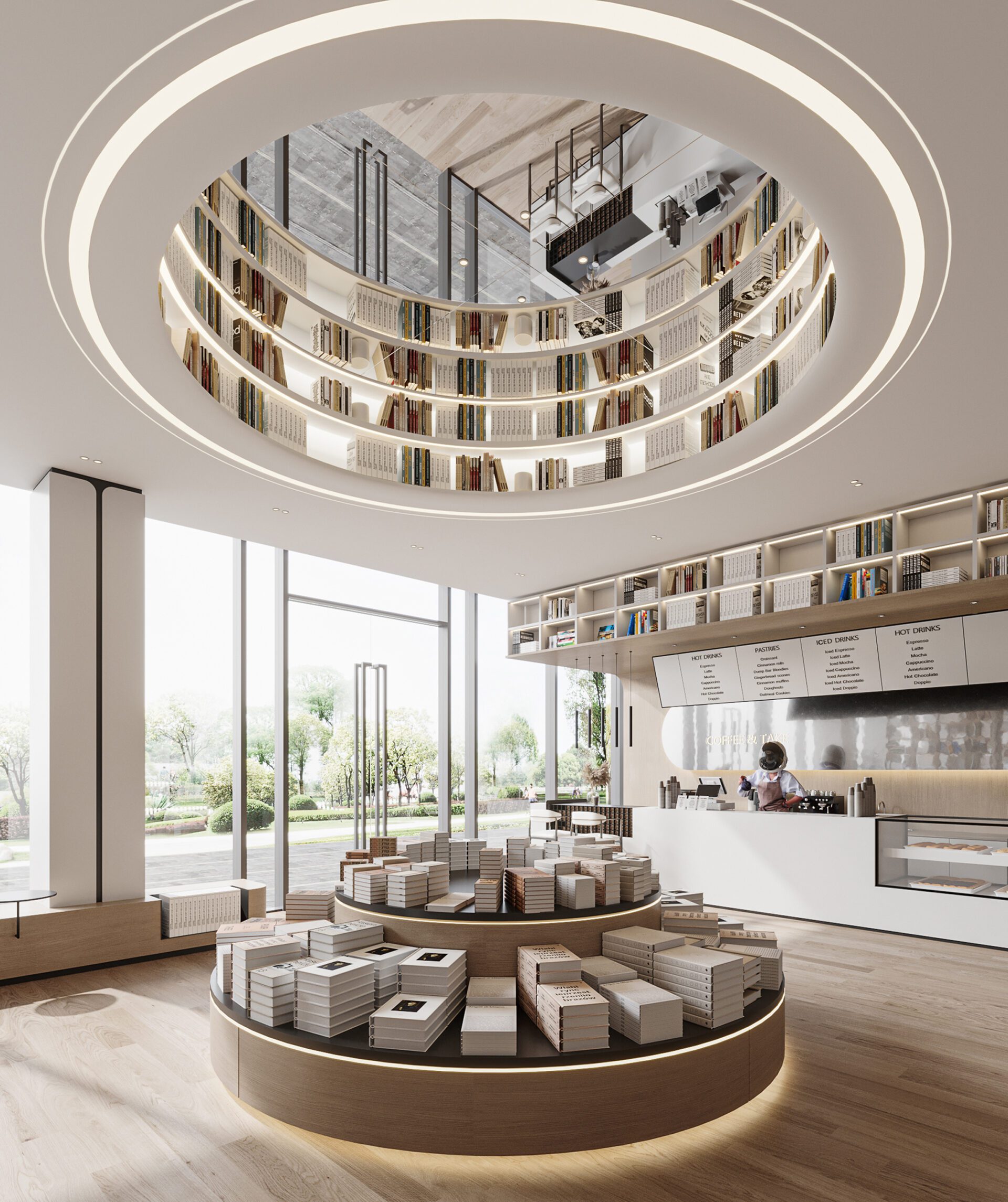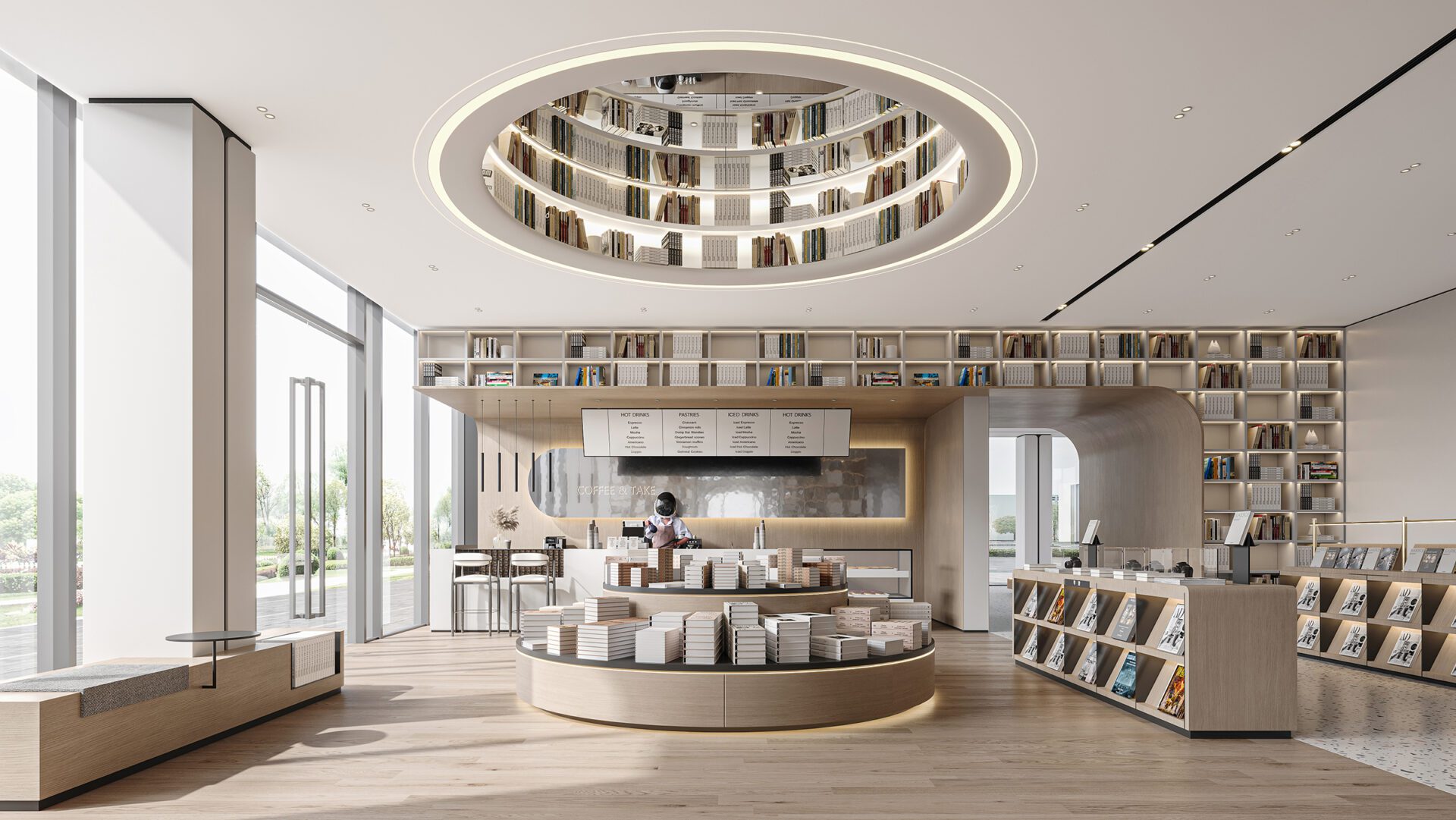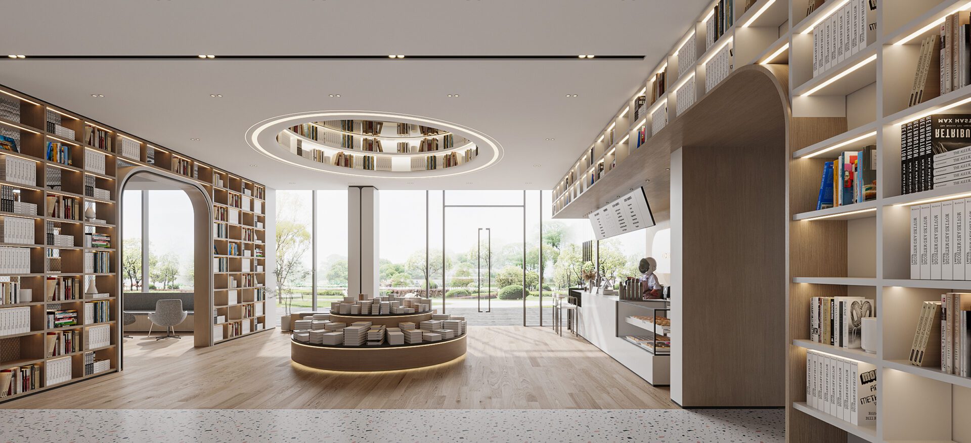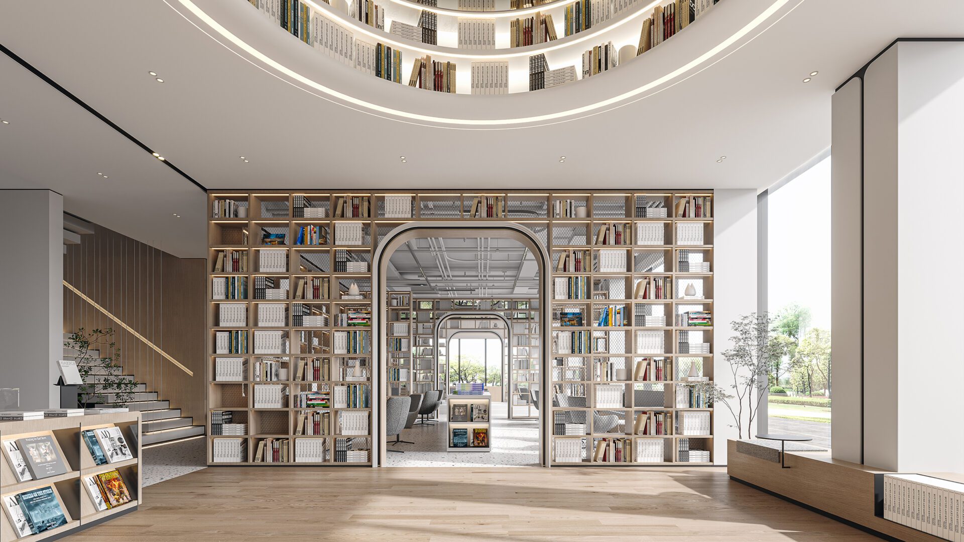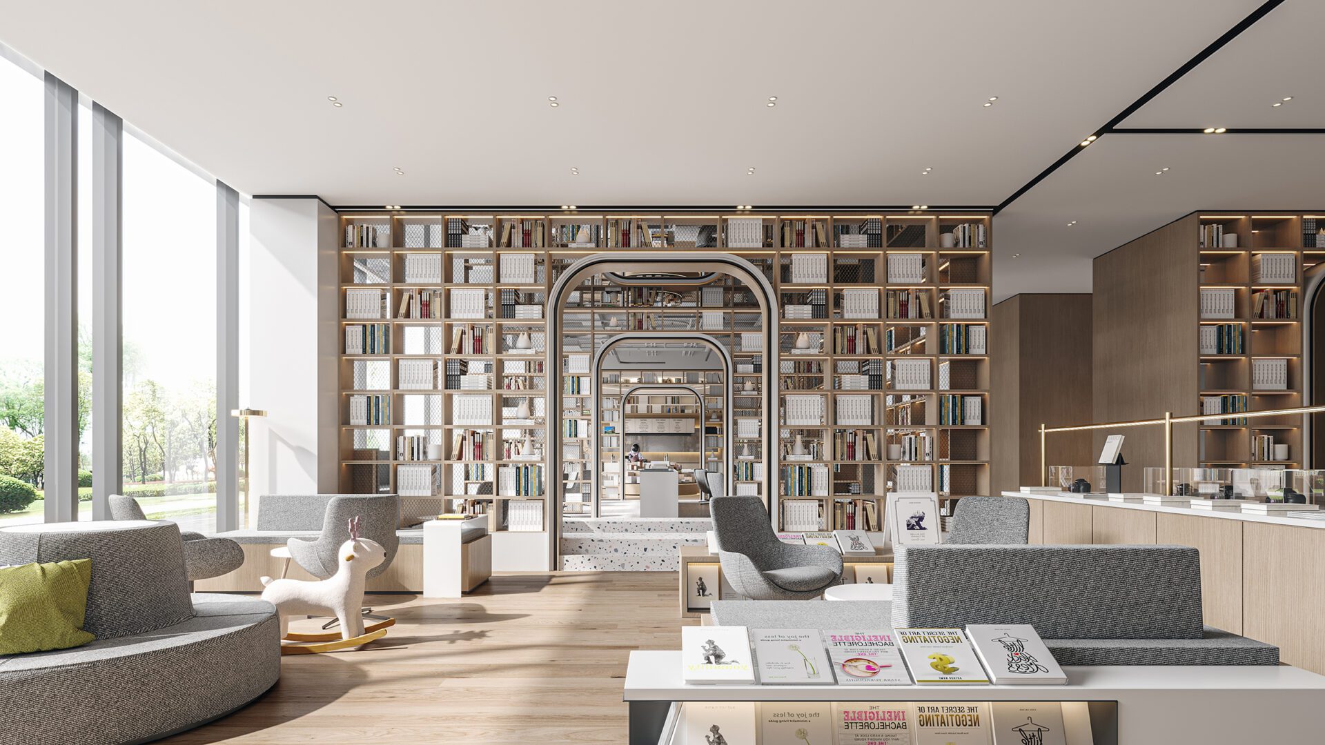 The early-stage reception area, book bar & negotiation area, parent-child reading area, and reception display space correlate to the property welcoming center, coffee book bar, children’s activity center, and elder activity center, respectively, in the latter stage. A comprehensive experience center is created in the early stages when different functional spaces are dynamically divided by semi-transparent bookcases and screens and connected by barrier-free elevators. The light partition wall is afterwards installed using the reserved accessories but without removing the aesthetic interface, allowing each functional area to achieve independent separation and independent operation.