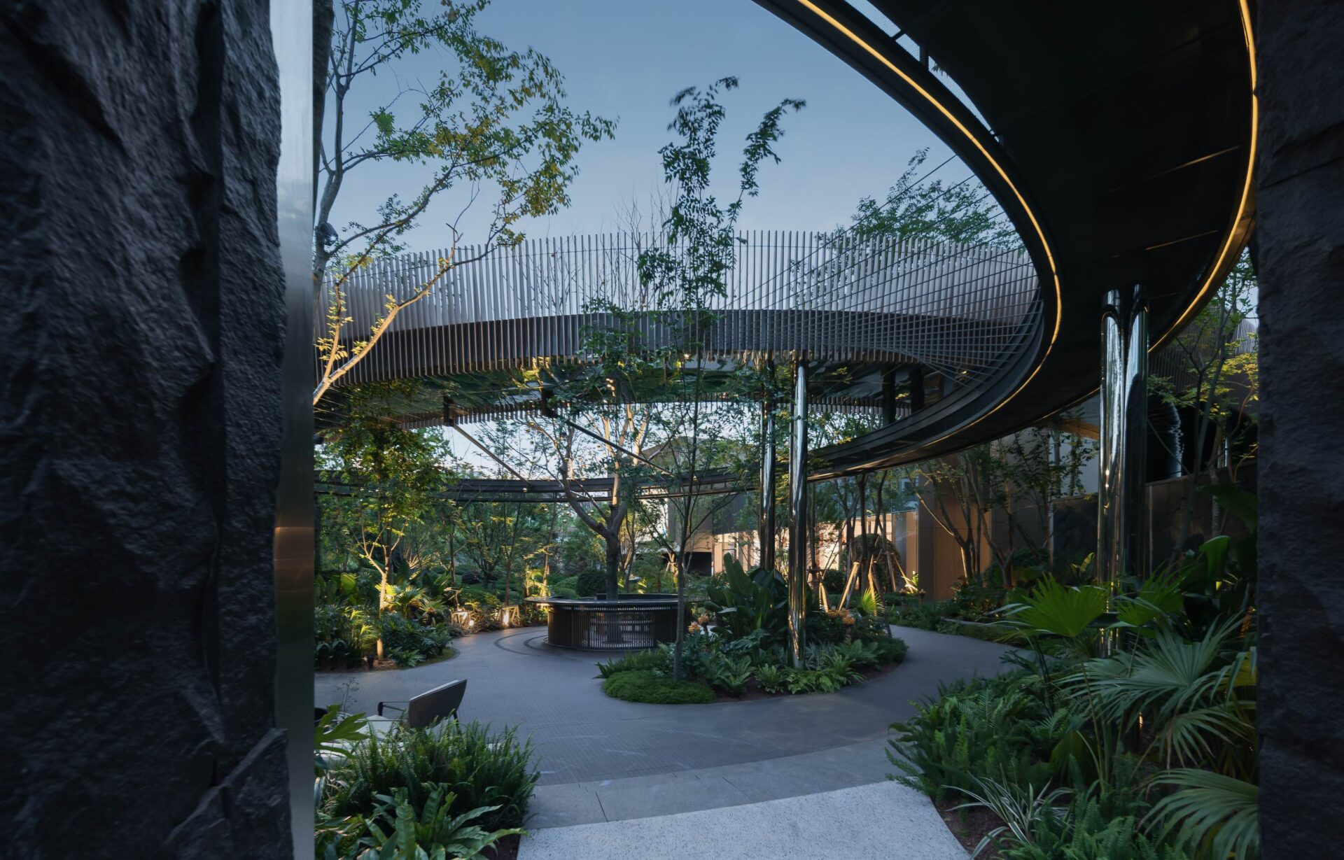The landscape design in the park adheres to the characteristics of modern landscape architecture and integrates the urban landscape style to create a modern garden landscape that can be enjoyed and toured. Combined with the unique natural height difference conditions of the project, we created a natural and relaxed tree-shaded space and natural feeling, leaving the mundane and returning to simplicity, using light color as the keynote, interspersed with gray, embellished with gold in the whole site, to highlight the luxury quality and form a modern and smart urban garden. While, Yuexiu’s YuYuejiangchen is destined to be the future high-end circle product of Caijia Plot.