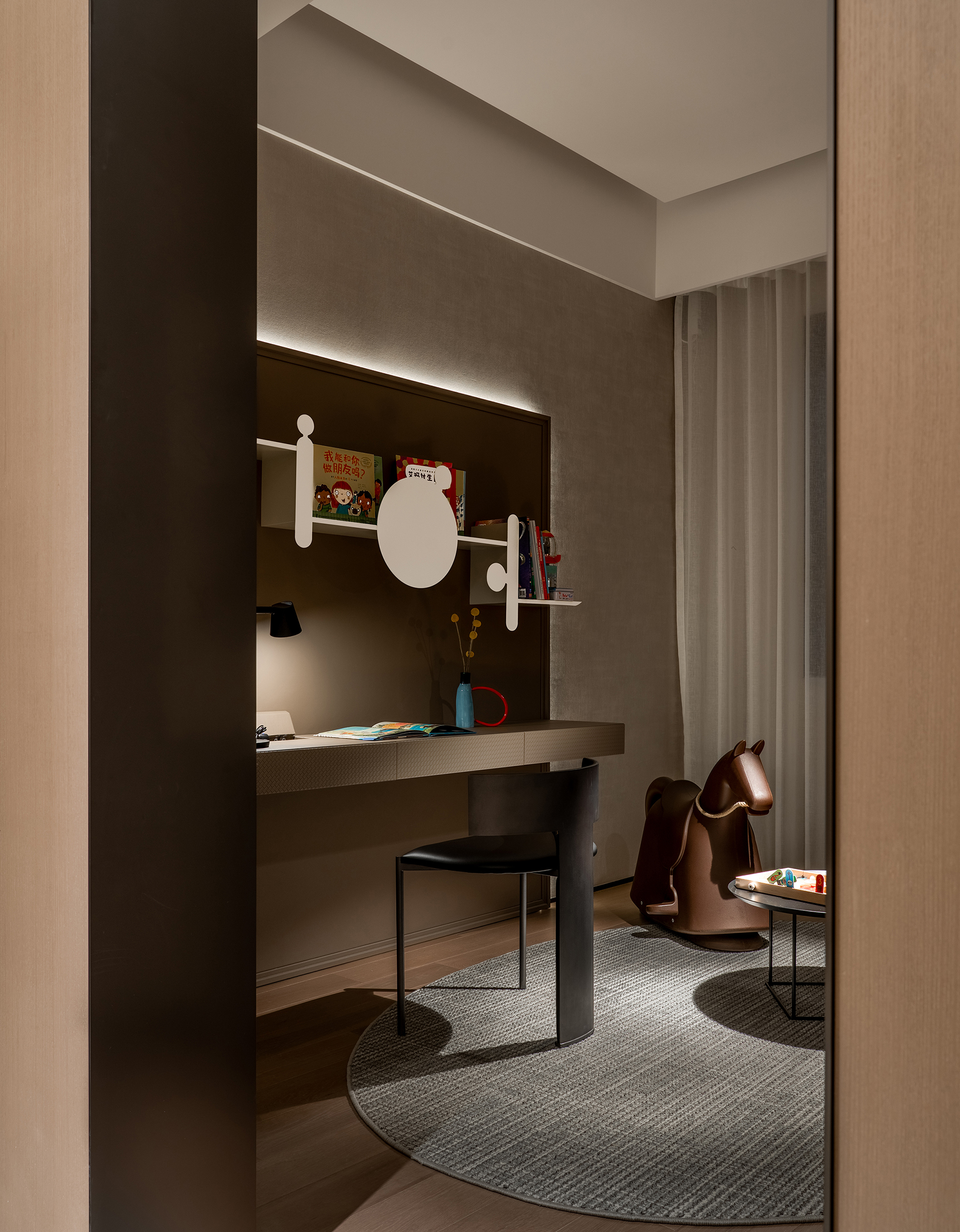 The light tones and minimalist aesthetic of the boy's room provides a space which matches a child’s liveliness and vitality. True comfort is to understand each person's needs and to be able understand them from within.