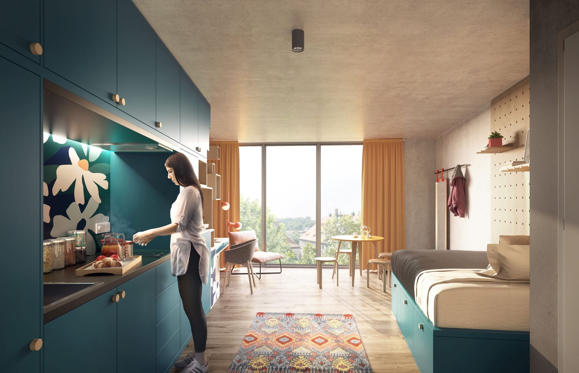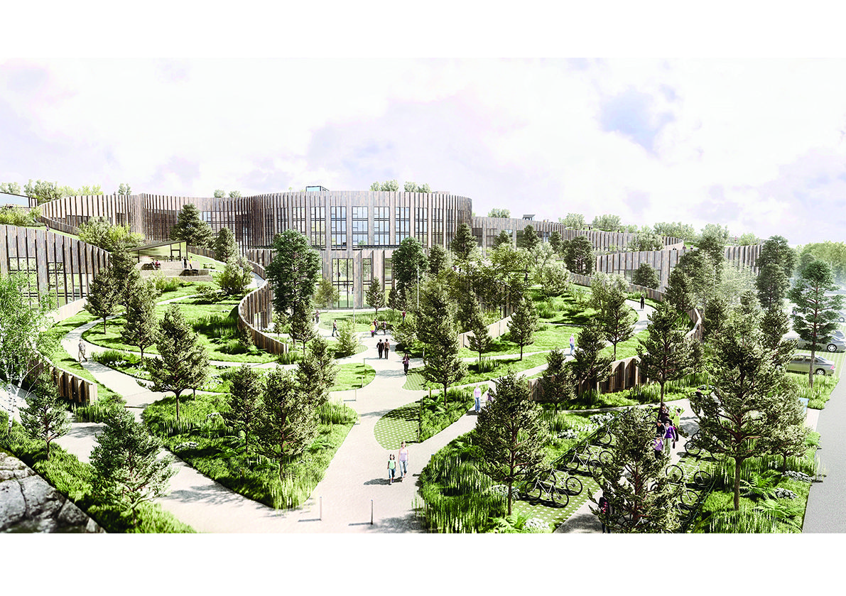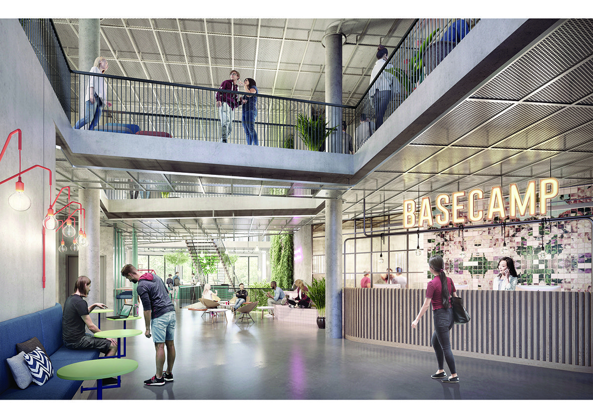 BaseCamp Lyngby is a socially interacting super structure and will function as a sustainable shared living community for 900 students, PhDs and senior citizens. BaseCamp Lyngby’s organic structure is inspired by the surrounding green area and a desire to bring people closer to nature and motivate them to interact with it and with one another. It is a social organism designed to be a catalyst for bringing people of all ages together for social interaction, as well as quiet immersion. The architectural concept is about creating spaces that flow together unobstructed and provide intriguing experiences throughout the entire composition, from both the various inside court yards, as well as the outside landscape. Unexpected and surprising elements and views are fluently added to invite poetry and spirituality into the architecture. The structure is made of a single trapezoid shaped module. The module is repeated, rotated and stacked in different heights in order to create the round organic shaped structure. This is what kept the construction sustainable and within the budget limits.