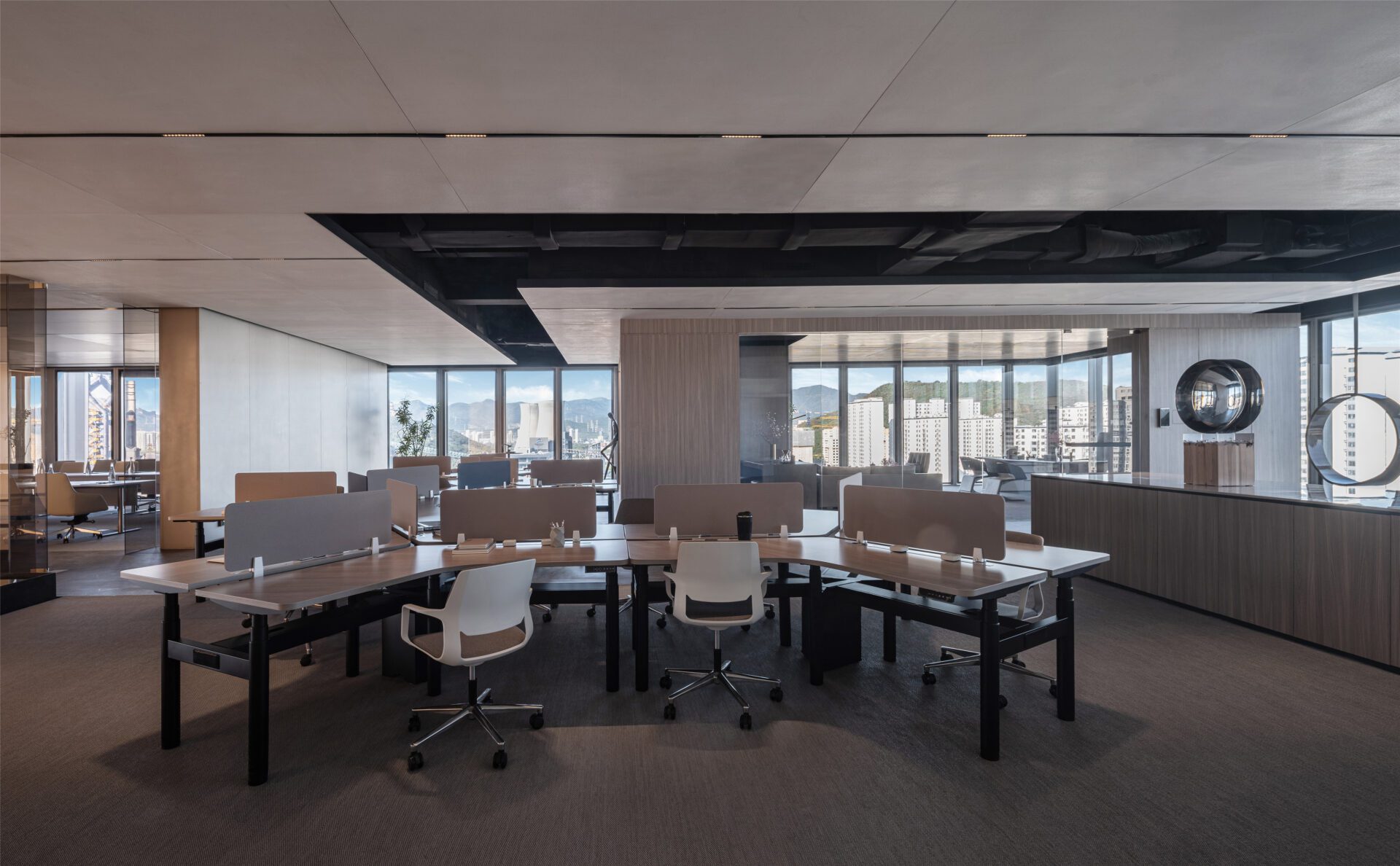 The collaborative office area is equipped with open sitting/standing semi-private workstations to facilitate collaboration and interaction among employees. Ergonomic lifting desk leaves employees the right to choose their own work style.