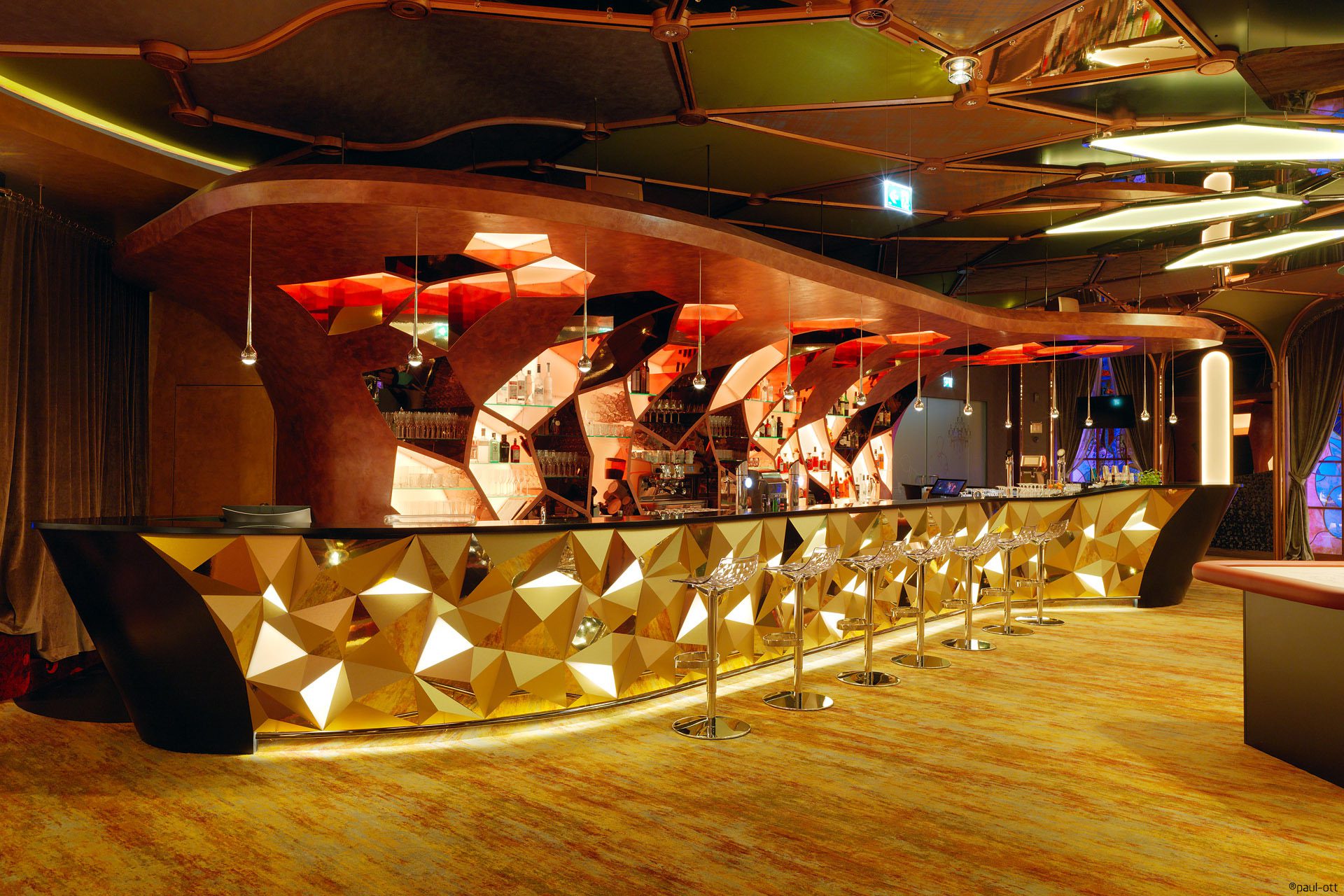 Casino of the future Las Vegas in the middle of Styria? Impossible? Or is it? Not impossible at all, is what the Architectural Office 'Strohecker Architects' have proved. The office, based in Graz, has infused the casino in Graz with a considerable portion of gold dust and magic, just as it is a custom in the worlds gambling capital. Las Vegas Styrian style - is the motto of one of the most spectacular renovation projects in the Styrian capital. Over the course of four years, two of which have been a construction phase, a new architectural highlight was created, with emphasis on interior design. The completed project is not merely a gambling location. It offers a range of events (theatre, concerts, cabaret etc.), hosted in its event hall. Entirely overhauled 5-star Restaurant completes the ultimate entertainment experience. This immersion of the entirety of visitor’s senses is the underlying concept behind the interior design. The renovation was completed in several stages, while constantly keeping the casino operational and open to visitors.
