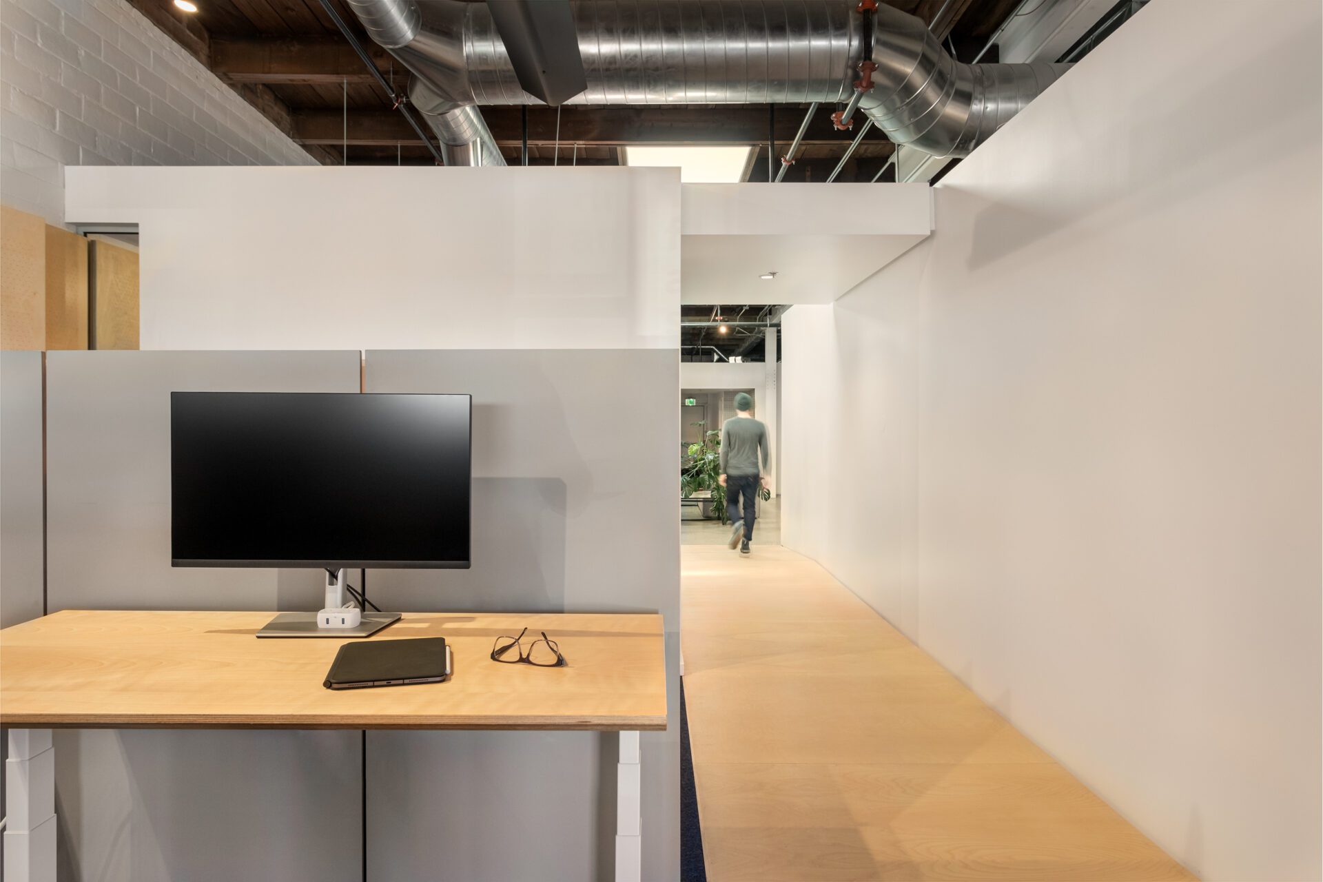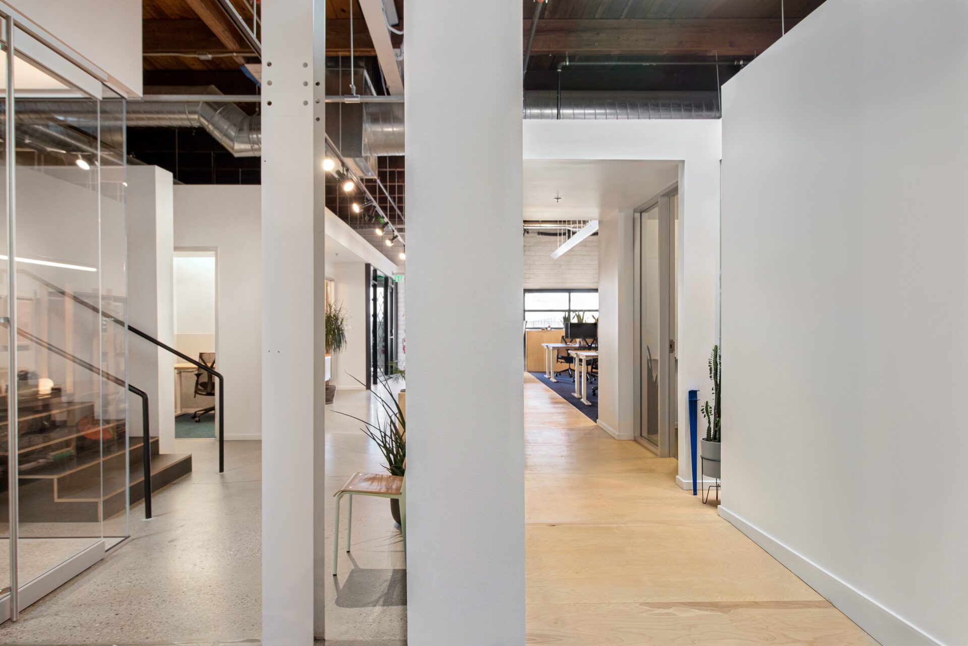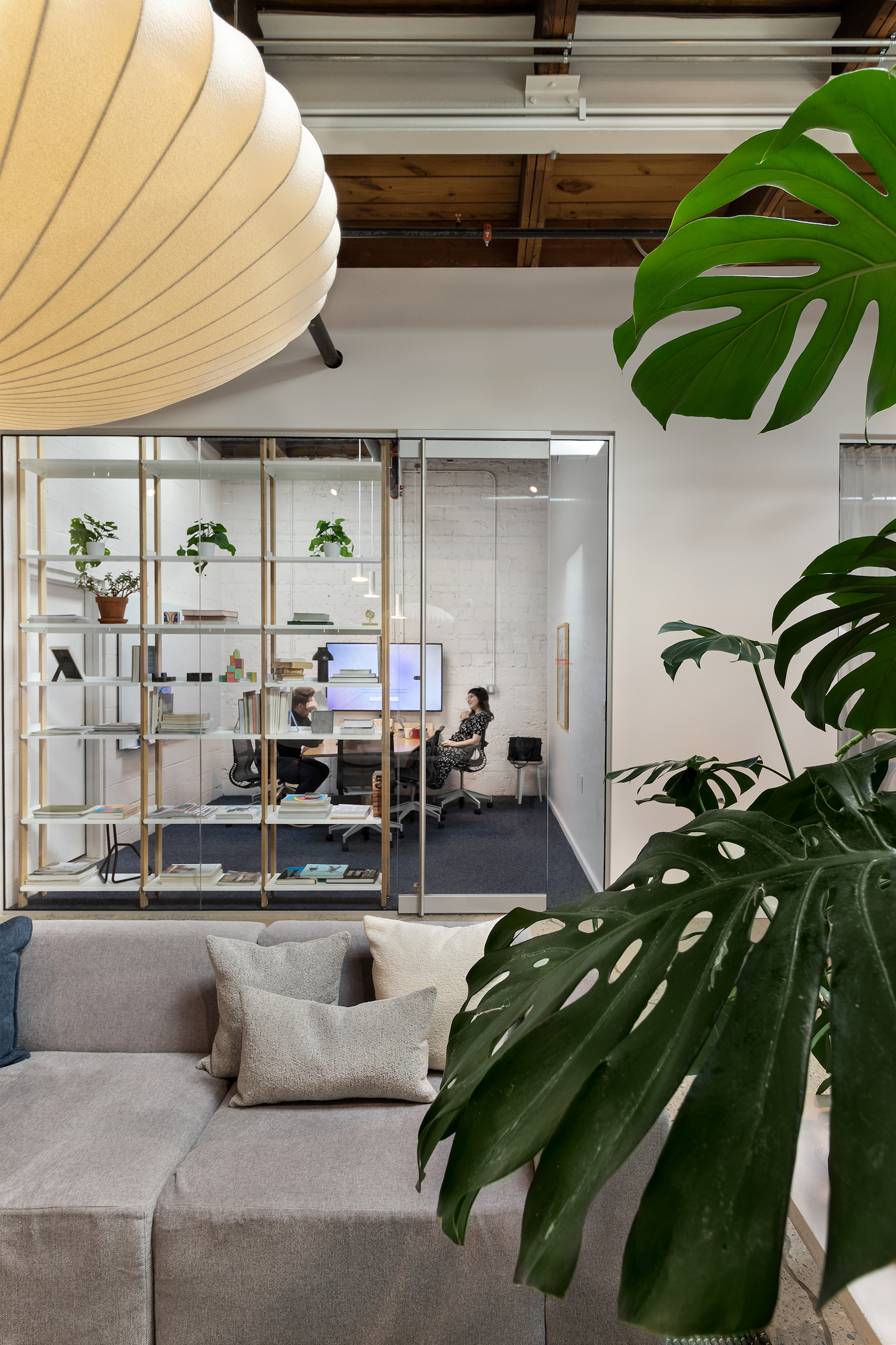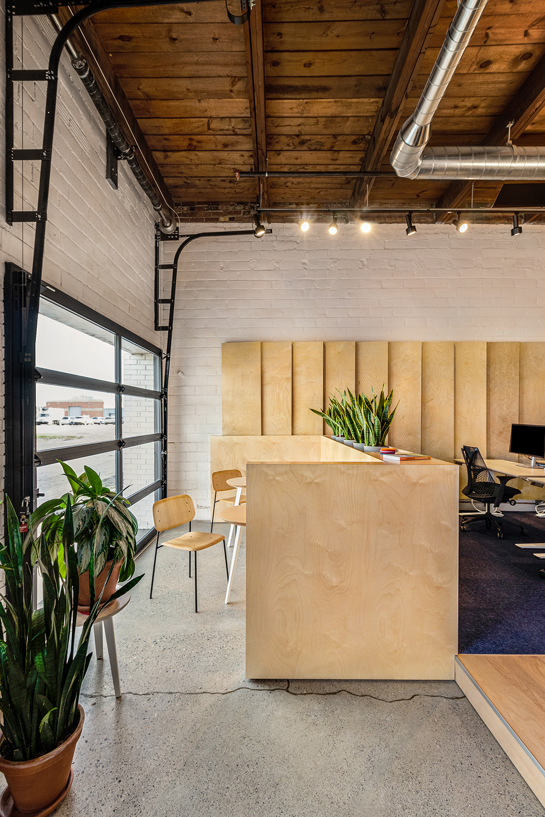 M1DTW’s relationship with Floyd began in 2017 to build a company headquarters for the environmentally-conscious furniture startup. In keeping with the two companies’ shared values of adaptability, durability and minimal waste, M1DTW designed Floyd HQ through adaptive reuse, retrofitting a meat storage warehouse in Detroit’s Eastern Market into a combination retail/office space replete with a research and development (R&D) workshop, internal conferencing and a front-facing showroom. Following the 2018 completion of HQ, M1DTW returned to the project in 2021 to reimagine its interior as a reflection of the changing conditions of the workplace today. Since the initial project, Floyd’s successful ‘slow-furniture’ business began to necessitate more space for R&D and internal operations. At the same time, the Covid-19 pandemic disrupted the norms and conventions of workplace activity, requiring a new level of open-mindedness to reengage on-site interactions.