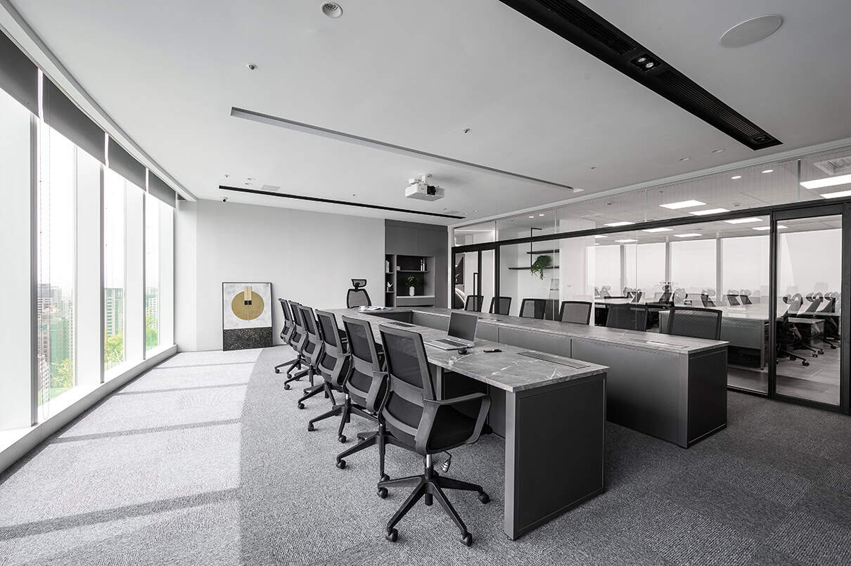 As a network platform that provides user information exchange and mutual assistance, the client also fully grasps this feature when creating an office space, with a transparent and pressure-free space configuration, combined with a simple and clean, penetrating and extended sense of technology to achieve the value of the enterprise. At the same time, because the office has a curved appearance and a long layout, the design team uses arc elements to balance the overall space when creating the interior. Regardless of the receptionist area, back wall, and ceiling, they are designed with curved lines, mixed with quality materials and interlaced lines to compose a lively space between light and shadow. The efficient and simple modern office covers an area of 150 square meters. The overall design is built with spacious and flexible style, combined with a simple linear vocabulary and geometric stacking to show the company's innovative vision. The large window view introduces a comfortable and pleasant space. With a rational and suitable layout, the counter reception hall, working area, supervisor's office, chairman's room, meeting room and lounge area are arranged according to the circulation line, creating a light and transparent boundary and circulation, place in movable tables and chairs and OA furniture, to achieve relaxing and flexible goals. In response to various needs of enterprises and future variability, giving the space the most comprehensive way to use.