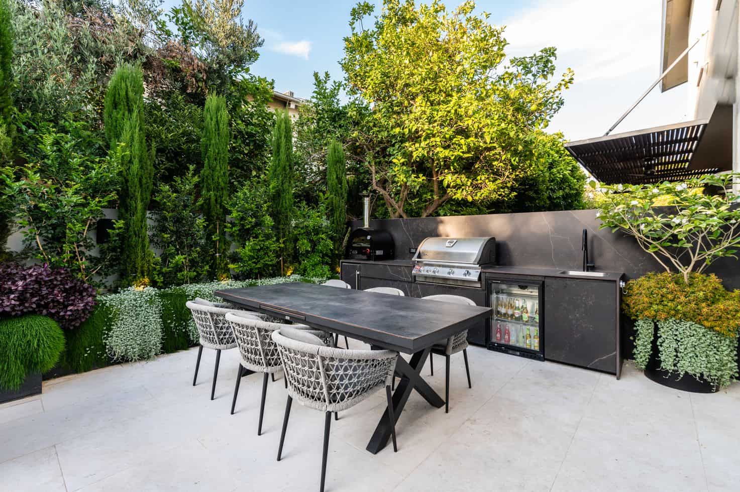 The main idea was to get as much green is passable in this small plot and with a swimming pool and all the facilities that available outside, such as outdoor kitchen of the Washington area, swimming pool, sitting area in an eating area