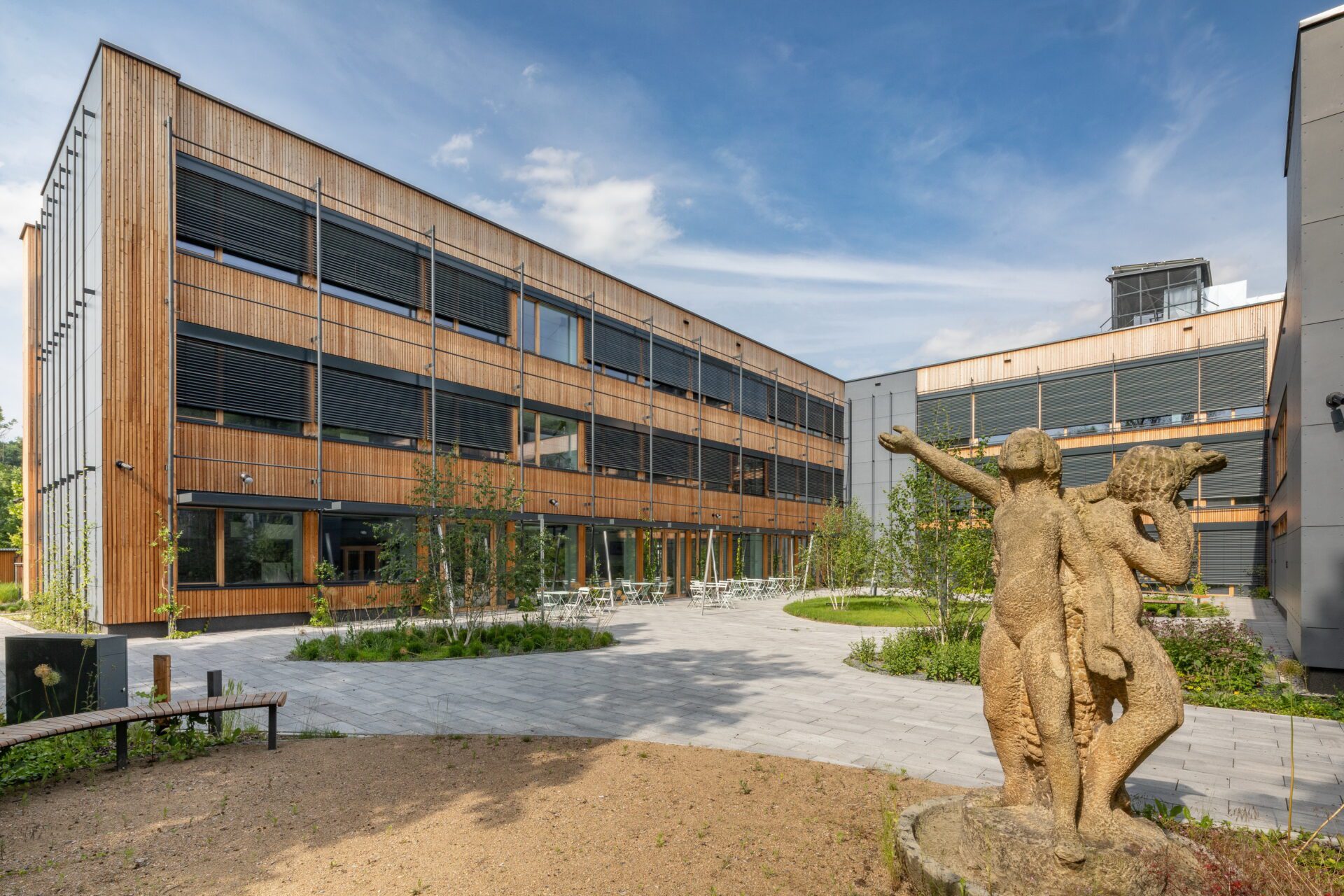 - The building has an extensive green roof, vertical greenery