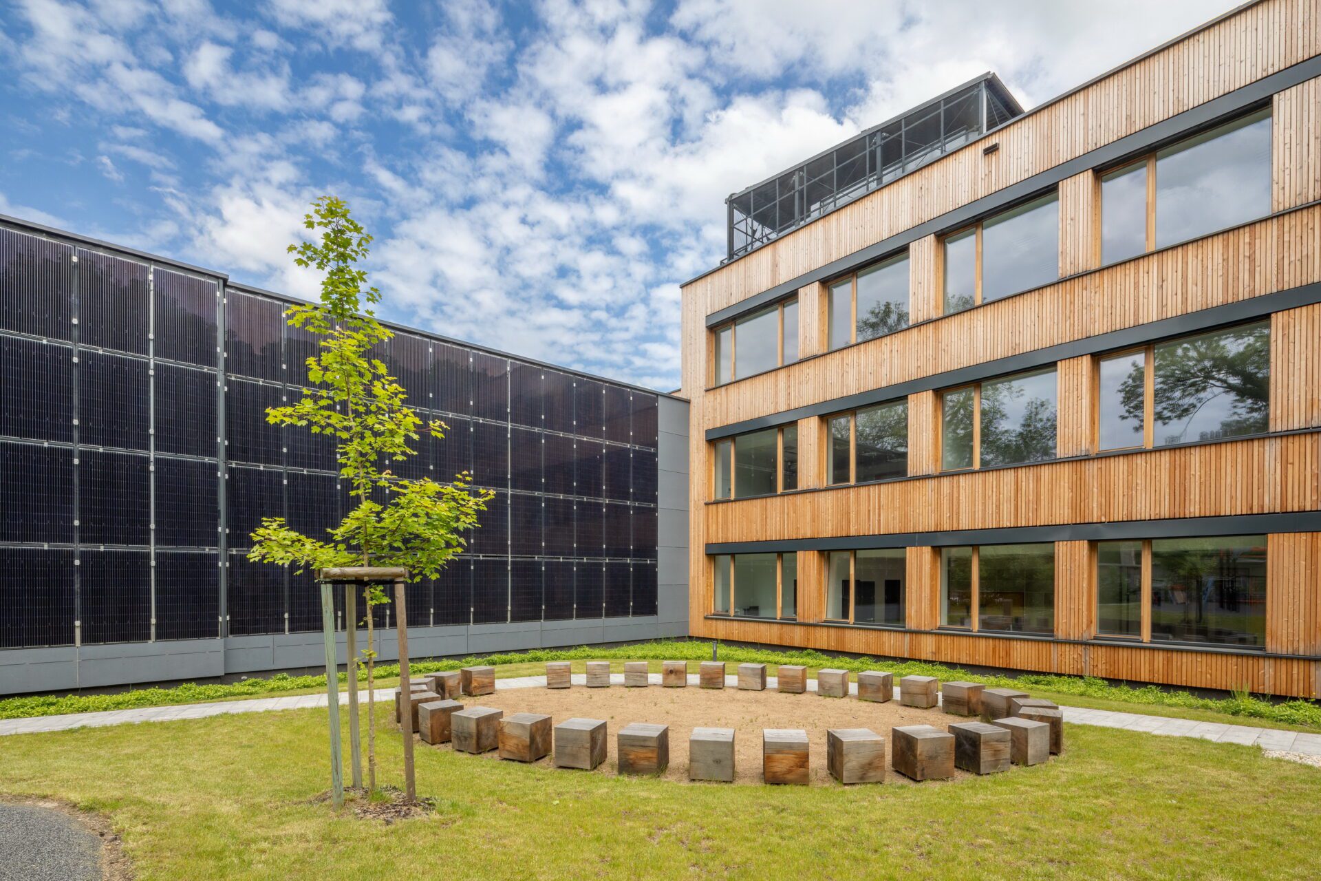 - Geothermal heat pumps (heating, cooling and hot water), 147 kWp PVs; 300 kWh battery