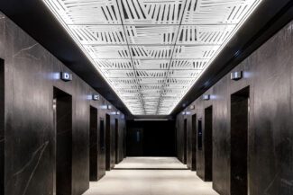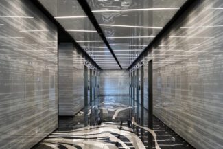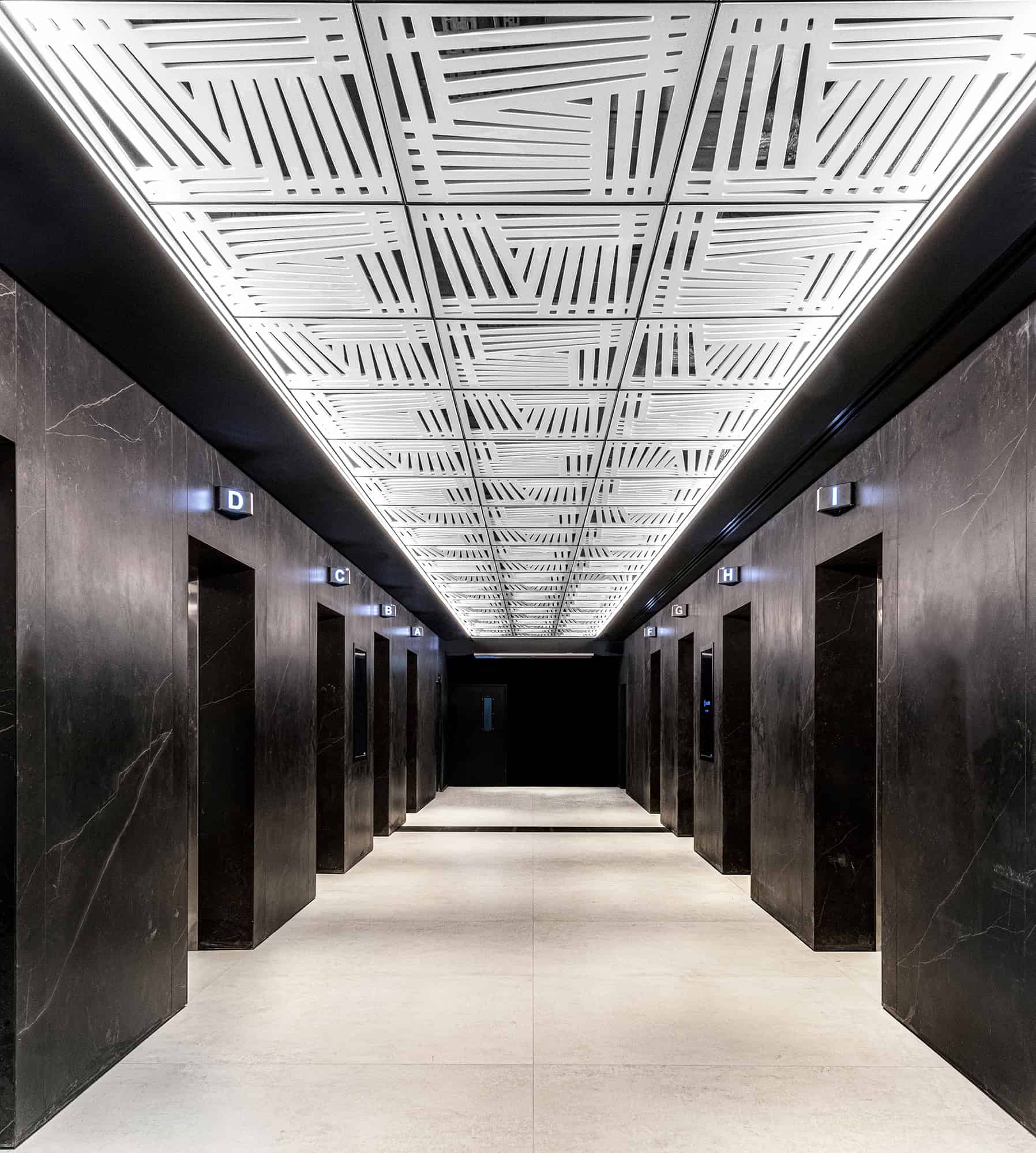 Interior design of a commercial tower lobby