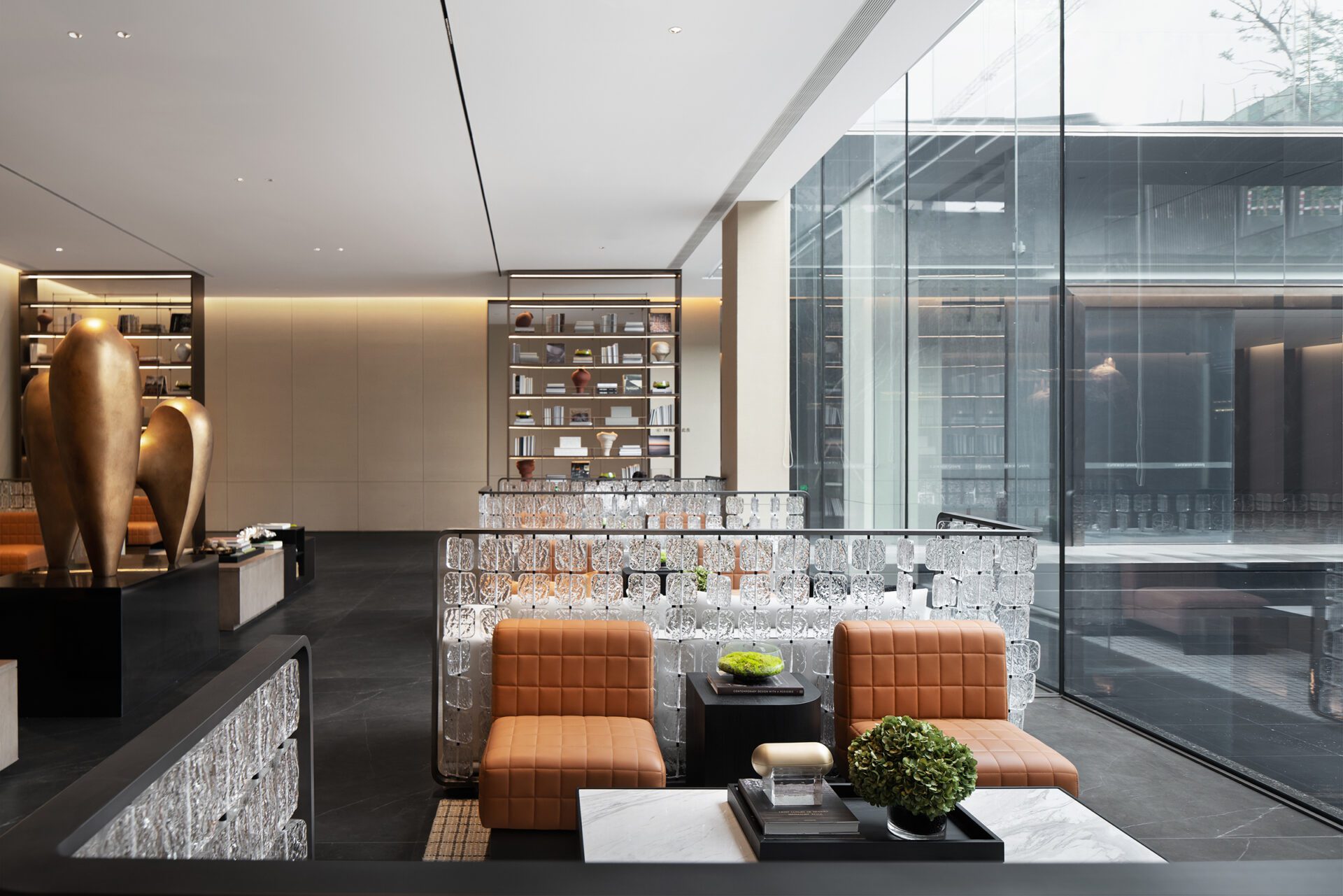Inside the negotiation space, overlapping and sequential techniques are used to create a sense of extension. Space is divided into detouring parts to create a rich, extensive visual effect. Color and material selection continue the DNA of Jinmao Brand, with the light gray and gold complementing each other into a smooth and natural transition.