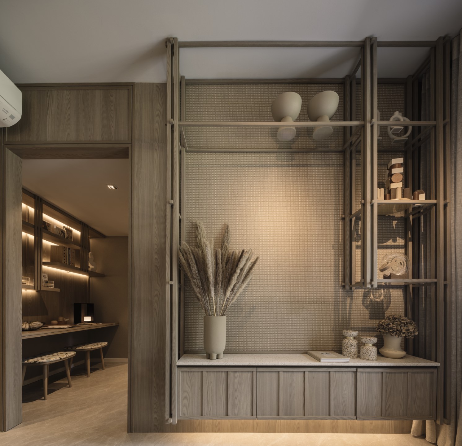 KI, a quintessential Japanese word that represents the subtle and ephemeral flow of energy in all things and intent. The project seeks to combine Japanese influences with modern interpretations in a harmonious manner to relate key design principles. Inspired by nature, a balanced and coordinated material palette with variations on tactile surfaces, natural wood tones and grey tones within these interior spaces weave harmoniously to blend with the tranquillity of its surrounding natural landscape, presenting a balanced way of living. Sales Gallery – Qi 气 Drawing inspiration from the circulating life force that exists in every entity, the Sales Gallery is designed as the conduit where “the spirit of discovery” flows. The space is tailored to provide the experience of being in the actual development, through visual connections and motifs, and through exploration of nature. 2BR – Mu 木 Created with a love of nature in mind, this unit is designed for the naturalist with a quiet and introspective lifestyle. Through the selected materials, predominantly natural wood laminate finishes and light, woven fabrics, with gentle shades of green, grey, and beige, this crafts a serene and airy space with modern Japanese-inspired design. 3BR – Qi 器 A haven for the fine-artist and drink connoisseur with a discerning eye for beauty, this unit radiates stateliness and dignity. With darker wood finishes and brushed metallic accents in black and brass, dressed in substantial fabrics such as leather, the design concept presents a stronger, more masculine air, but retains its subtlety and is uncluttered, with clean, structured lines. 4BR – Ji 季 A Japanese-inspired modern contemporary home, this space is designed for a multi-generational family with a taste for travelling, and a love for the four seasons. A mixture of materials and colours that best reflect the ambience of each season are put together in a stimulating but cohesive whole. The interplay between light and dark stained wood, tinted mirror finish and fluted glass, velvet and leather make this unit full of character.