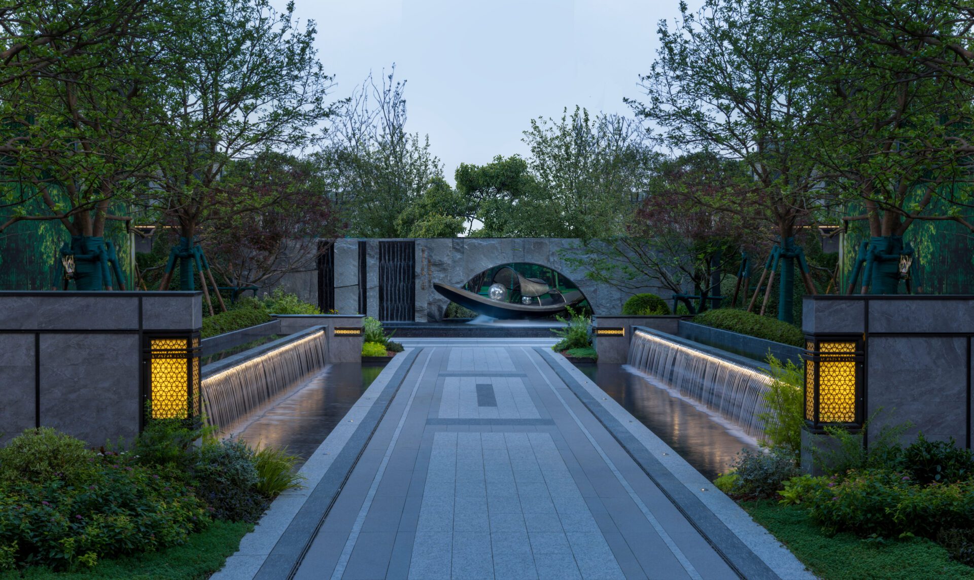 Jinglin Mansion quotes the famous landscape painting "Eighteen Scenes of Huzhou" by Huzhou literati Song Xu, depicting poetic life, incorporating the landscape of Huzhou into the Mansion, blending the ancient and the modern, taking the form of a royal mansion with three columns as the blueprint for life, customising the spatial structure of Jinglin Mansion, creating in turn four thematic spaces, namely, the Hall of Rituals, the Full Load, the Pine Breeze, the Water Moon, and the Landscape, The central area is built on the basis of the landscape, creating six scenes of life, namely, the sounding of the greenery, the surrounding fire, the pillowing of the water, the fragrance of the waterfalls and the breeze. The deeper level of landscape creation is rooted in the implantation of local cultural spatial veins, the deconstruction and integration of formal symbols to enhance the fit of local space, and the pursuit of spatial memory. The space is created with an emphasis on inward and outward looking, and the penetration of scenery between spaces to achieve a deeper experience of dialogue with nature.